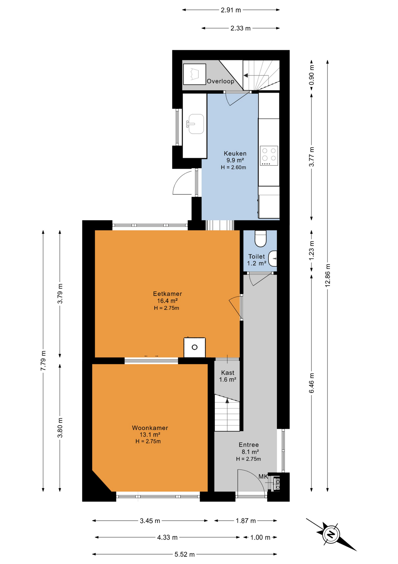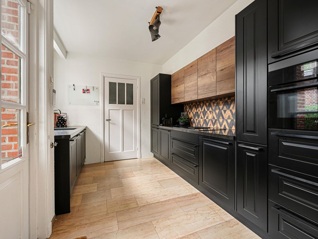 De moderne keuken is gelegen aan de achterzijde en voorzien van alle inbouwapparatuur en geeft toegang tot de kelder.