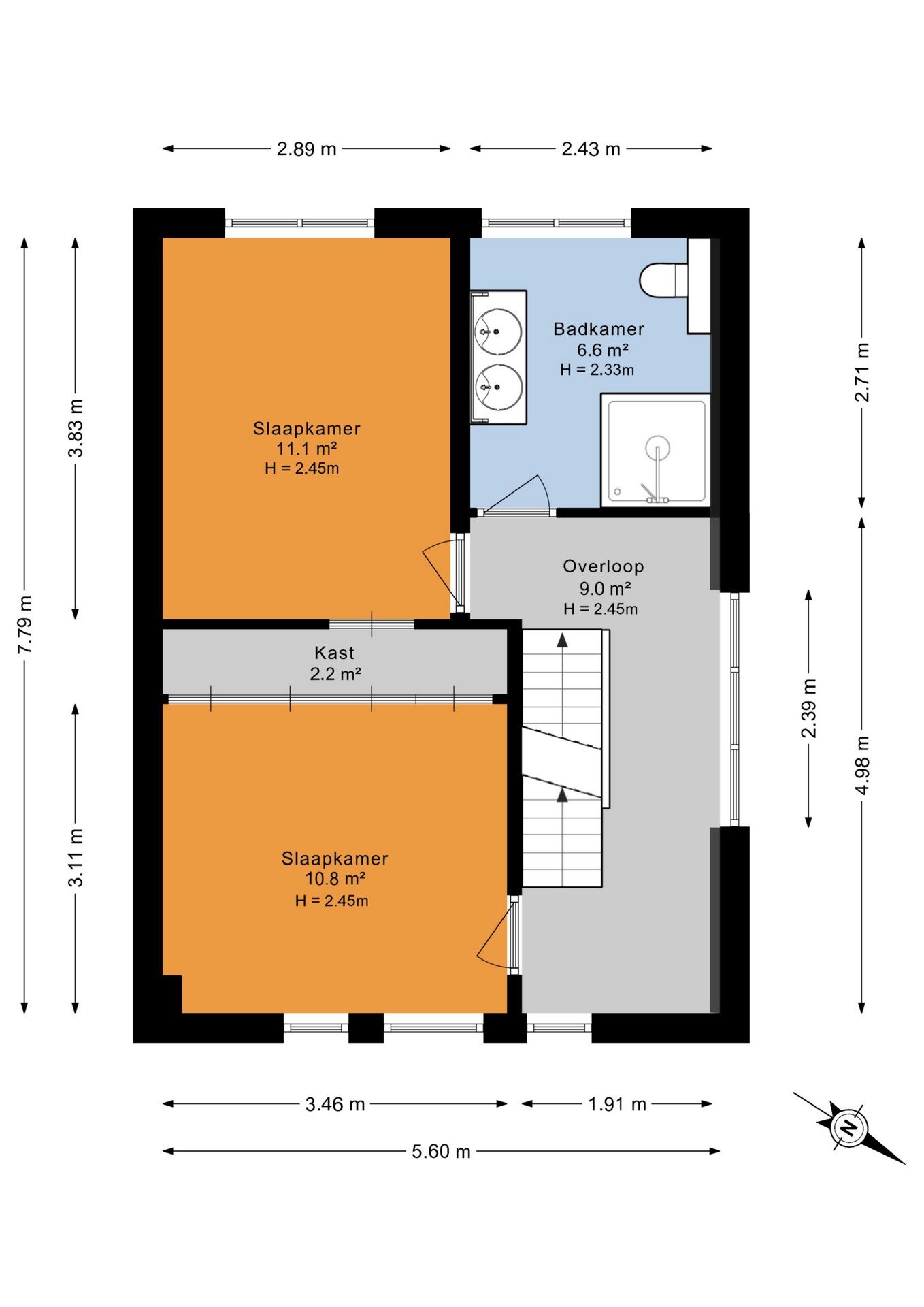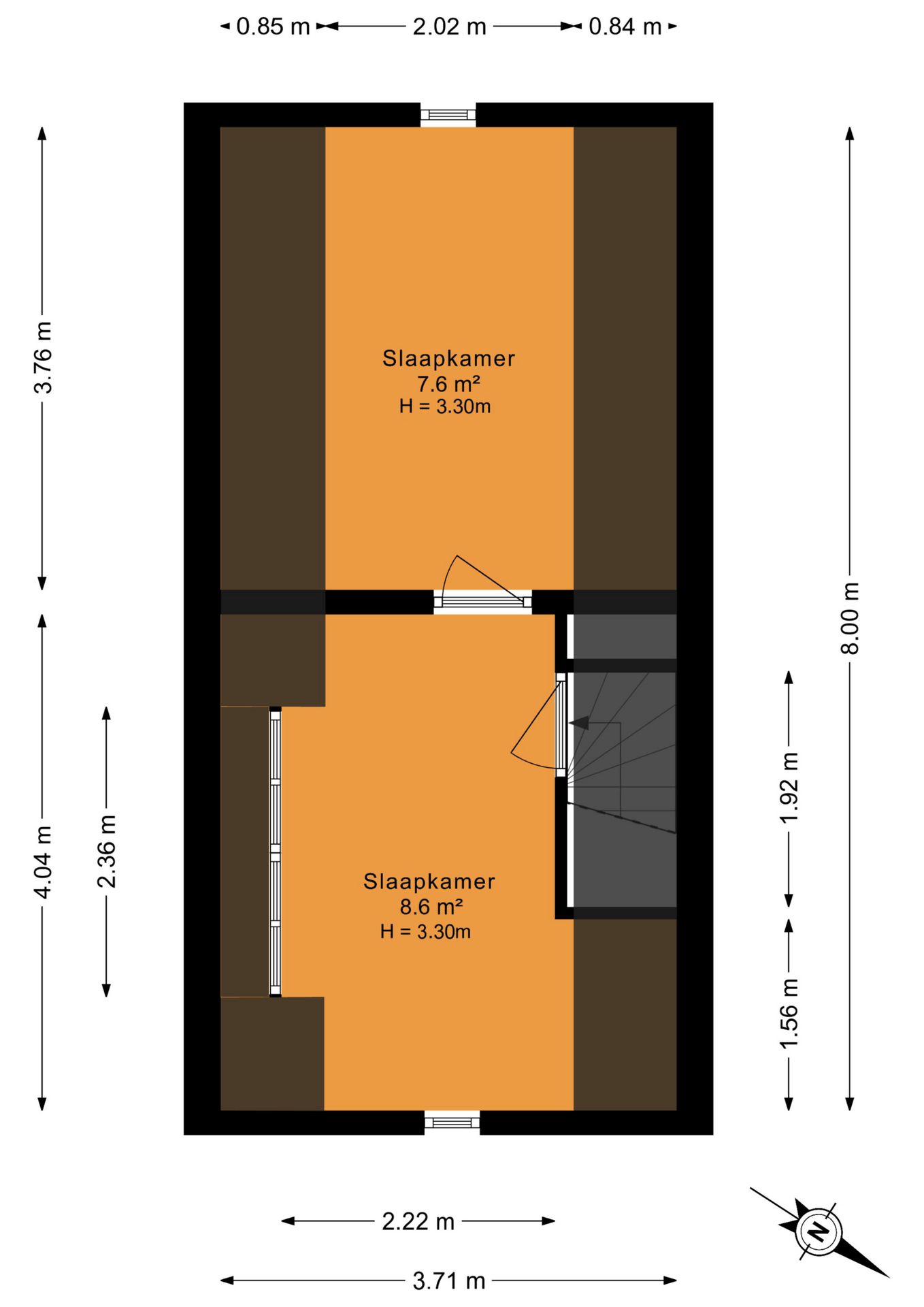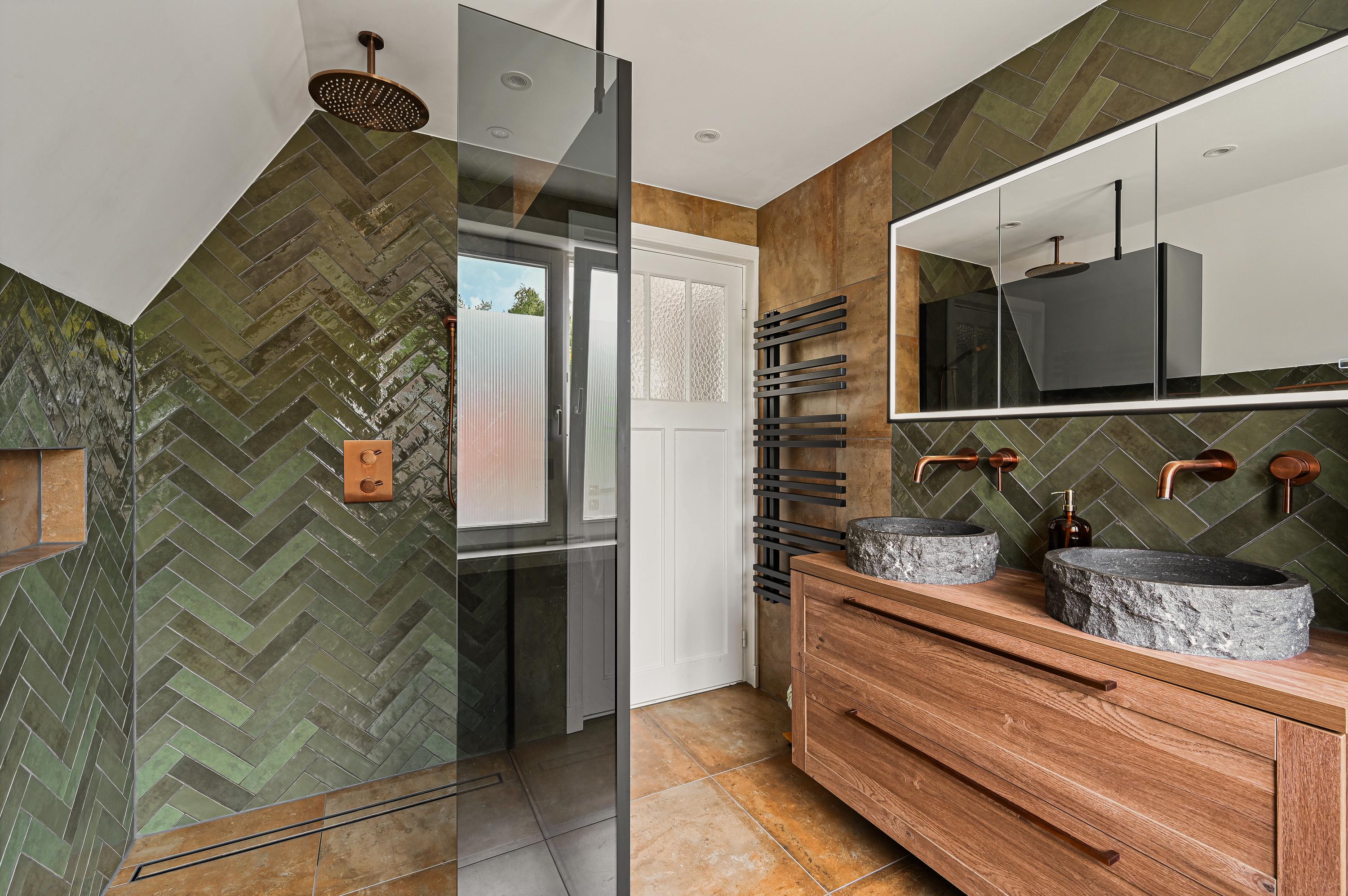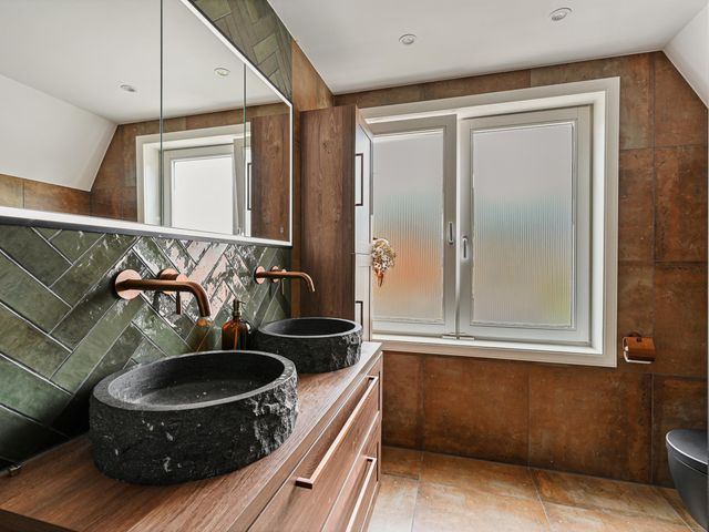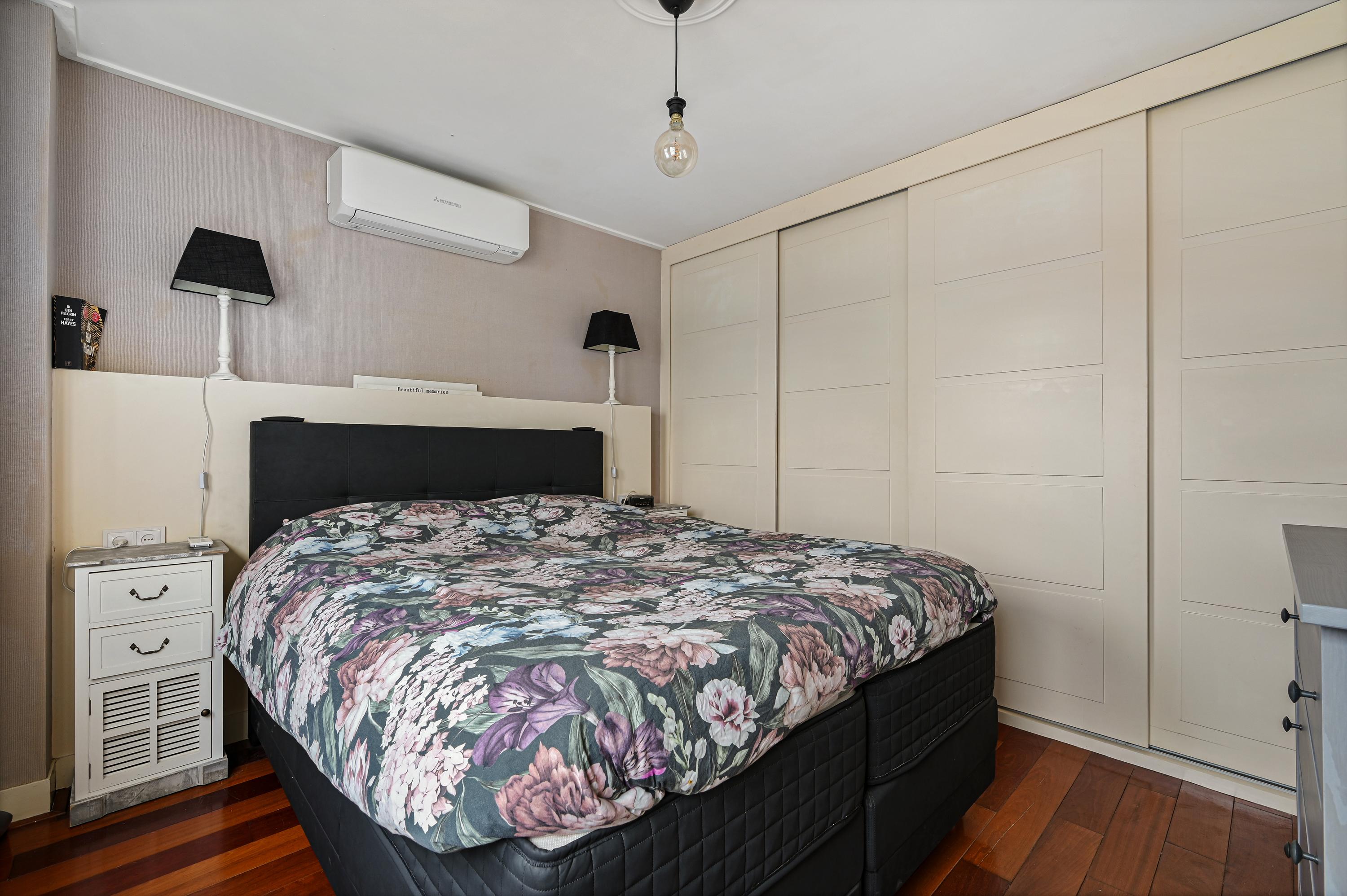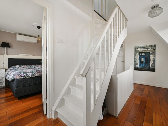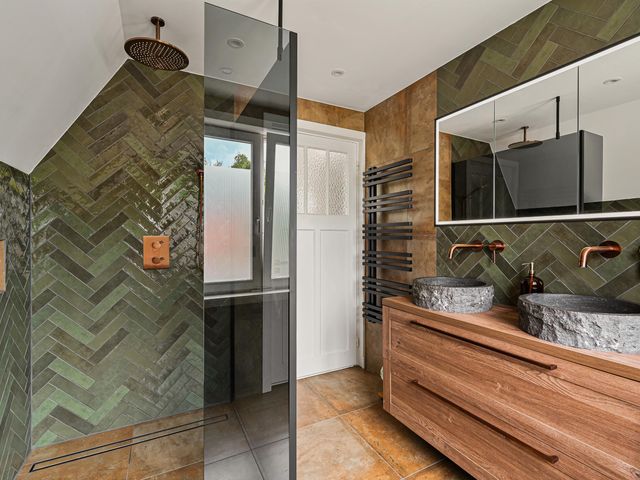 De hele verdieping is voorzien van een stijlvolle parketvloer. Hier bevinden zicht 2 ruime slaapkamers en de luxe badkamer, compleet vernieuwd in 2024. De badkamer is voorzien van een royale inloopdouche, dubbele wastafel met meubel, zwevend toilet en vloerverwarming.