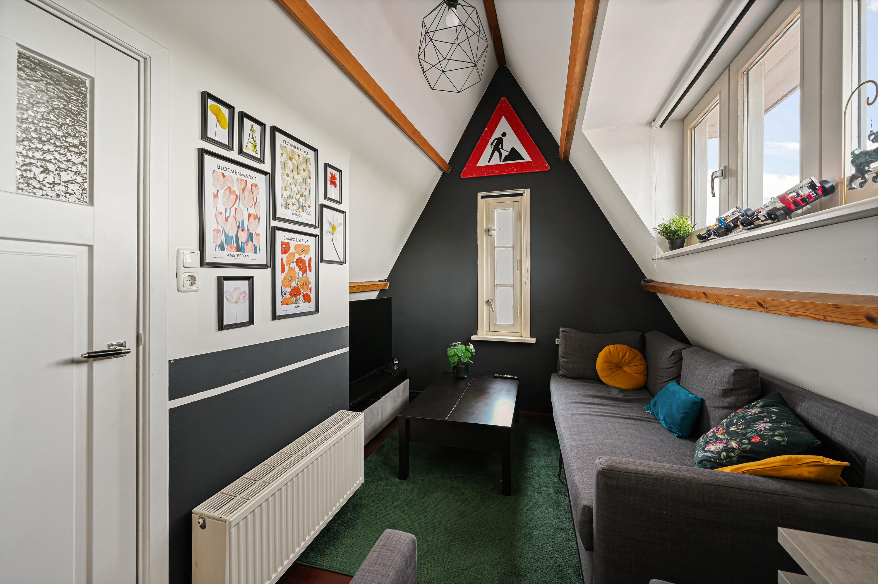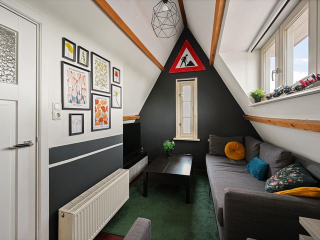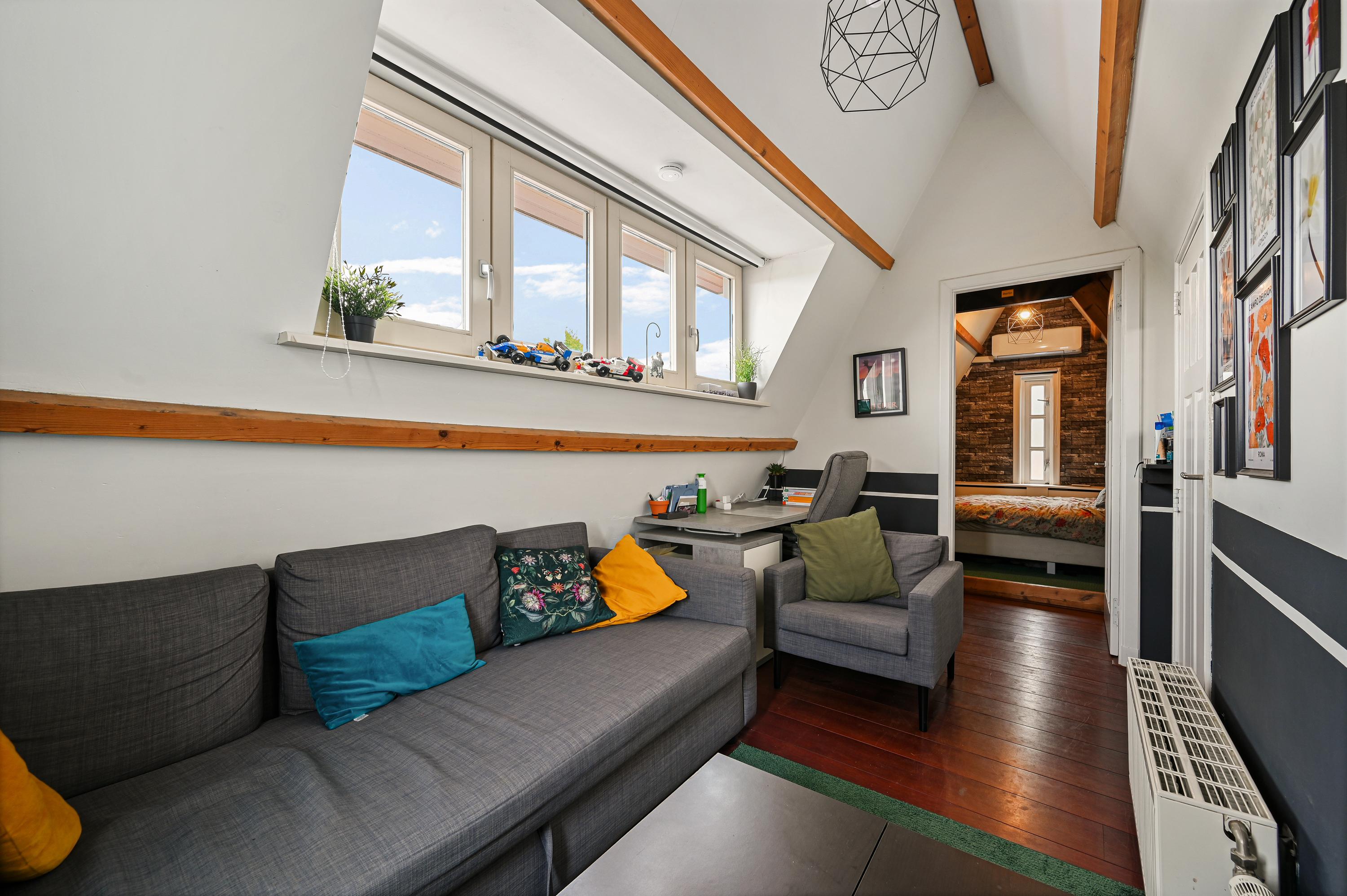 De zolder is praktisch ingedeeld met een relaxruimte en een derde slaapkamer, waardoor er volop mogelijkheden zijn voor werk, hobby of logees.