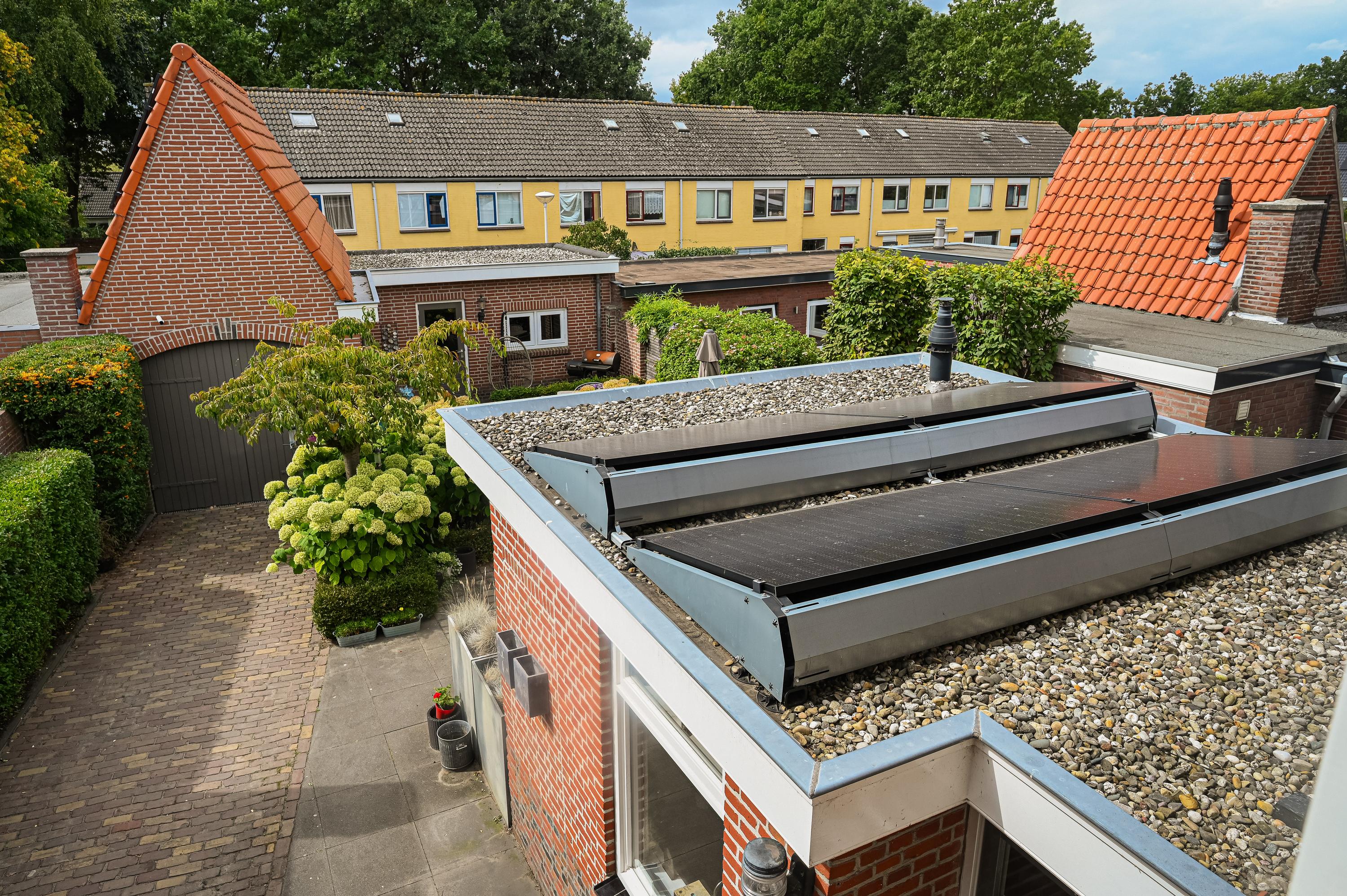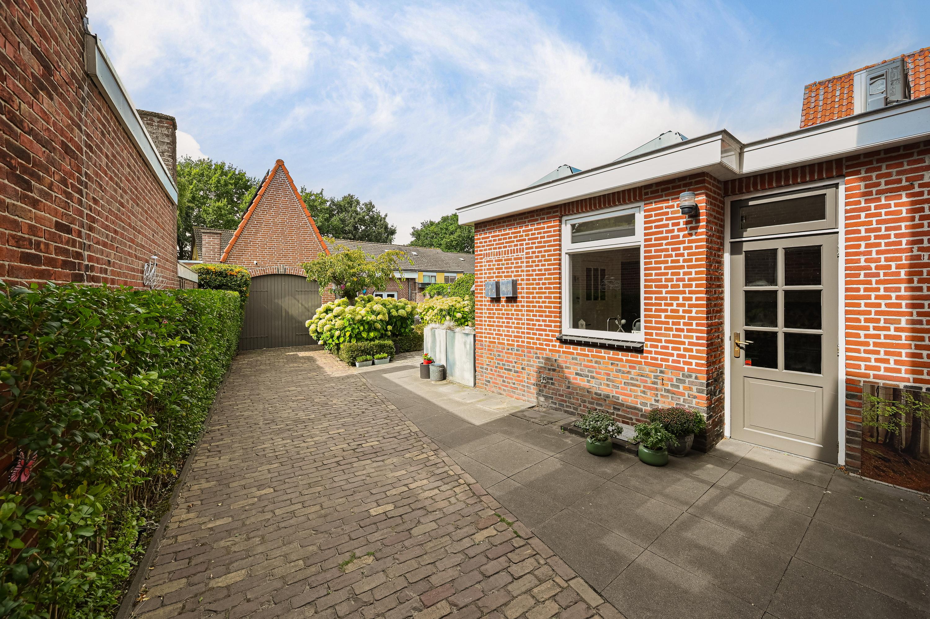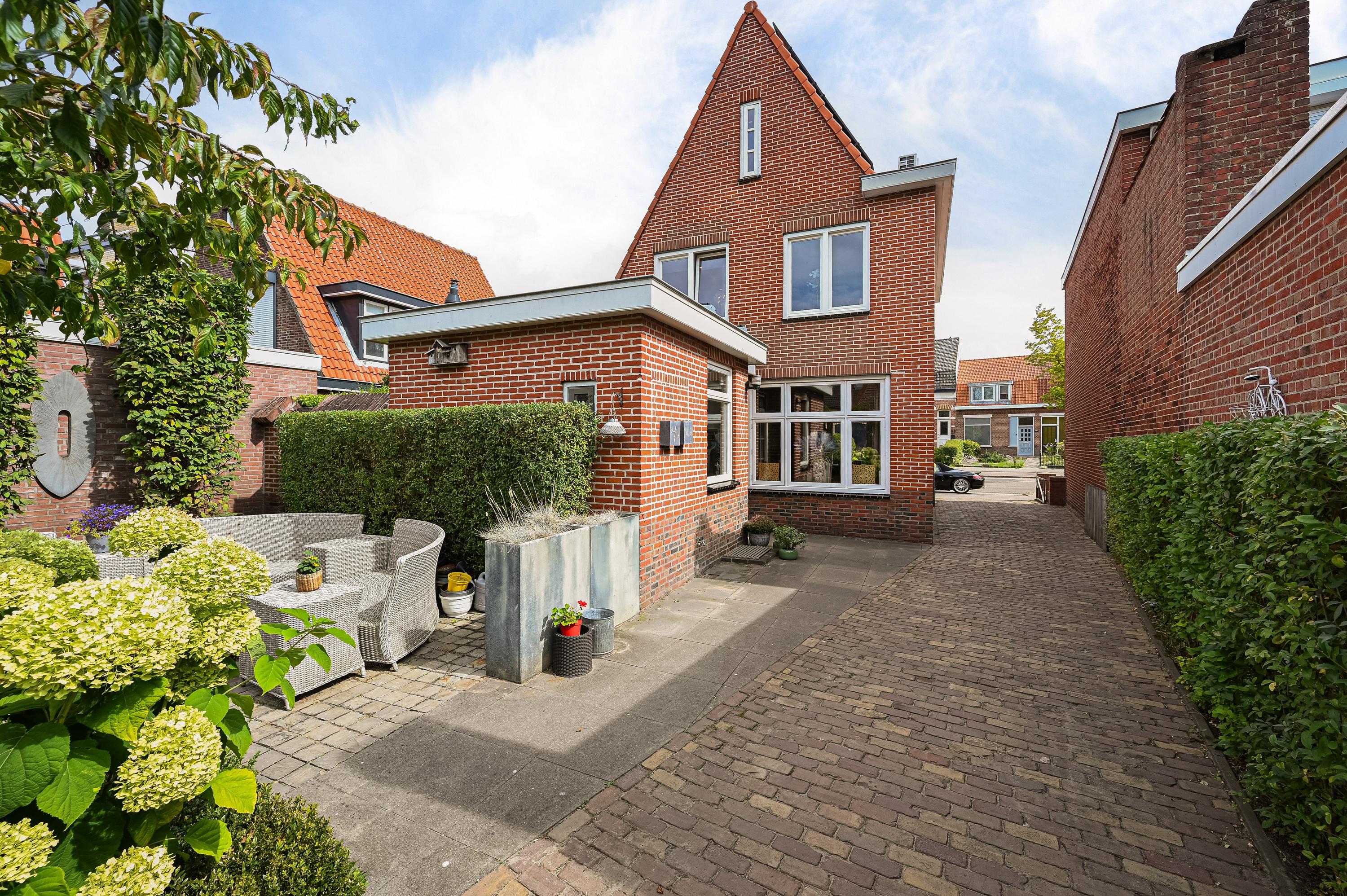 De keurig aangelegde achtertuin ligt op het zonnige zuidwesten en biedt volop ruimte om te genieten. Met twee fijne terrassen en directe toegang tot de garage is dit een heerlijke plek voor lange zomeravonden.