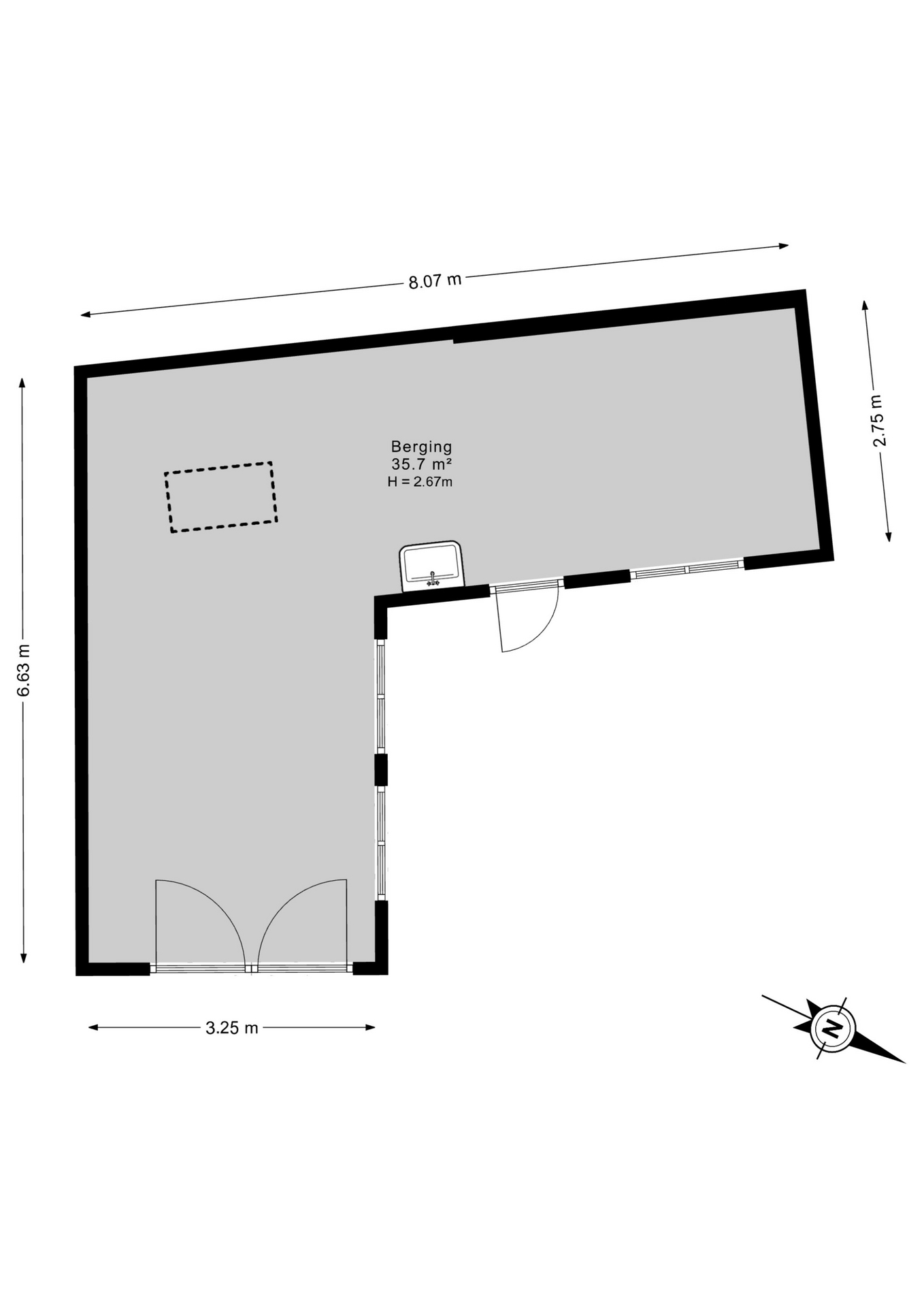 Riante vrijstaande, stenen garage met berging/sportruimte.