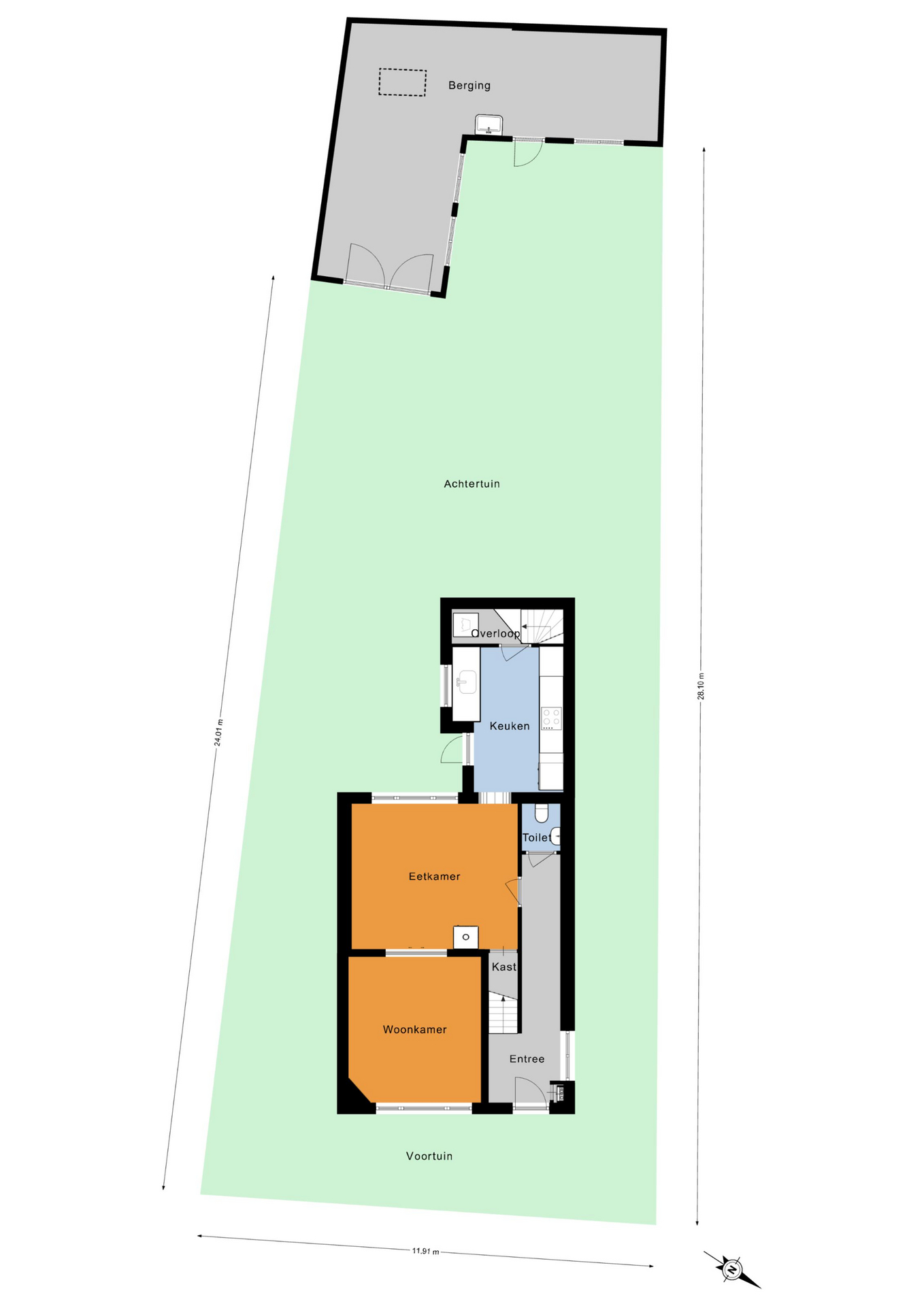 Ook is er vanuit de keuken een deur naar de achtertuin.