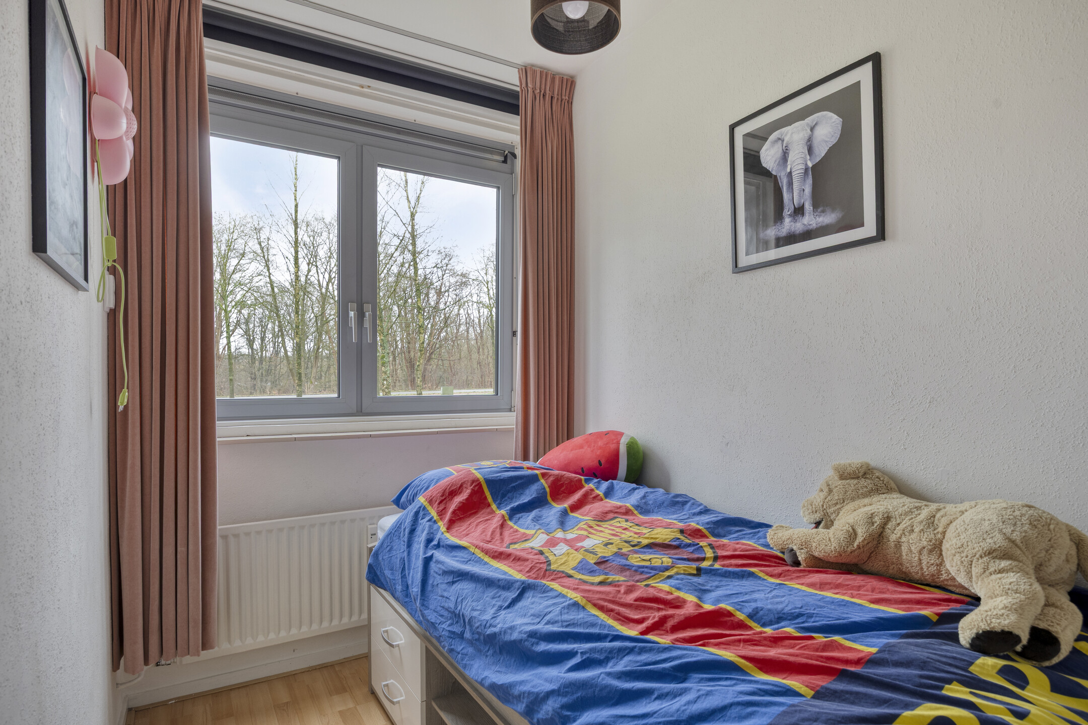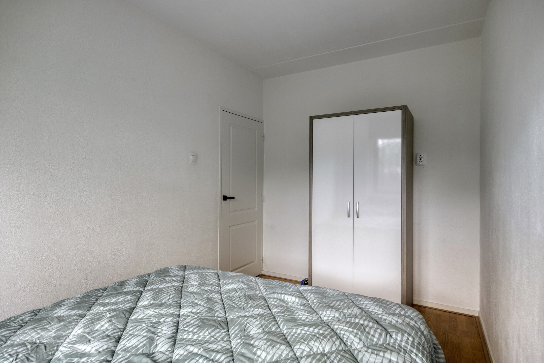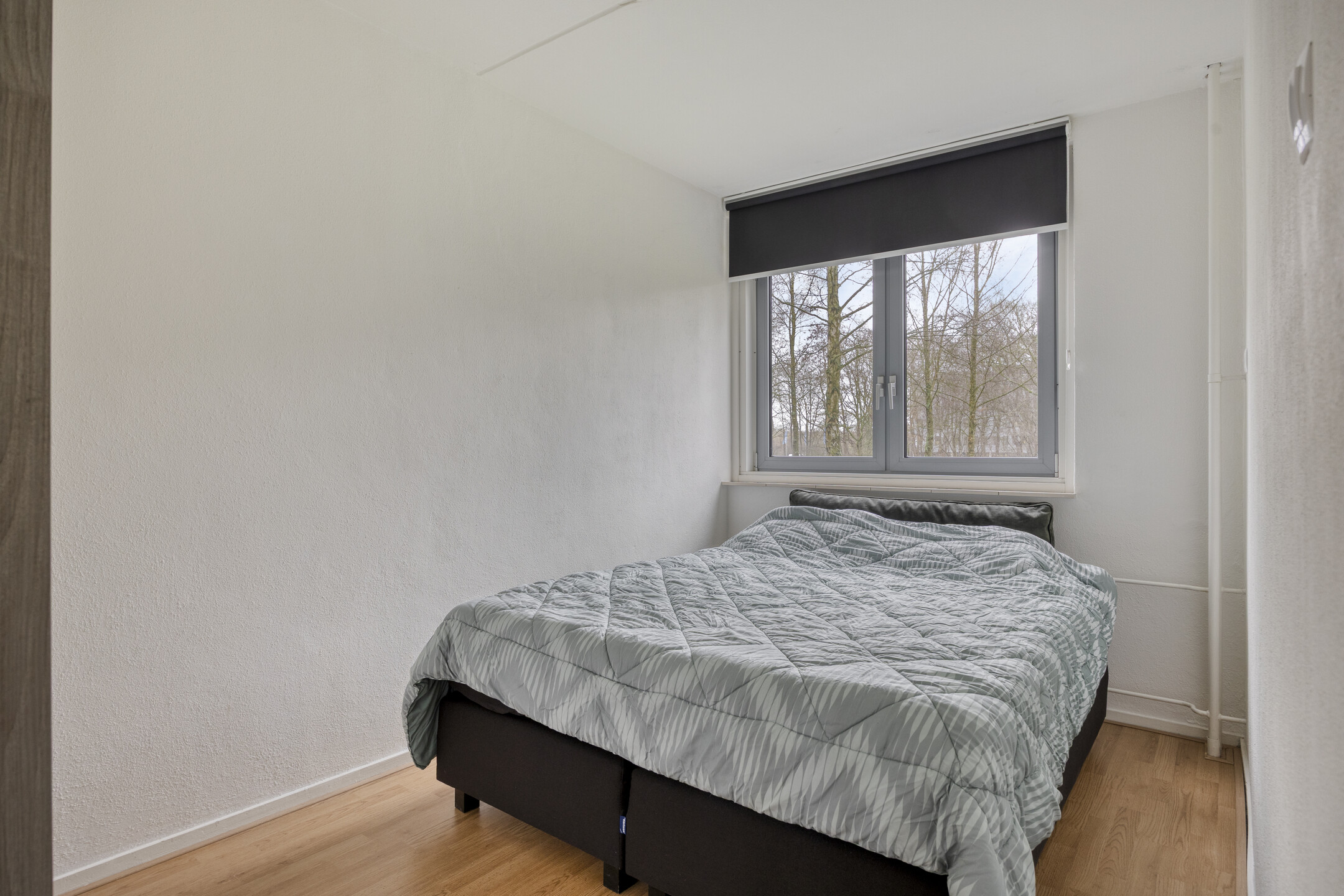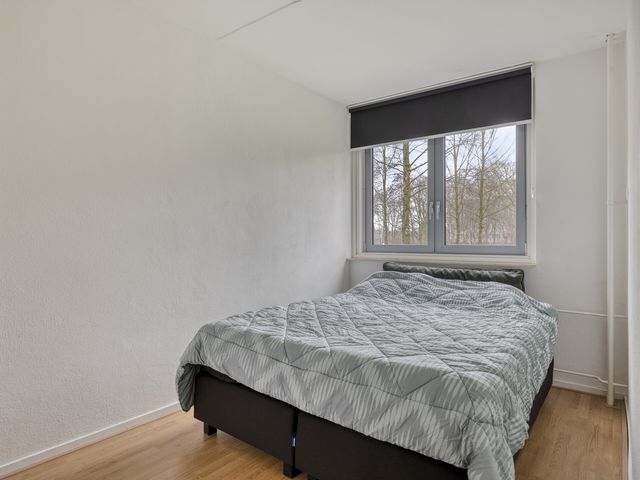 Slaapkamer II, gelegen aan de achterzijde, is eveneens voorzien van een laminaatvloer en glad gestucte wanden en plafonds. Deze kamer beschikt over kunststof kozijnen met dubbelglas.