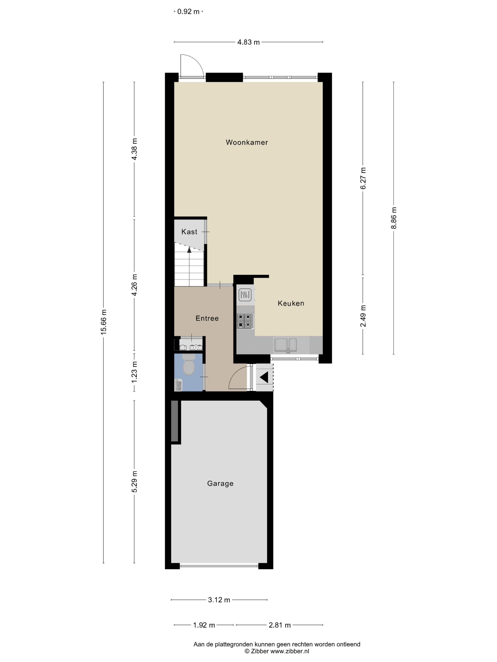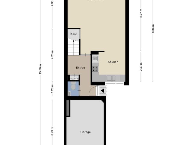 Aangebouwde stenen garage aan de voorzijde