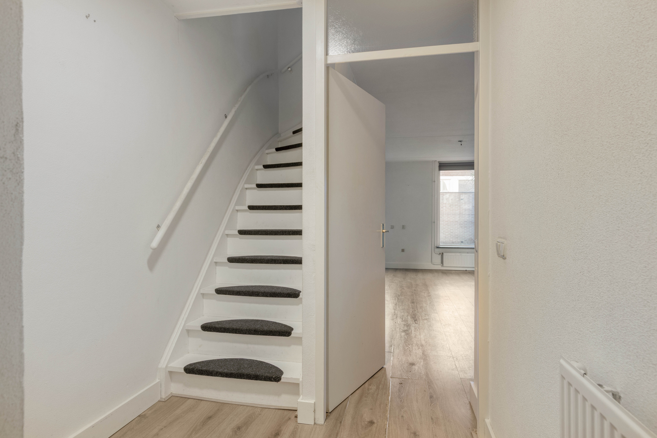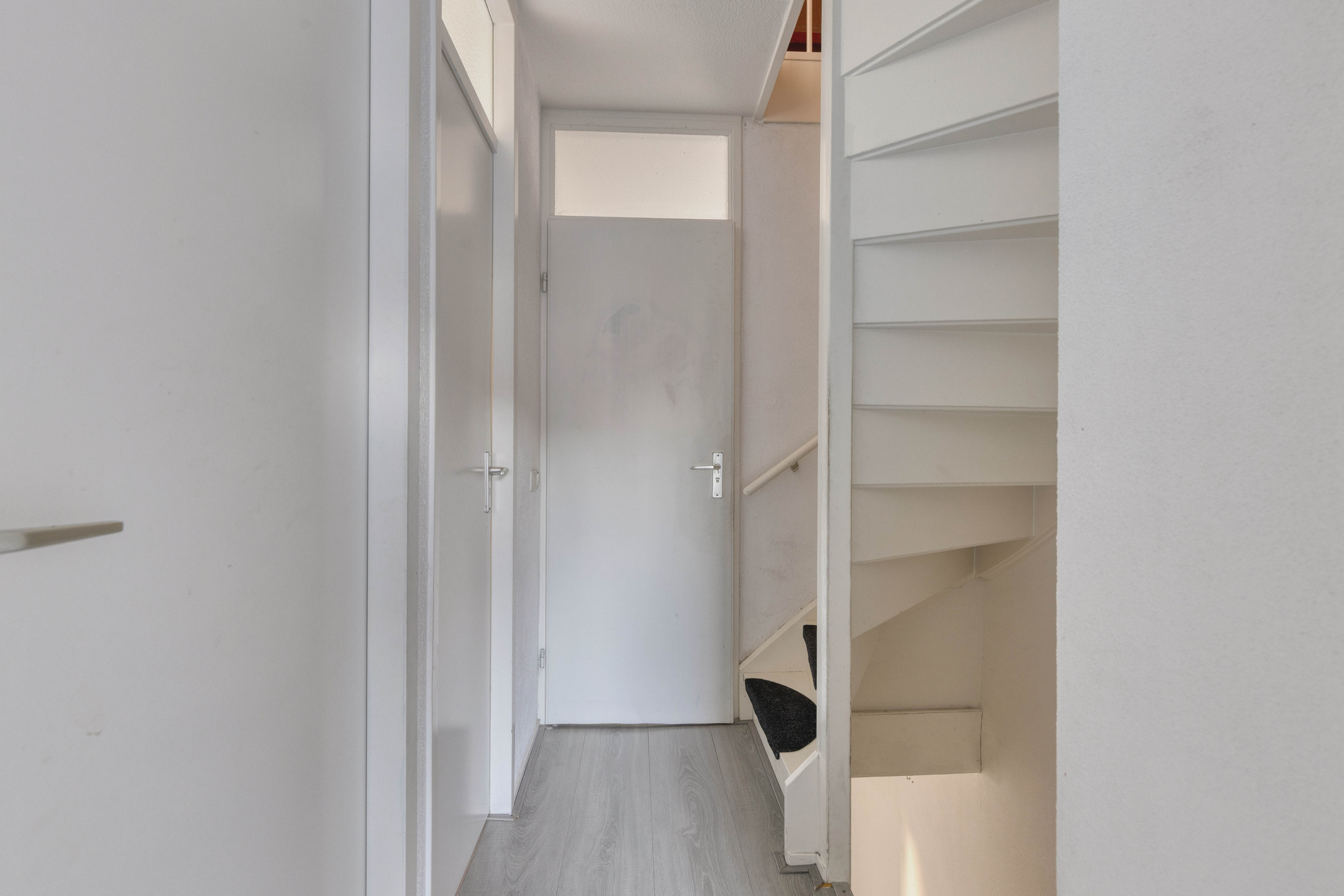 Entree met meterkast, toiletruimte en trapopgang.
