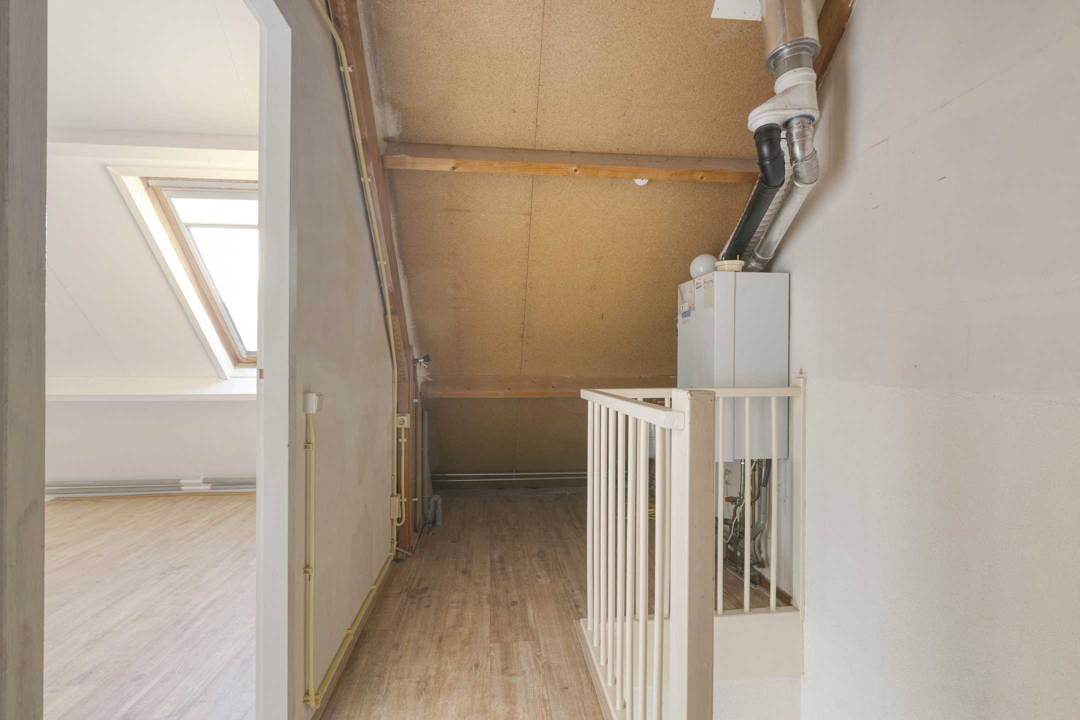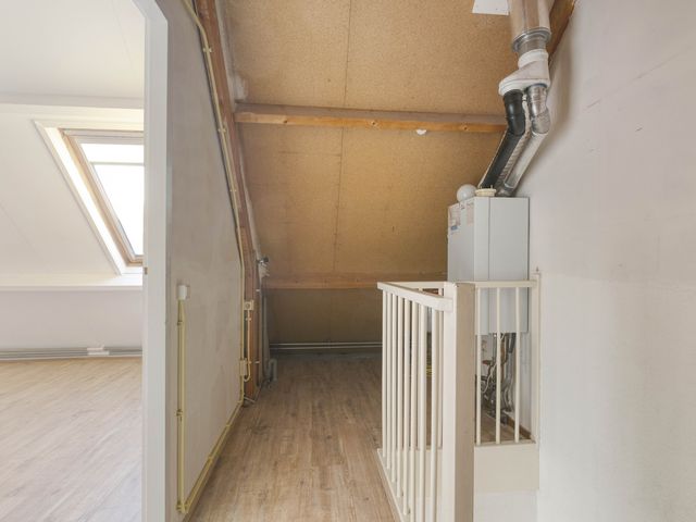 Middels vaste trap te bereiken voorzolder met opstelling van de CV ketel en toegang tot de 4e slaapkamer met laminaatvloer.