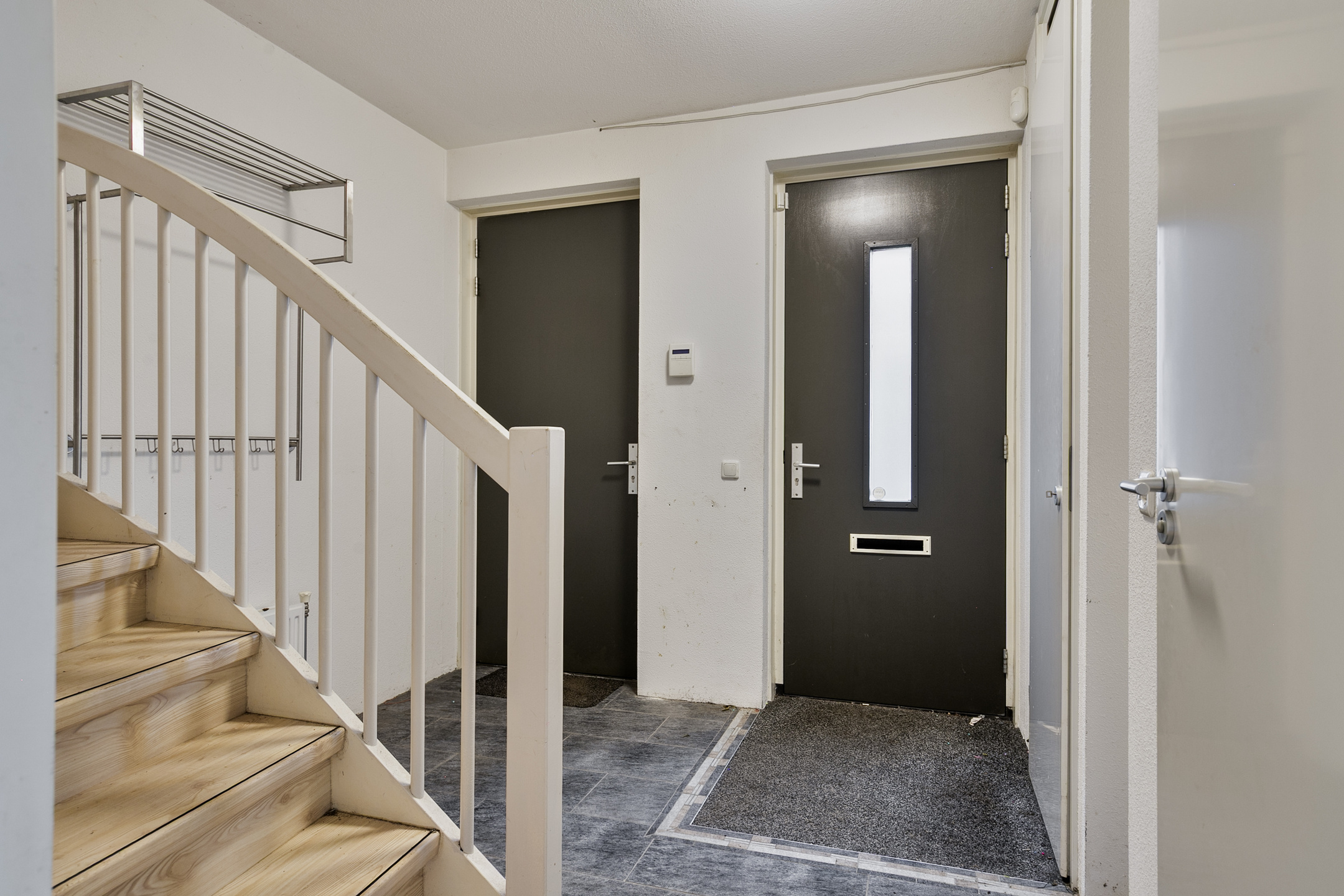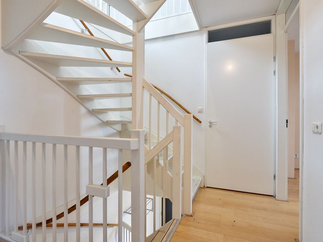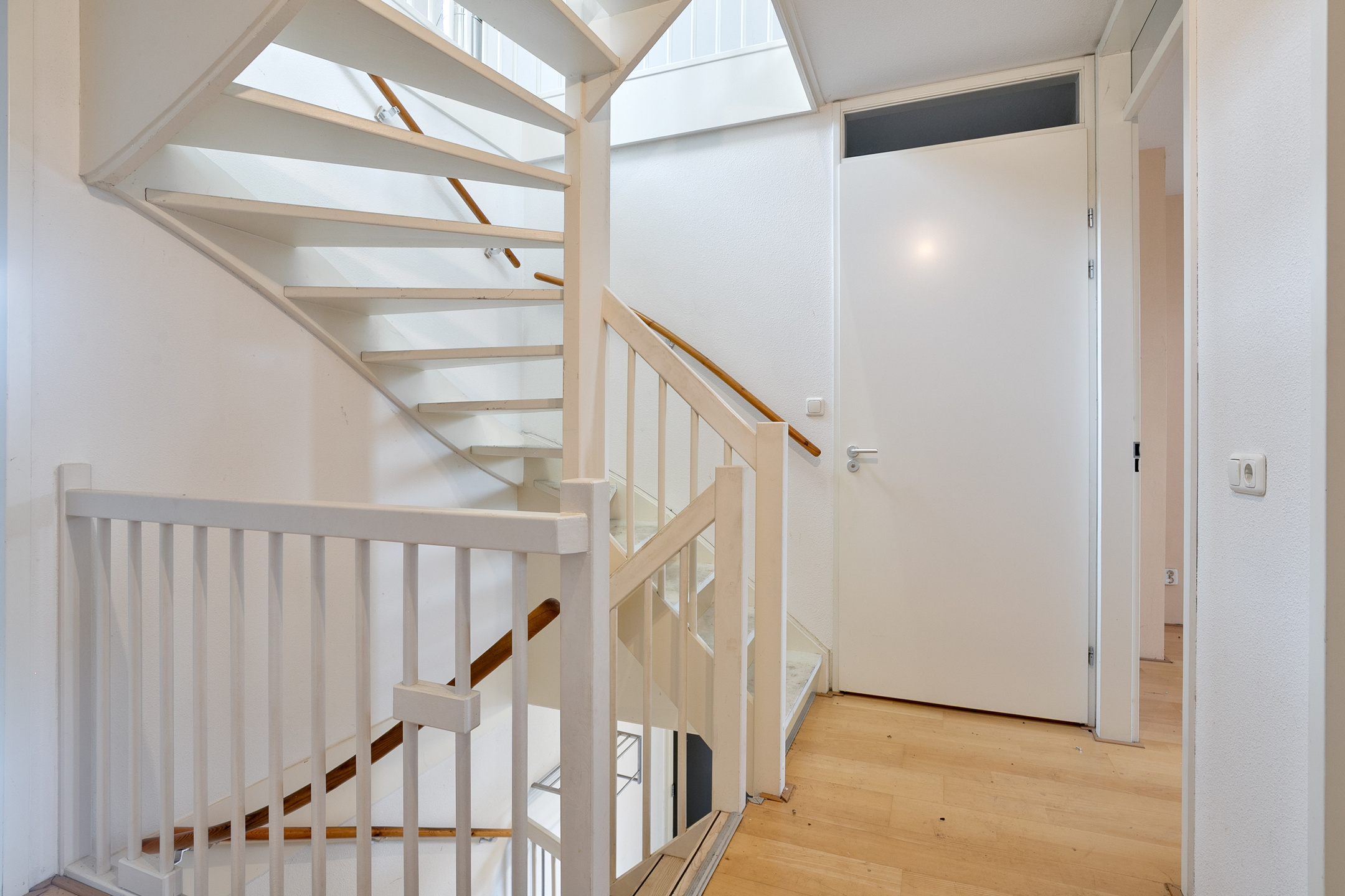 De overloop biedt toegang tot drie slaapkamers, de badkamer en de trapopgang naar de tweede verdieping.
