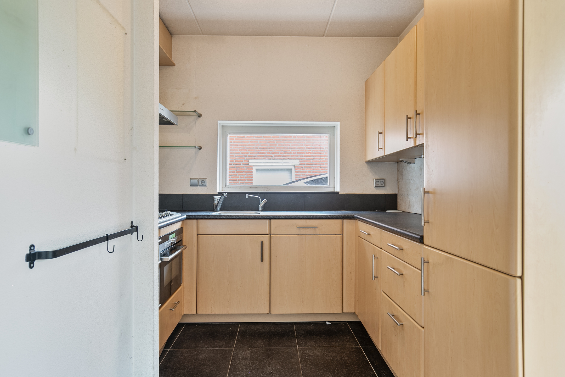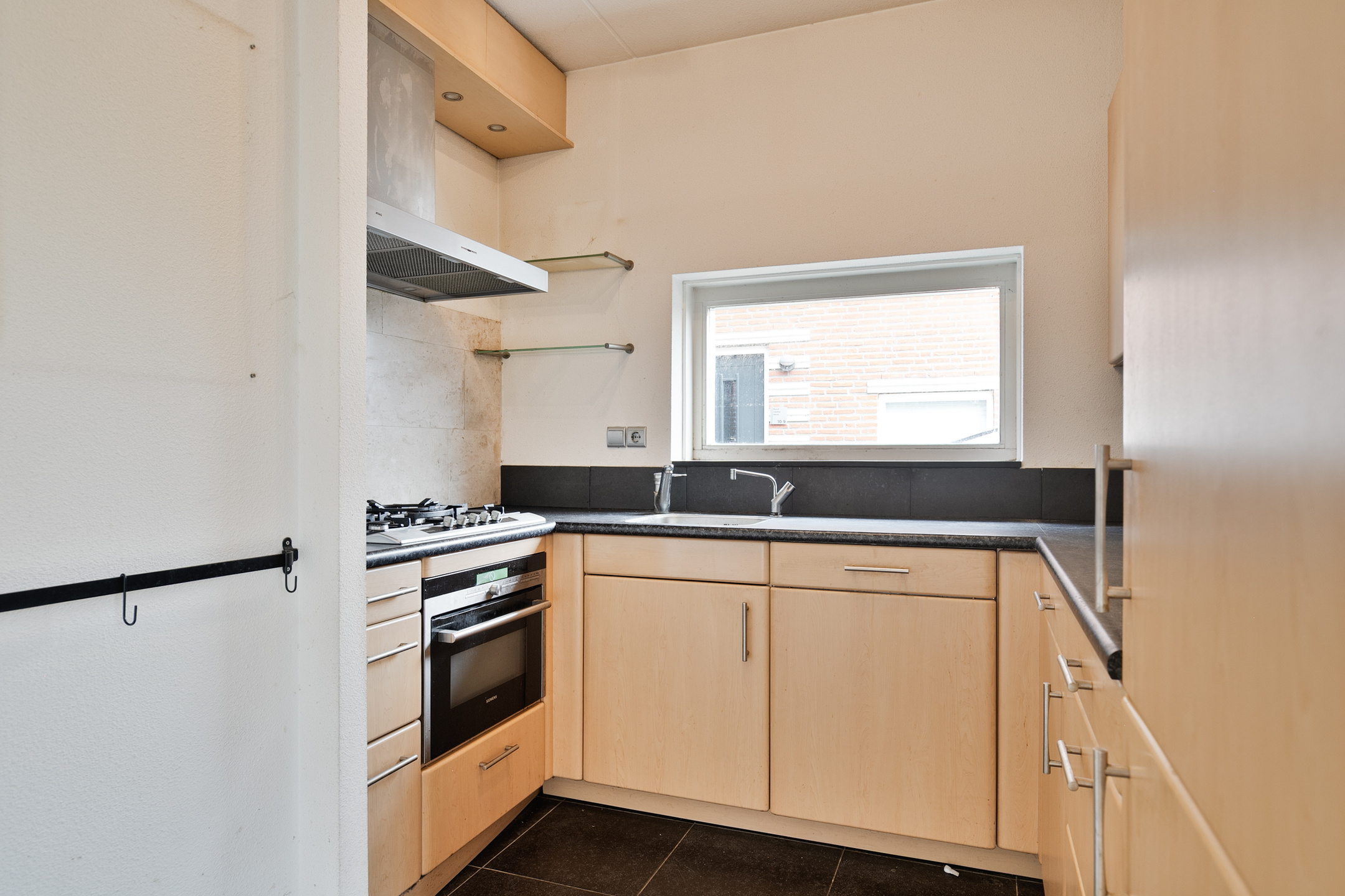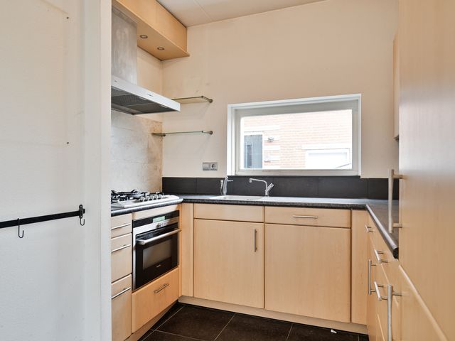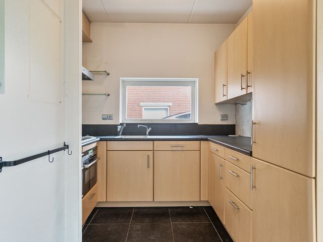 De open keuken is eveneens uitgerust met een duurzame tegelvloer en beschikt over diverse inbouwapparatuur, waaronder een oven, 5-pits gaskookplaat, RVS-spoelbak, afzuigkap, koelkast en vriezer. Het houten kozijn is voorzien van HR++ glas.