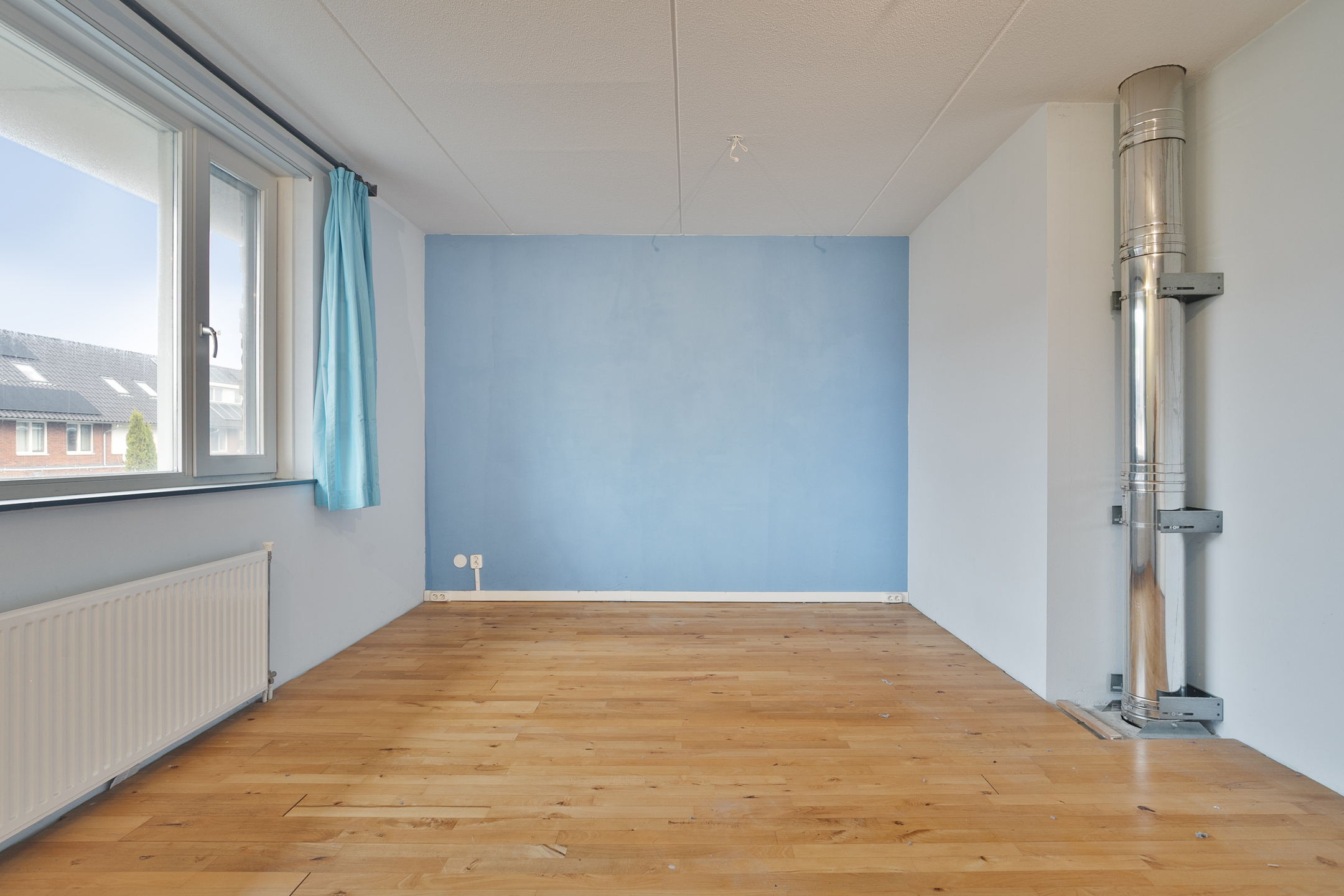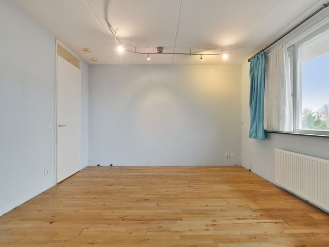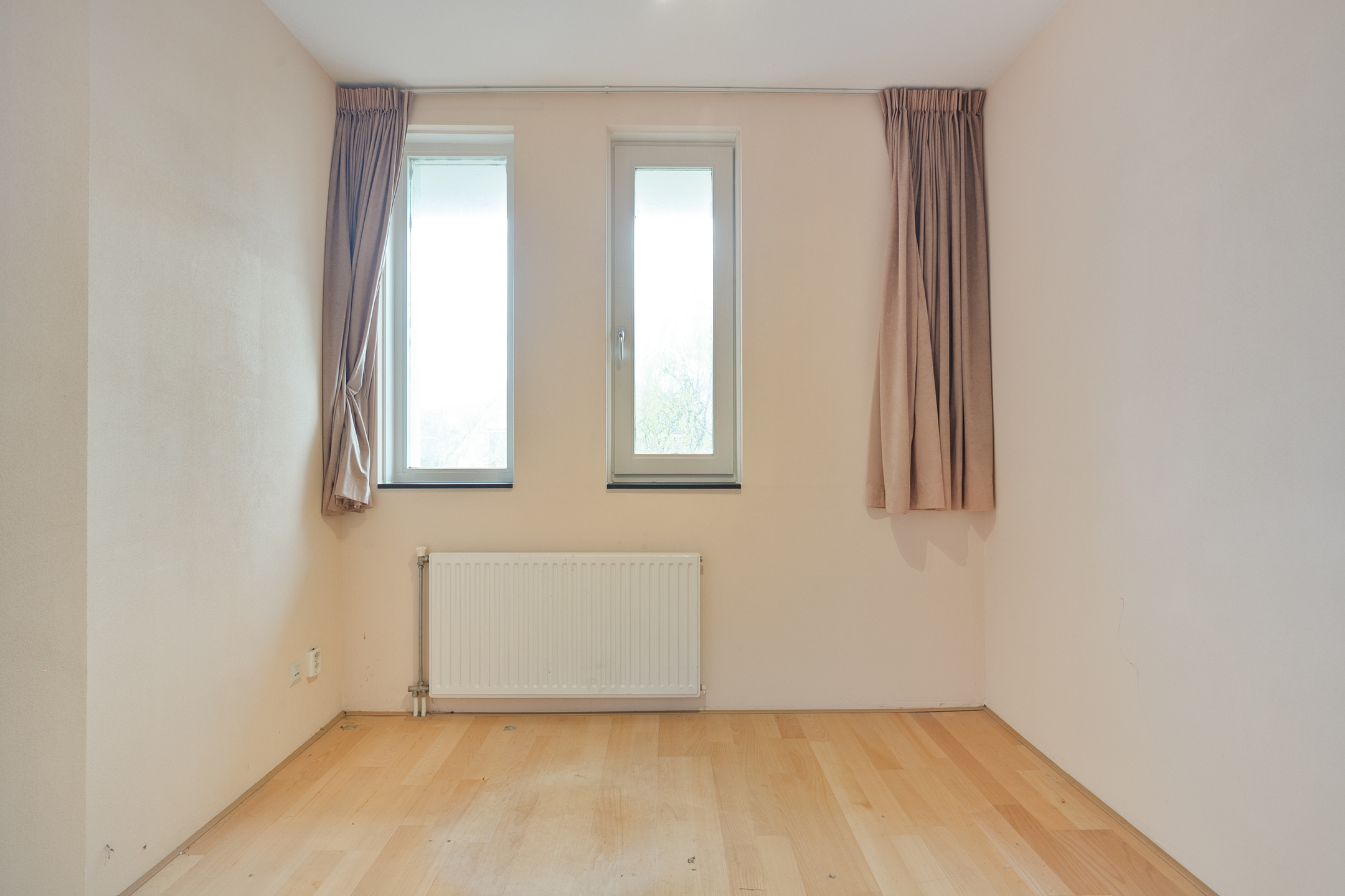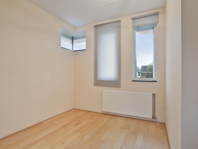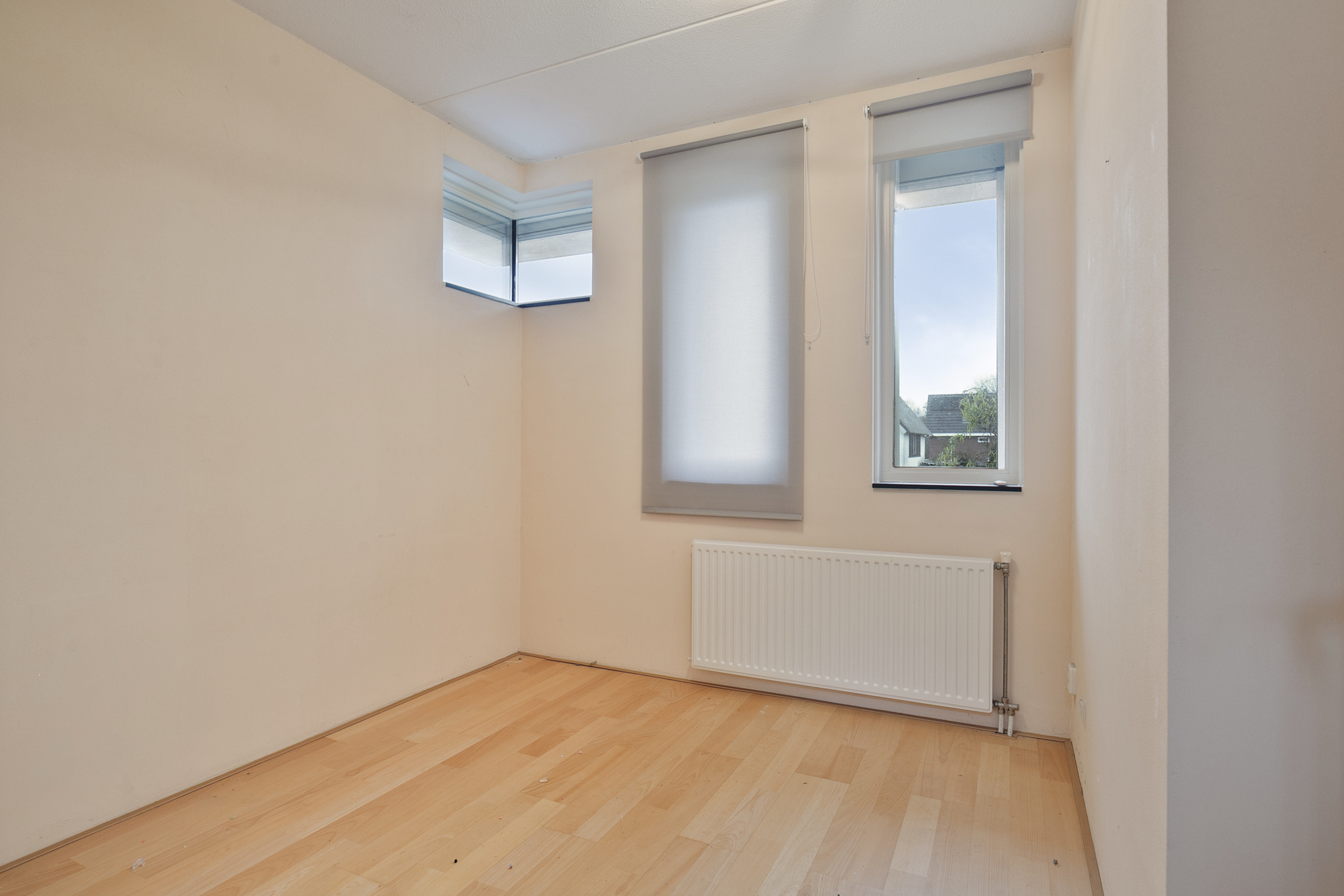 Slaapkamer II (voorzijde): eveneens voorzien van laminaat, gestucte wanden en plafond, houten kozijnen met HR++ glas en draaikiepfunctie. Daarnaast beschikt deze kamer over een elektrisch rolluik.