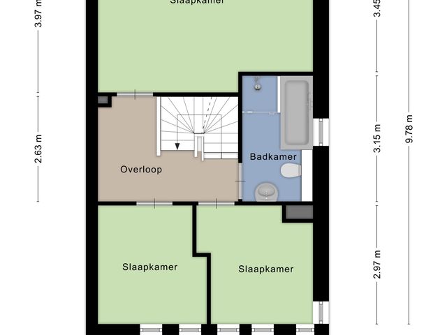 Indelingstekeningen en maatvoeringen zijn slechts indicatief, kunnen afwijken van de werkelijke situatie en zijn uitsluitend bedoeld om een indruk te geven van de indeling. De Meetinstructie is gebaseerd op de NEN2580. De Meetinstructie is bedoeld om een meer eenduidige manier van meten toe te passen voor het geven van een indicatie van de gebruiksoppervlakte. De Meetinstructie sluit verschillen in meetuitkomsten niet volledig uit, door bijvoorbeeld interpretatieverschillen,