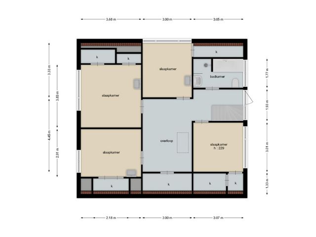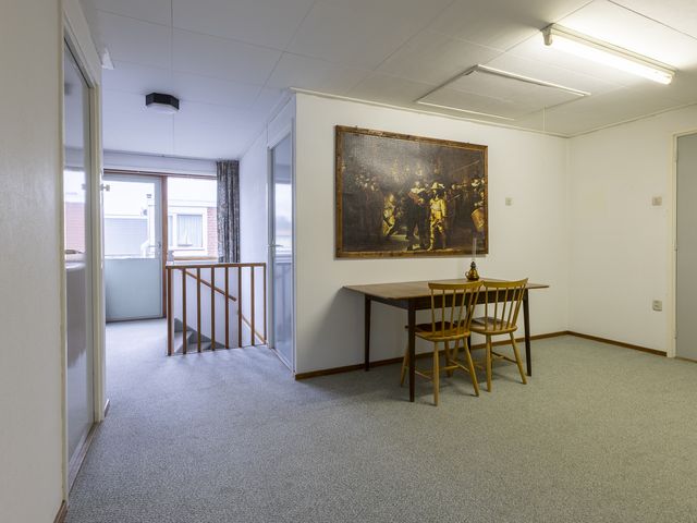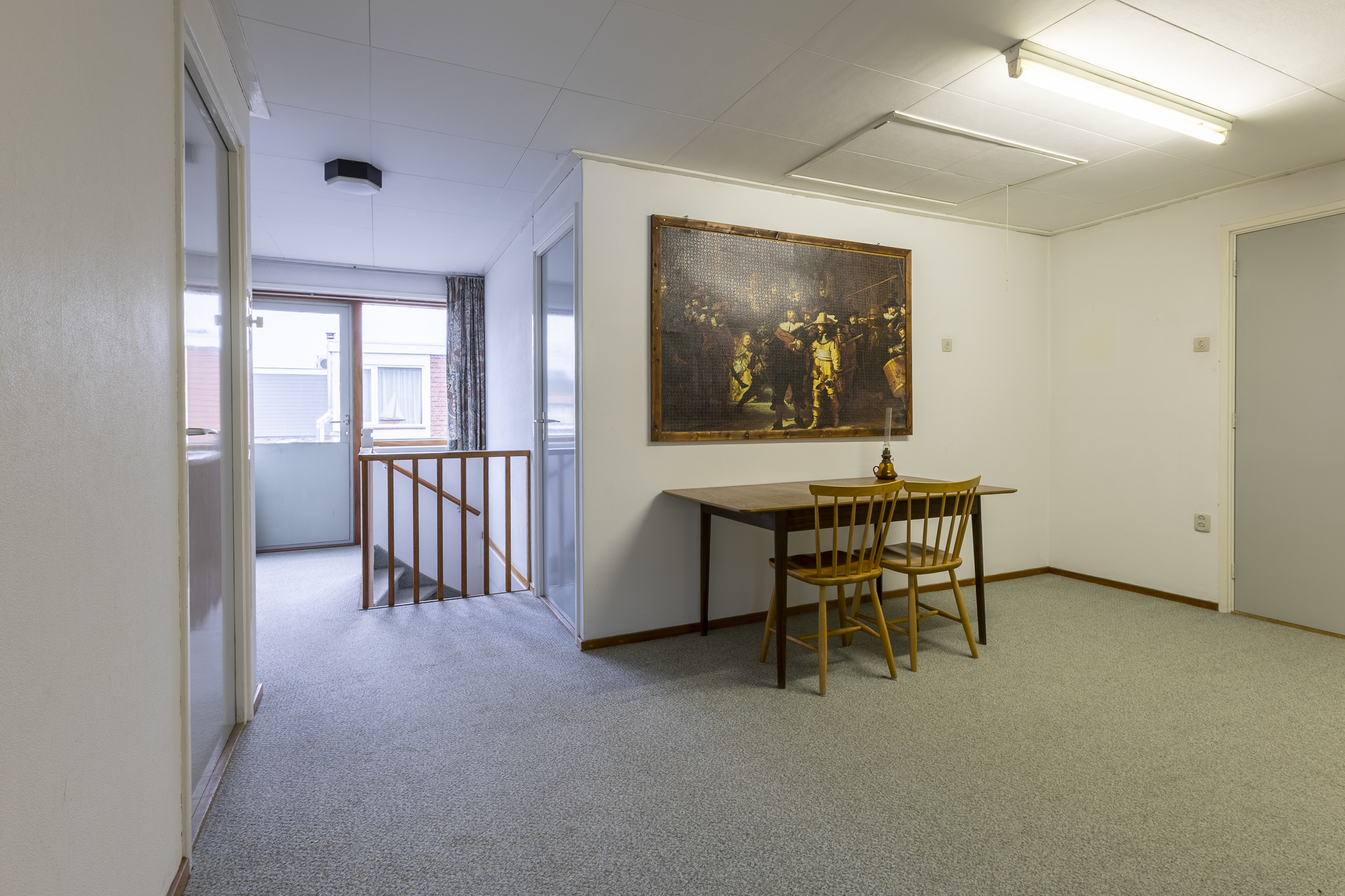Op de overloop bevindt zich een luik met vlizotrap waar je eenvoudig een vaste trap kunt maken naar de 2e verdieping.