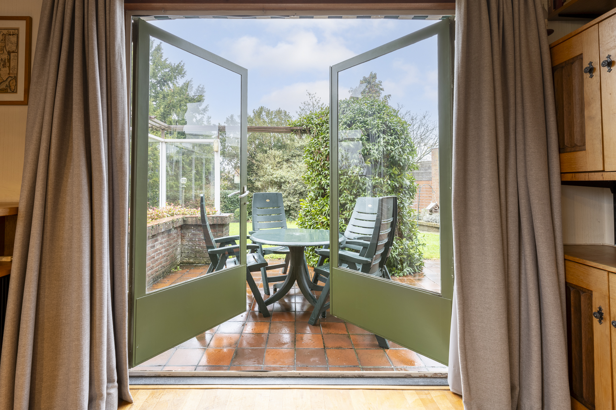Aan de voorzijde beschikt de woning over een oprit, waardoor parkeren op eigen terrein altijd mogelijk is.