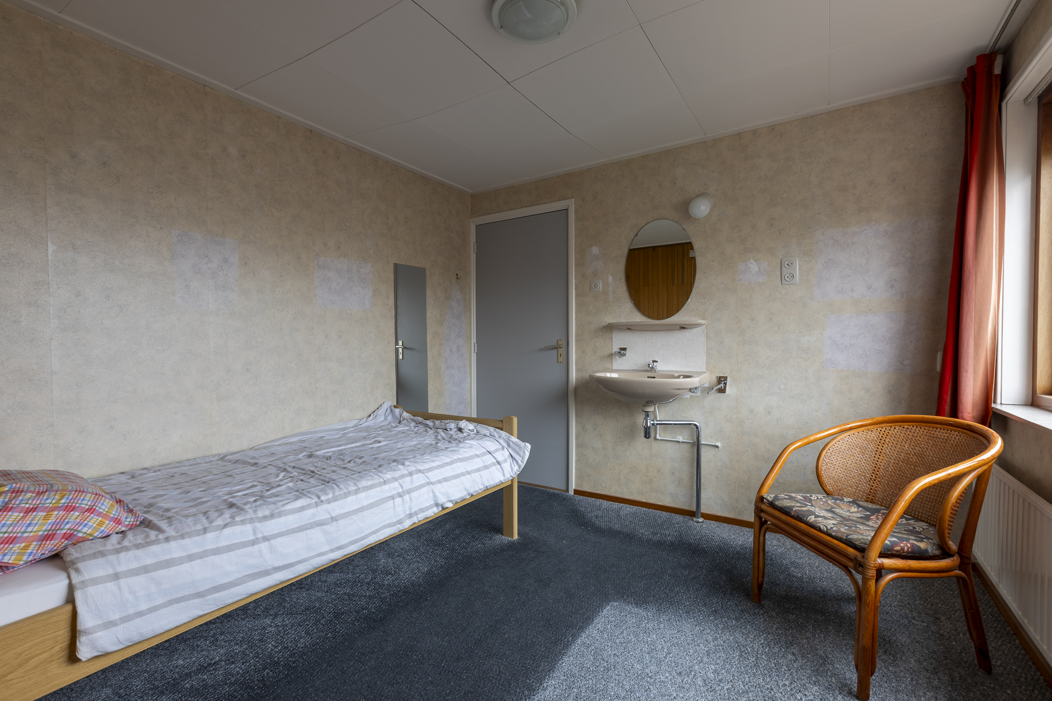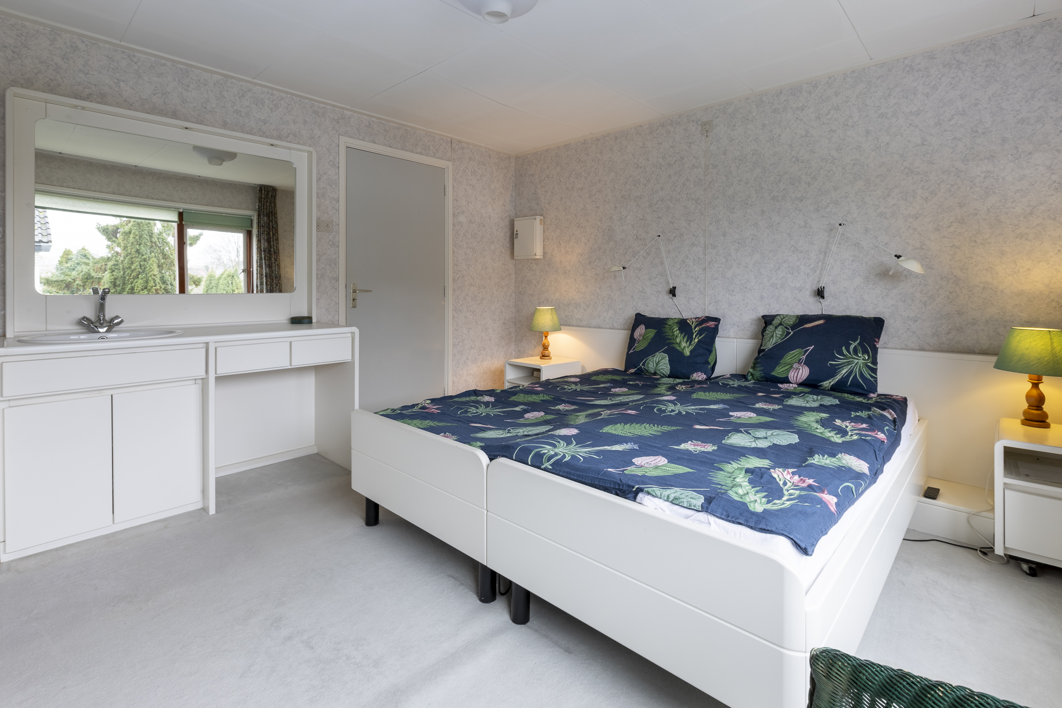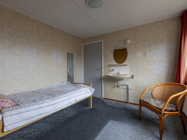Slaapkamer II gelegen aan de zijkant met vaste wastafel.