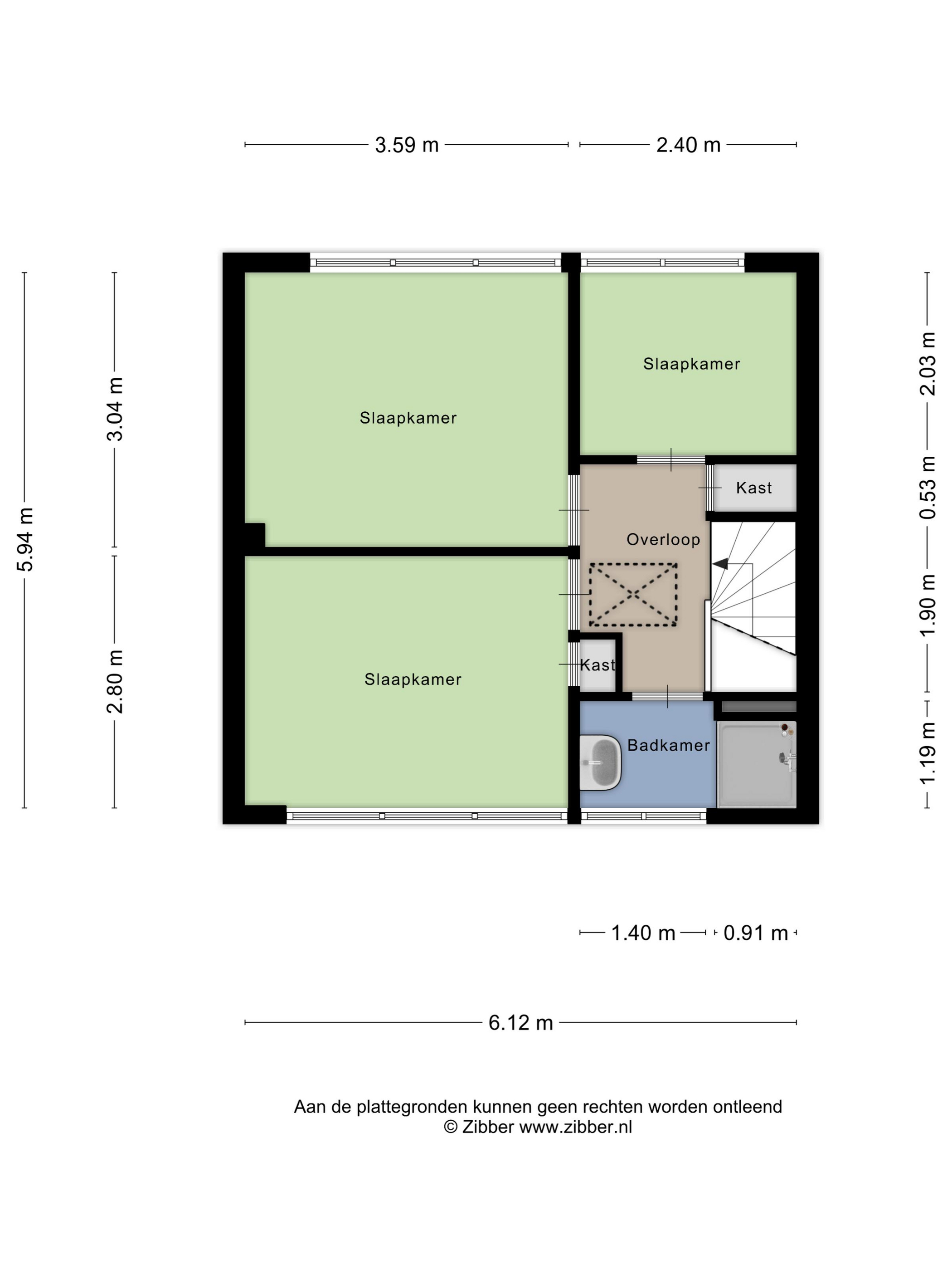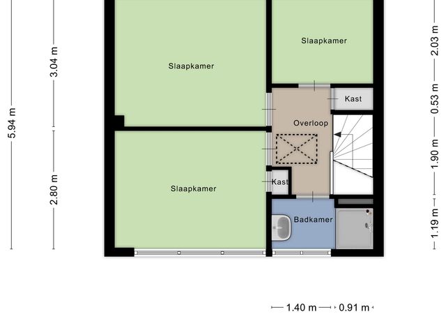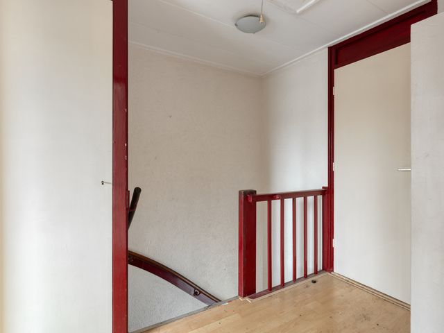 De overloop biedt toegang tot drie slaapkamers en de badkamer. Tevens bevindt zich hier de vlizotrap naar de zolder.