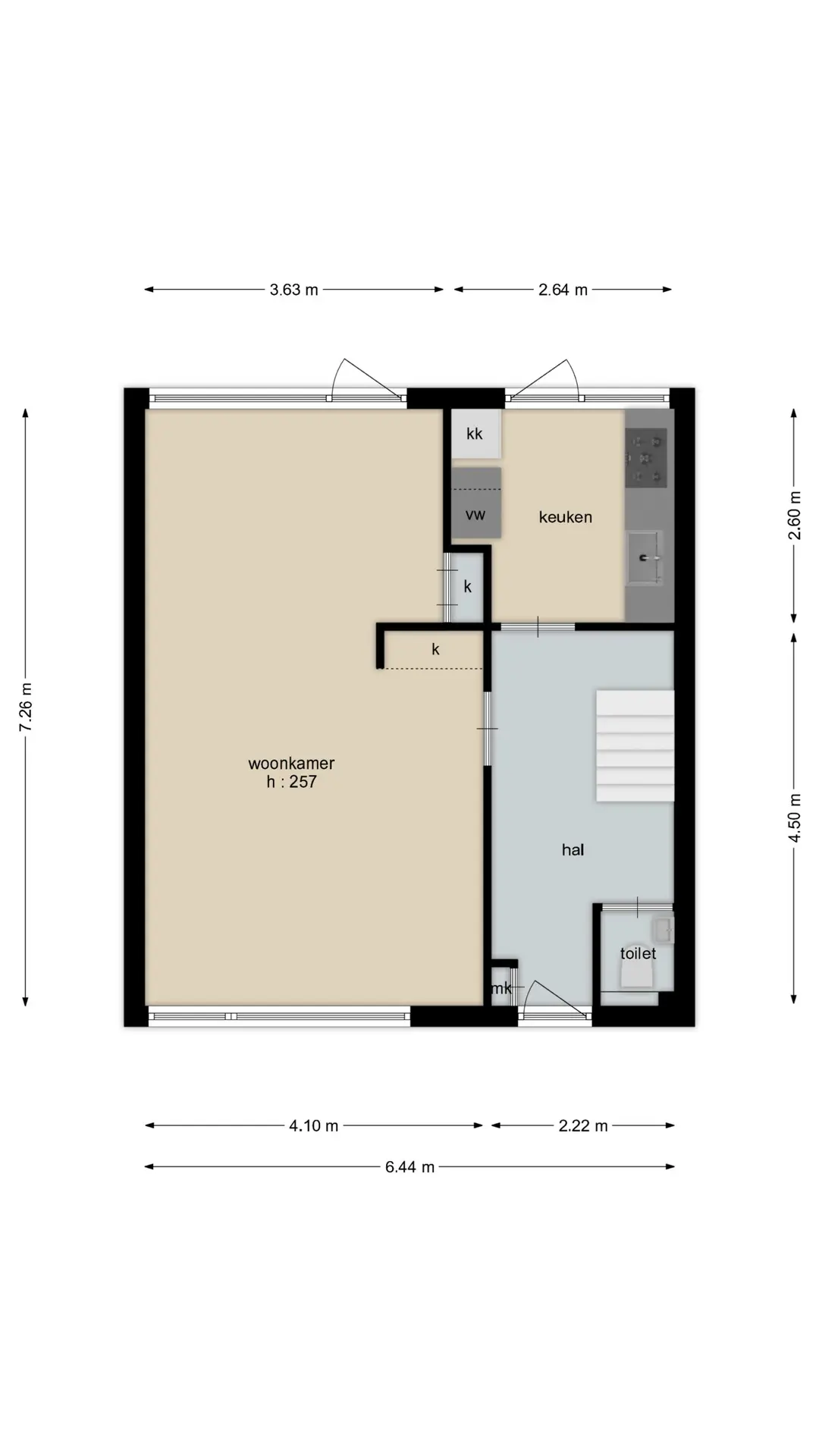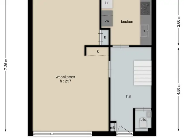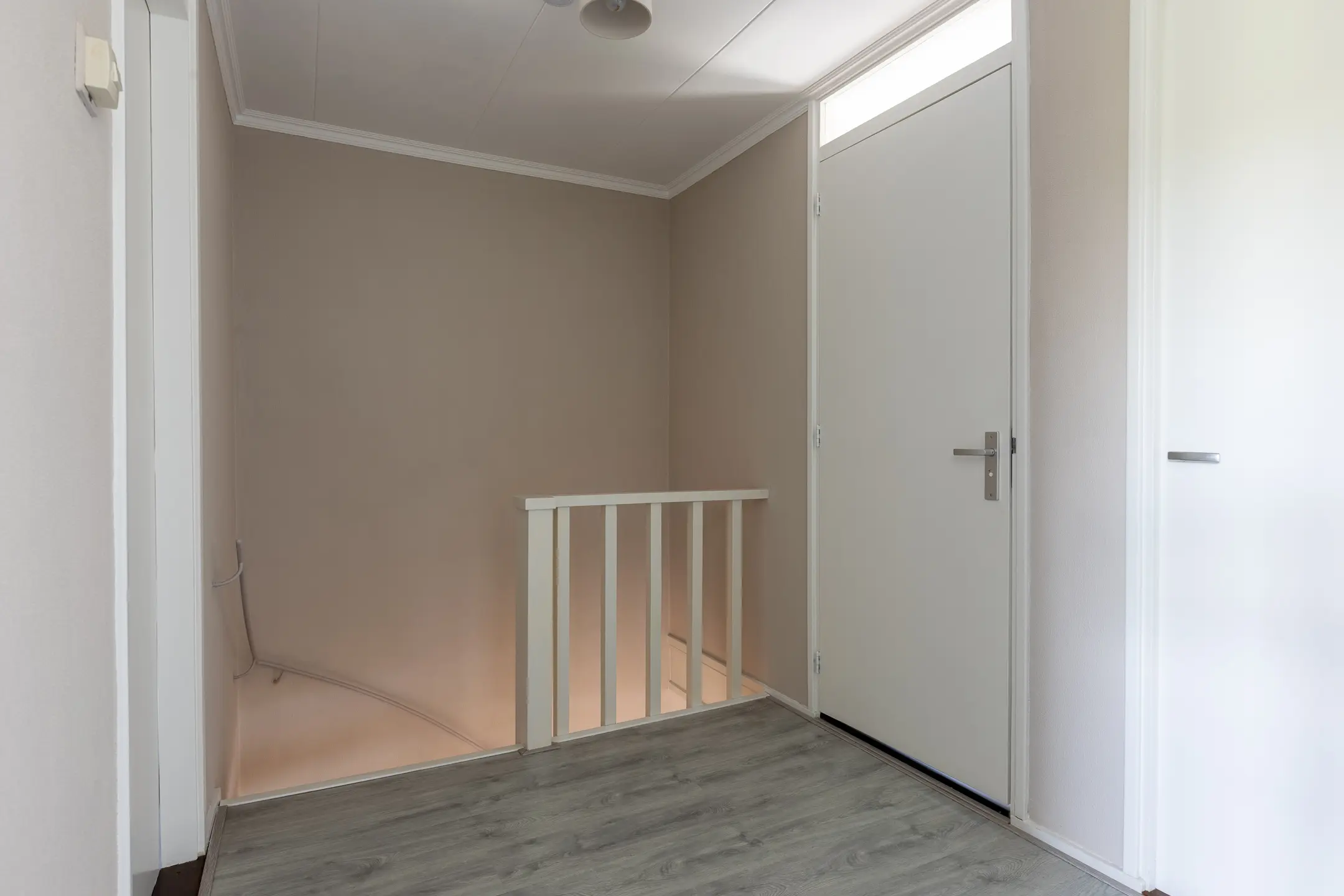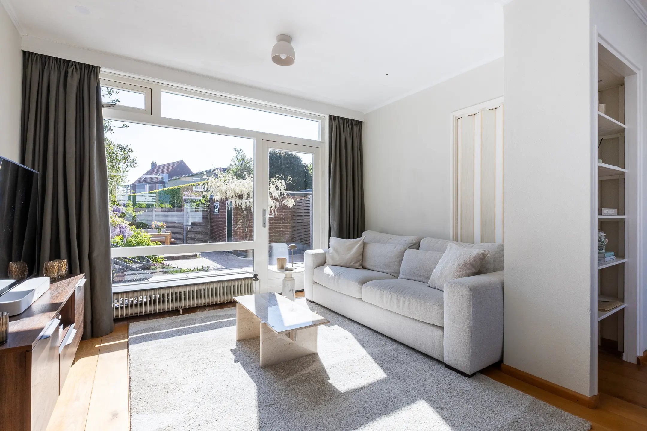 Via de entree betreedt u de hal met meterkast en toiletruimte. Vanuit hier heeft u toegang tot de woonkamer en de keuken. De woonkamer is een lichte en sfeervolle leefruimte en beschikt over een praktische inbouwkast, een eikenhouten vloer en een deur naar de achtertuin.