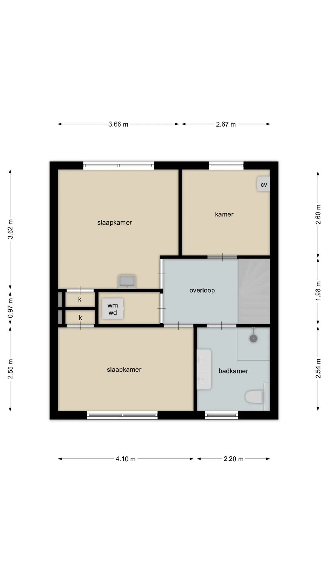 De slaapkamers hebben een praktische indeling en een fijn formaat.