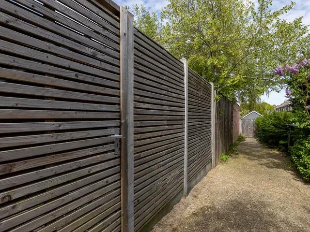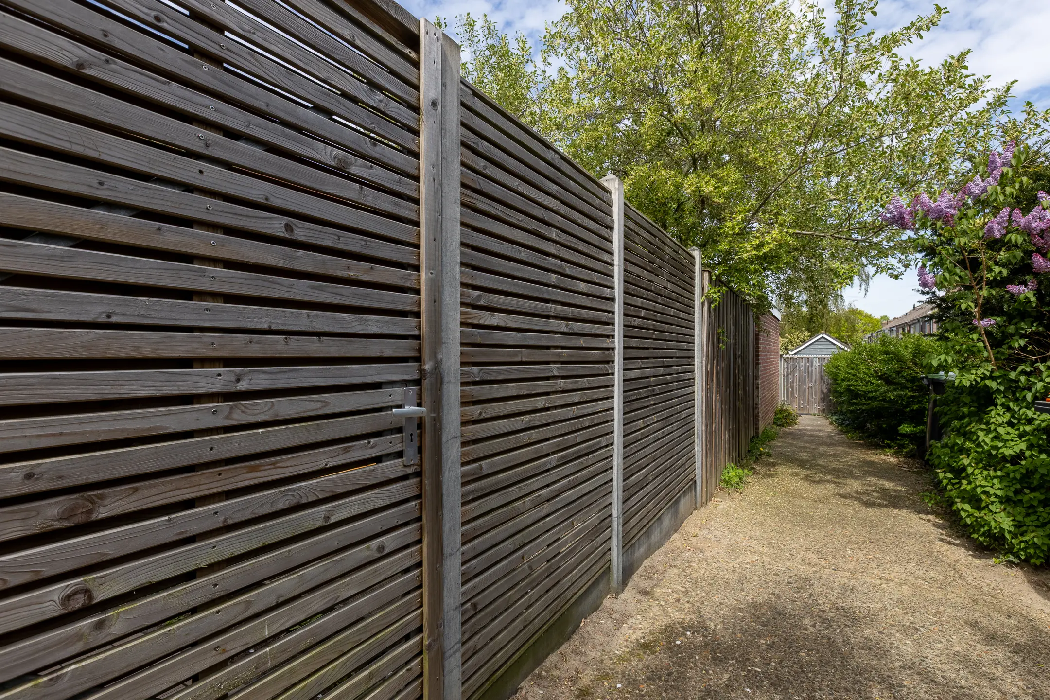 Onderhoudsvriendelijke achtertuin met berging en achterom