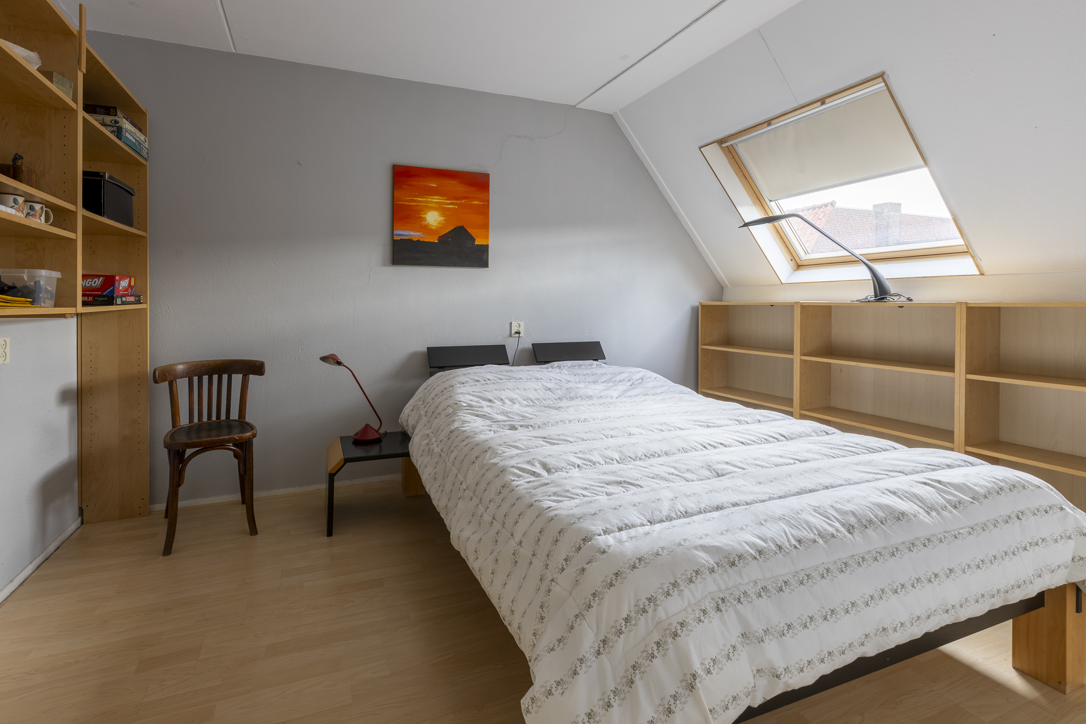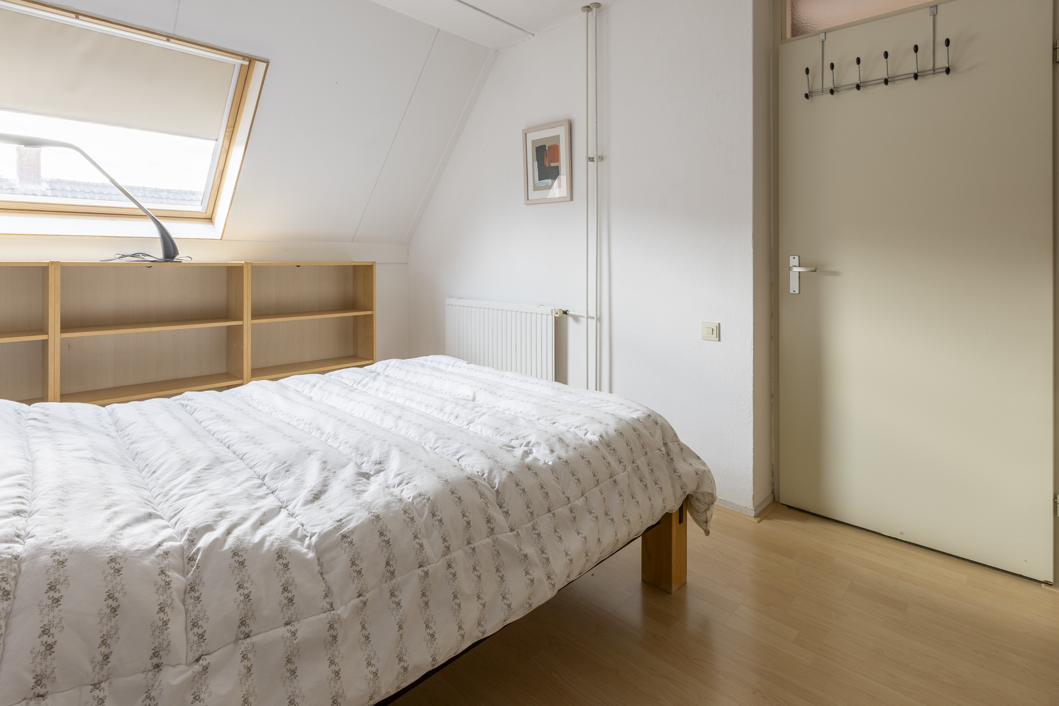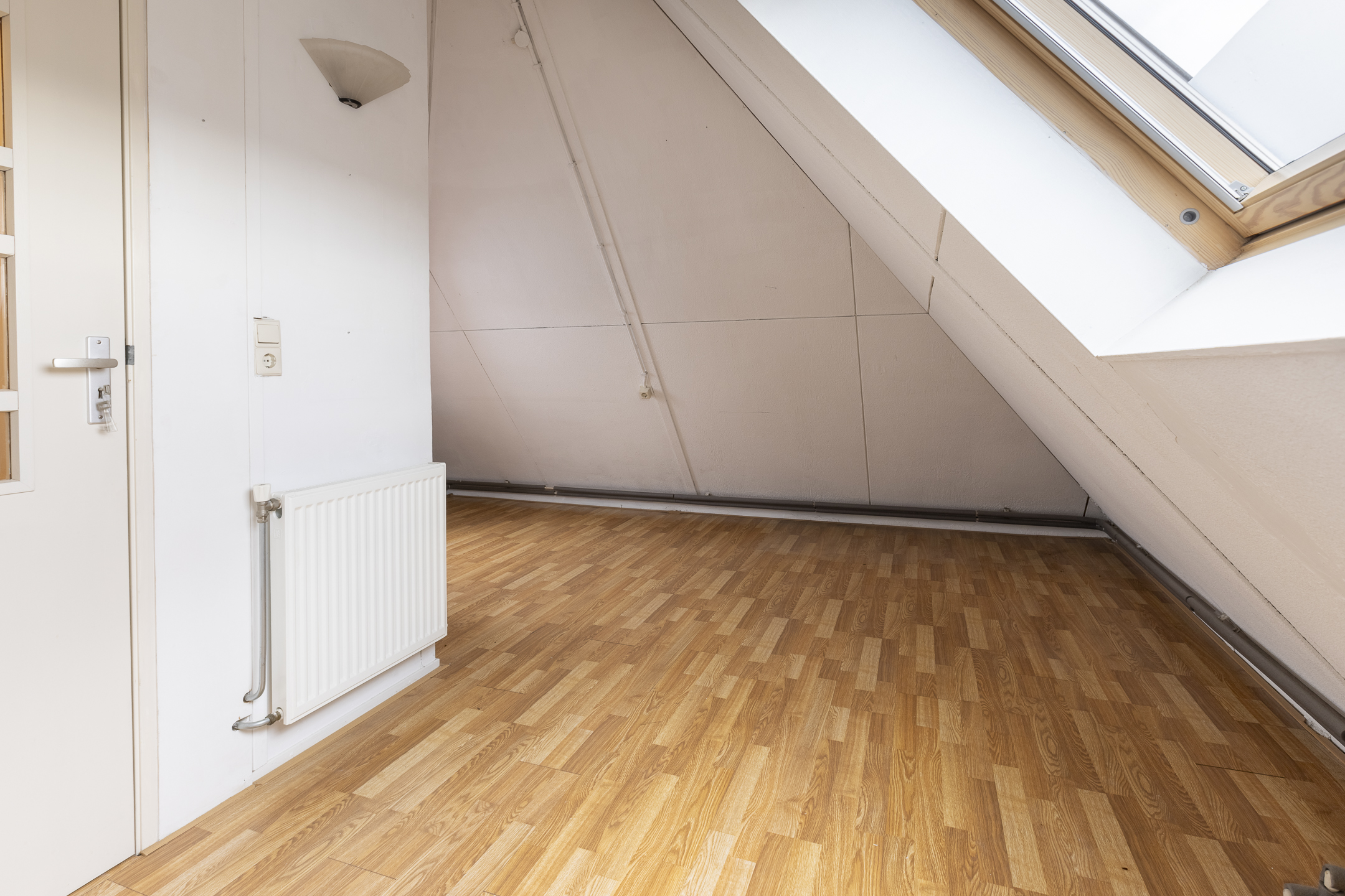 Middels vaste trap te bereiken open zolder. Met toegang tot de derde slaapkamer eveneens voorzien van laminaatvloer en twee dakramen. Verder beschikt deze verdieping over een inbouwkast en de opstelling van de cv-ketel (2009)
