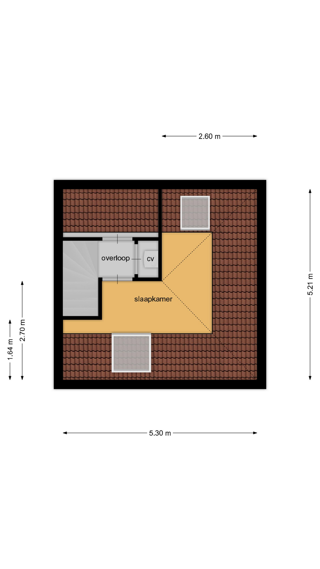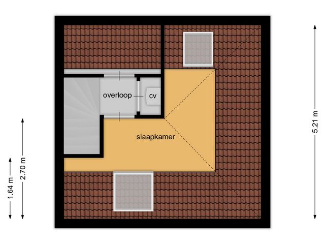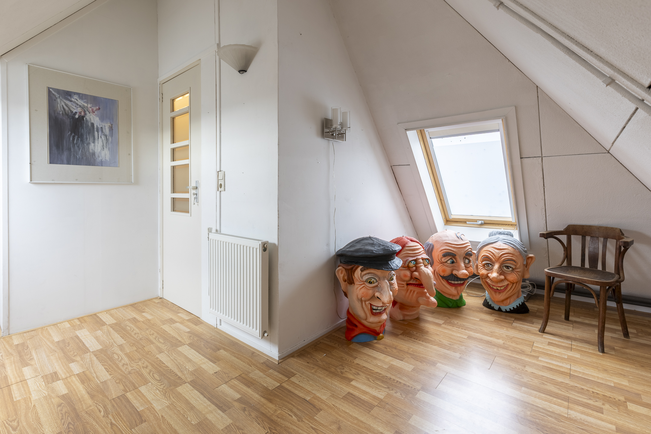 Middels vaste trap te bereiken open zolder. Met toegang tot de derde slaapkamer eveneens voorzien van laminaatvloer en twee dakramen. Verder beschikt deze verdieping over een inbouwkast en de opstelling van de cv-ketel (2009)