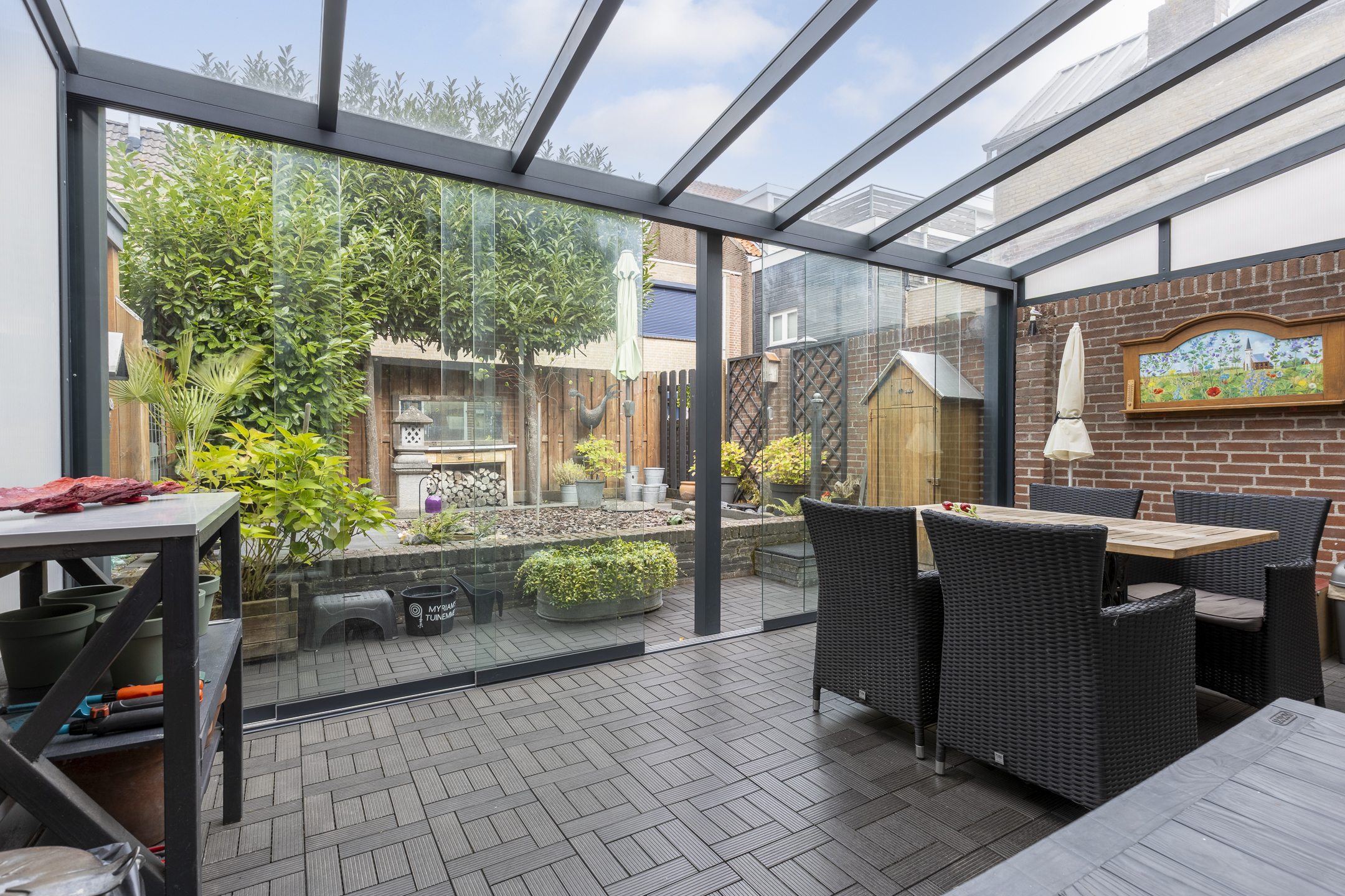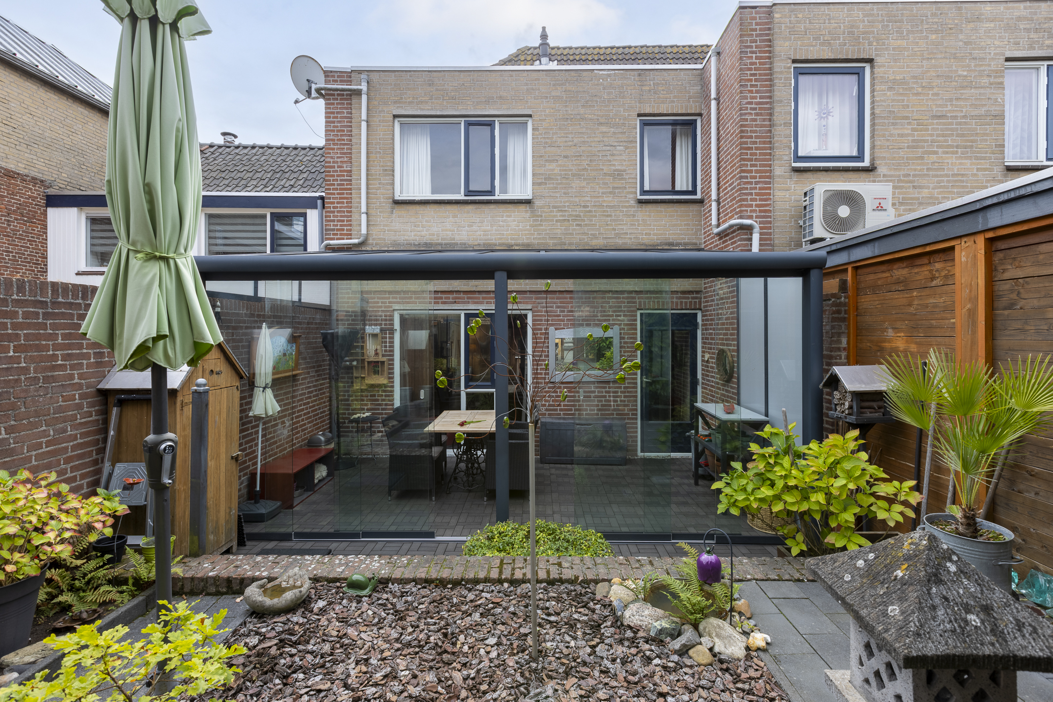 De woning beschikt over een keurige tuin, ideaal om te genieten van het buitenleven. Met voldoende ruimte voor een loungehoek of eettafel, maar toch onderhoudsvriendelijk. Extra pluspunt is de serre met glazen pui, met de serre als verlengstuk van de woonkamer geniet je van extra ruimte en volop daglicht.