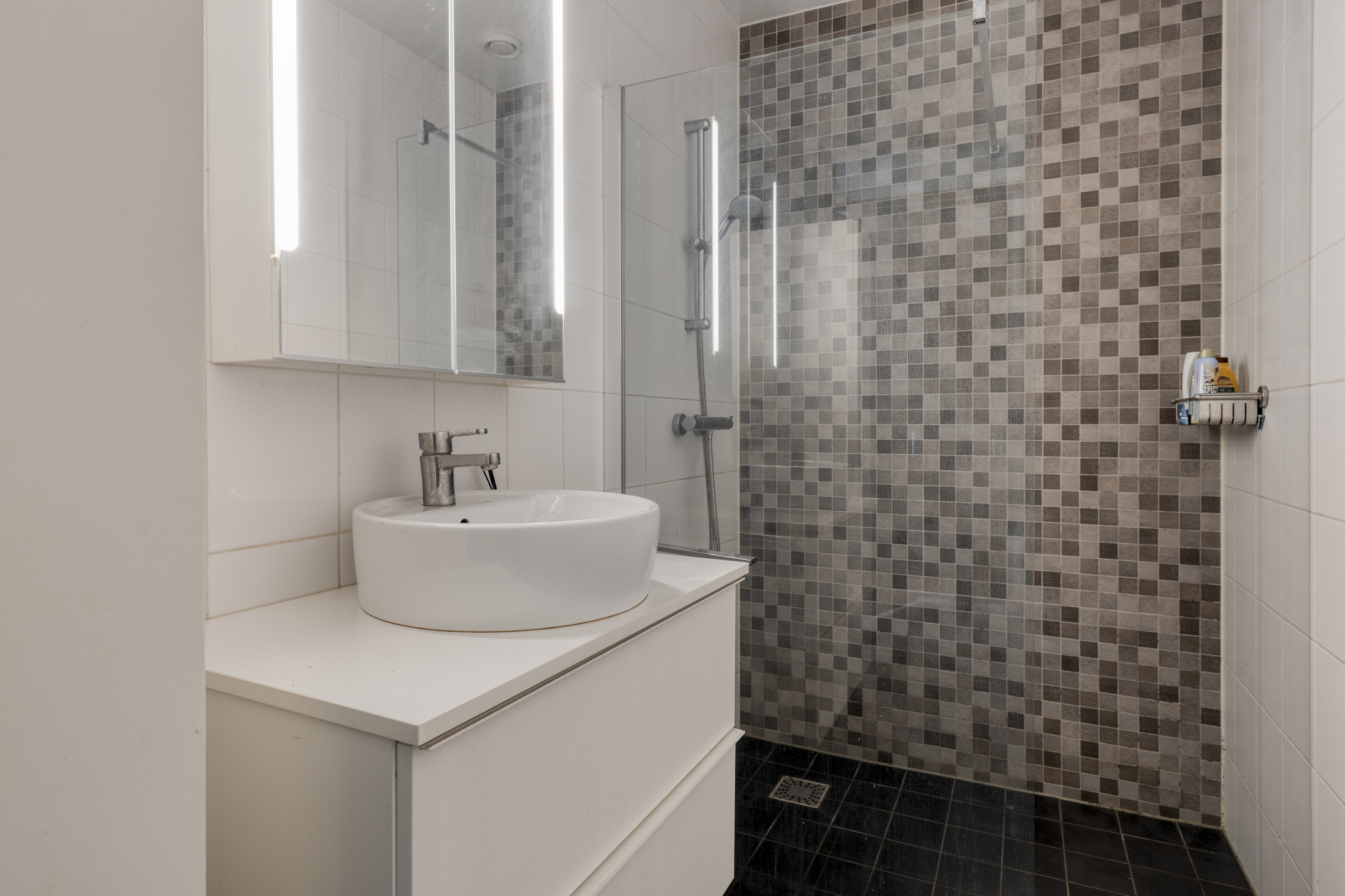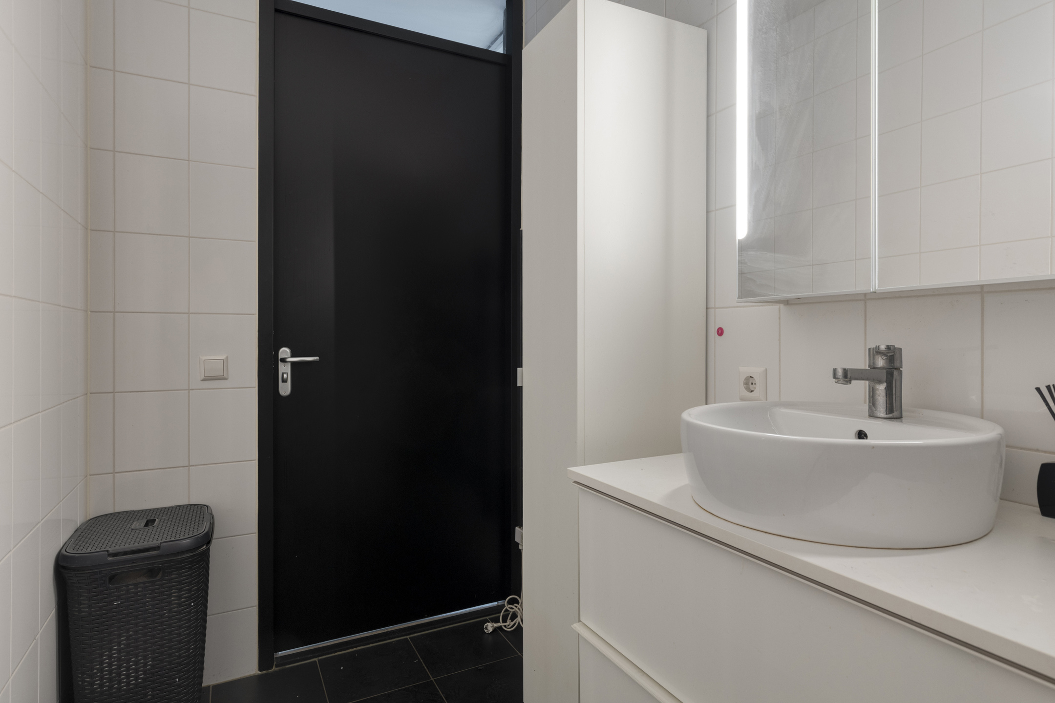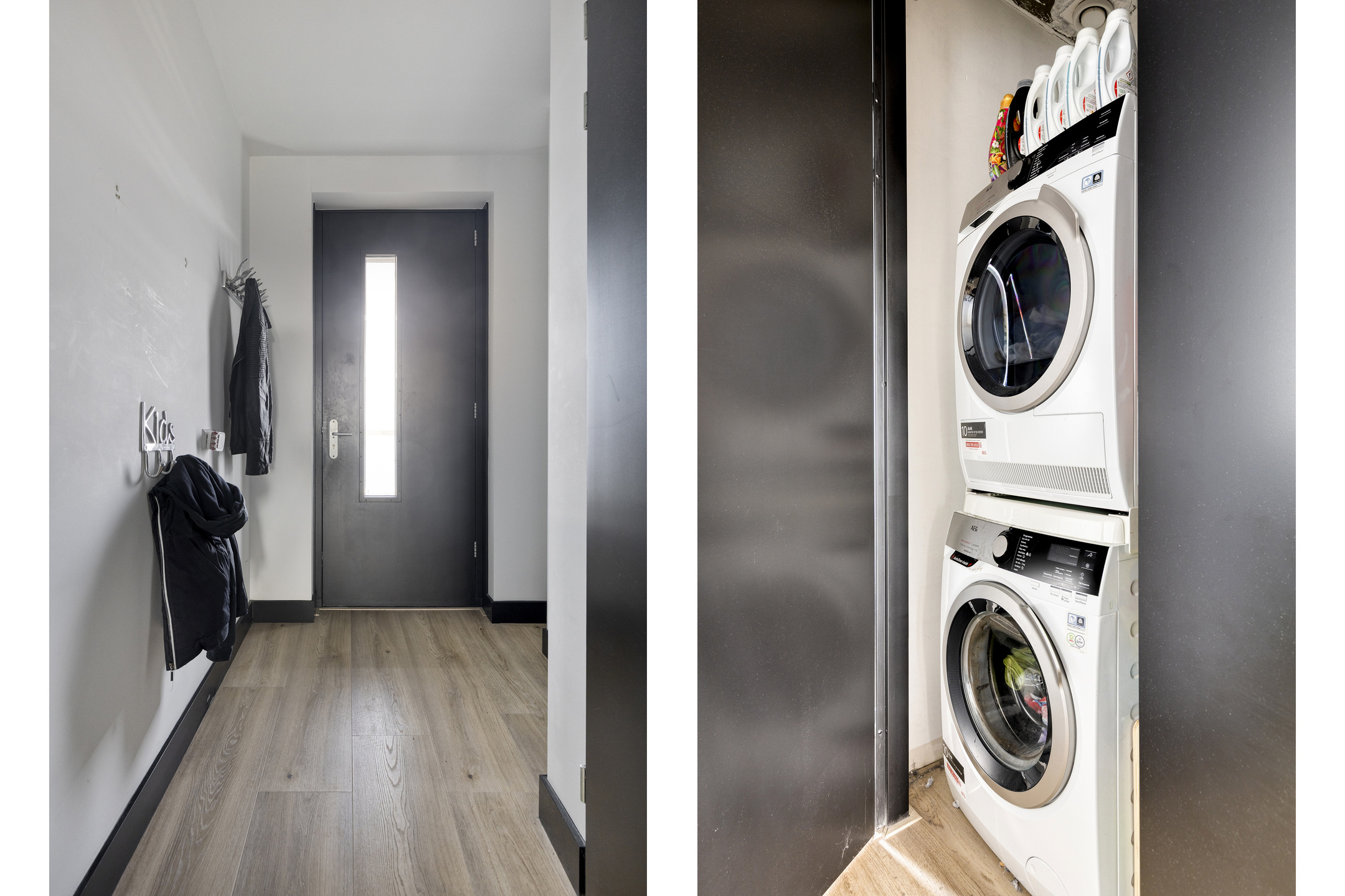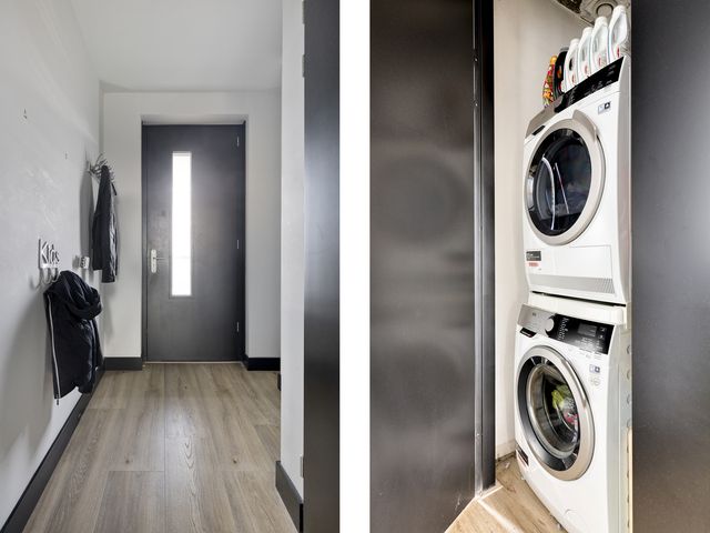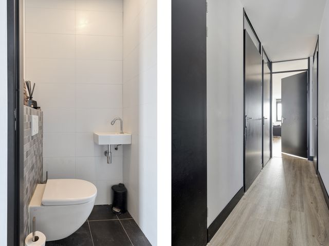 Achter de voordeur stap je binnen in een lange hal die direct een verzorgde indruk maakt. Hier vind je de meterkast, een praktische bergkast met witgoedaansluitingen en het moderne toilet met fonteintje.