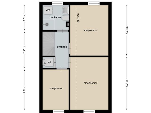 Overloop met toegang tot drie volwaardige slaapkamers, allen netjes afgewerkt en prettig van formaat. Ook deze verdieping is voorzien van een pvc vloer en vloerverwarming per ruimte separaat te bedienen.