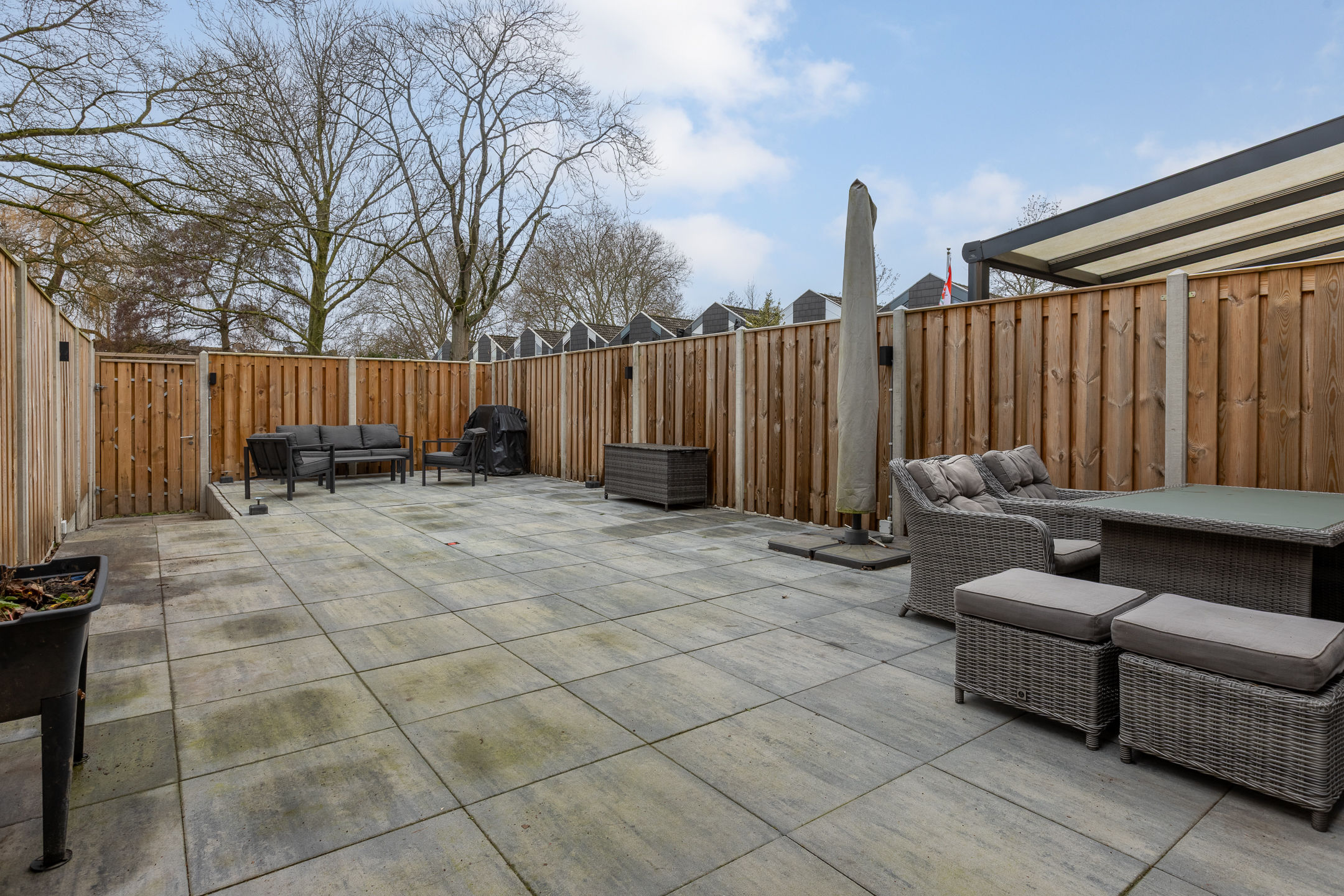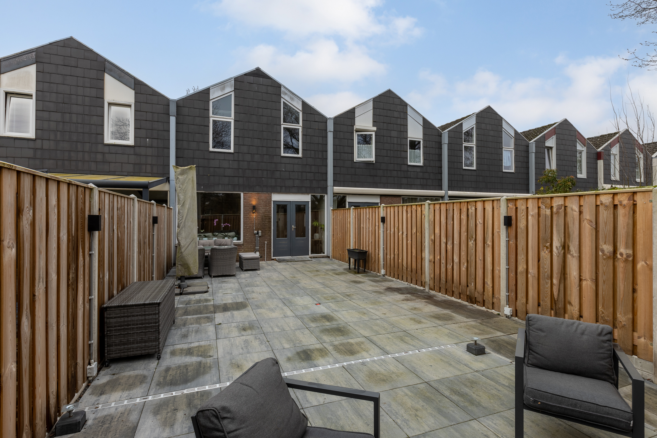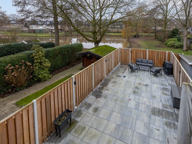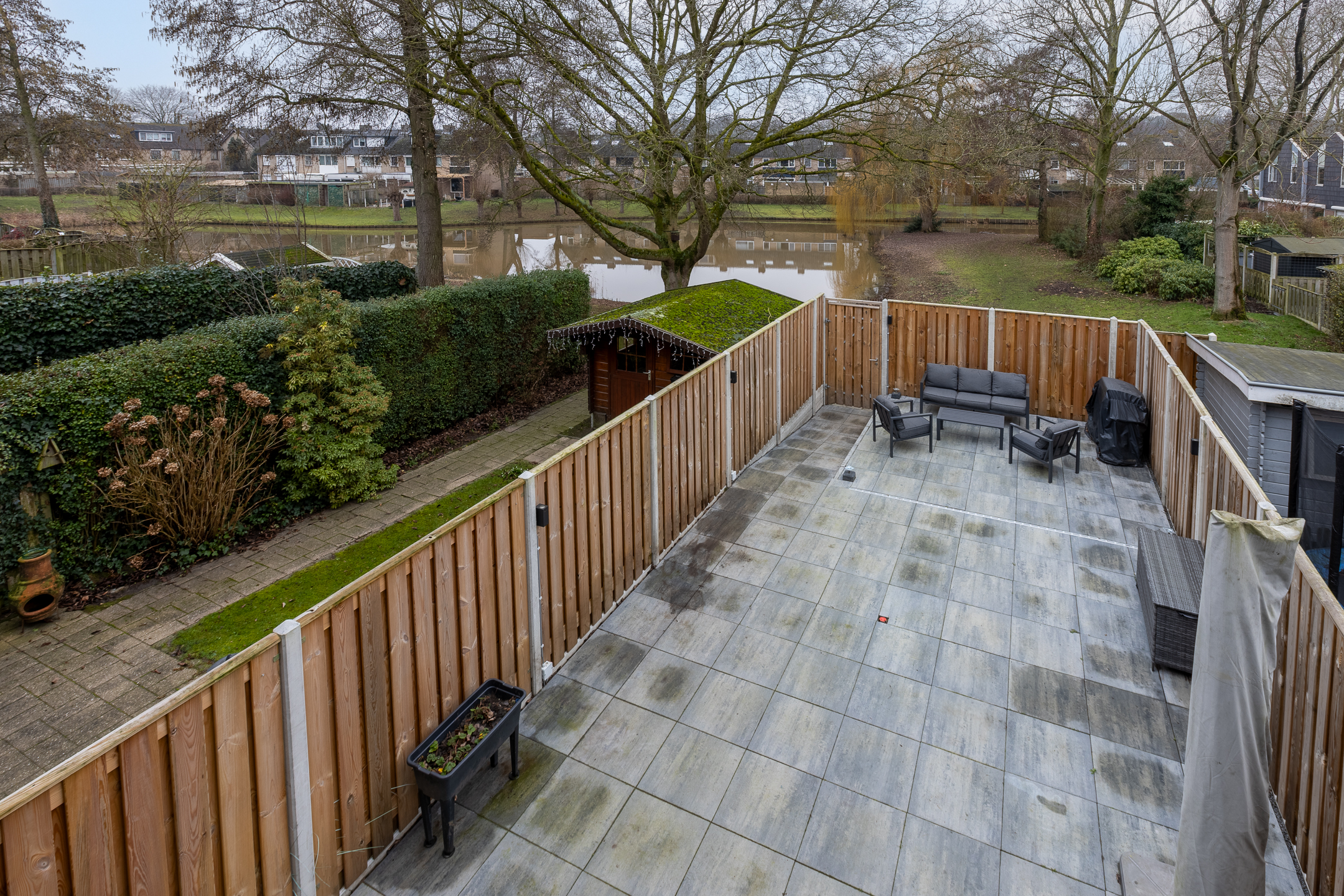 Onderhoudsvriendelijke achtertuin, betegeld met sierbestrating en direct grenzend aan een groenvoorziening met water. Een rustige plek waar u kunt genieten van voldoende privacy! Aan de voorzijde van de woning bevindt zich nog een stenen berging met elektra.