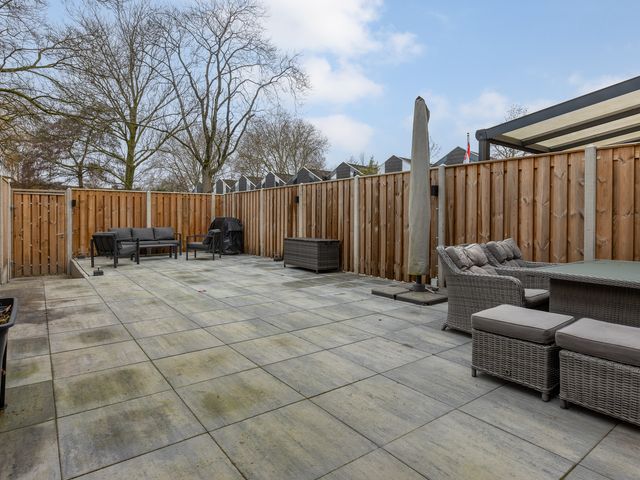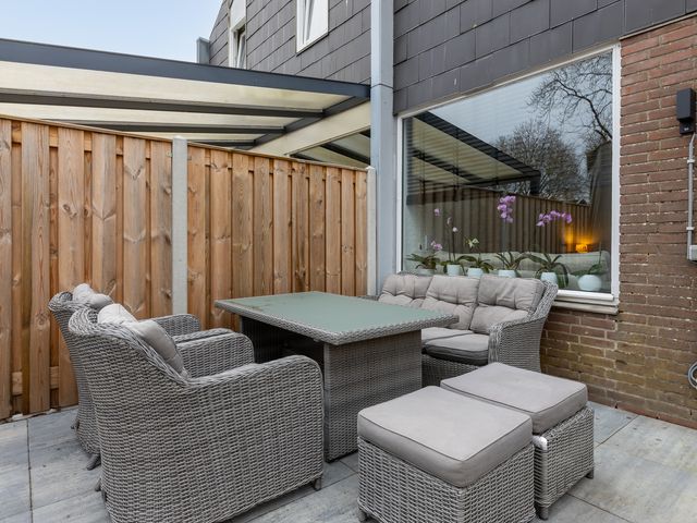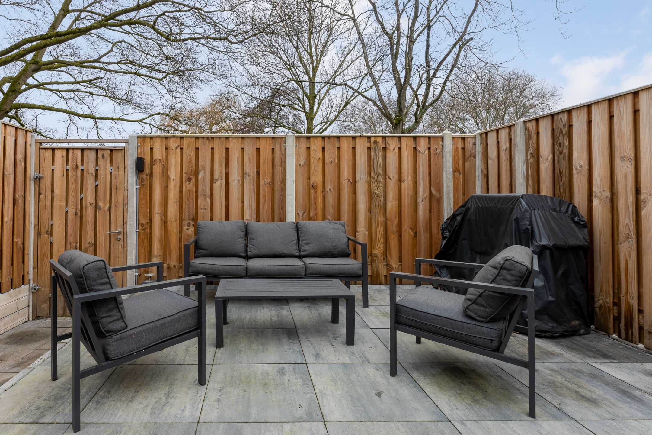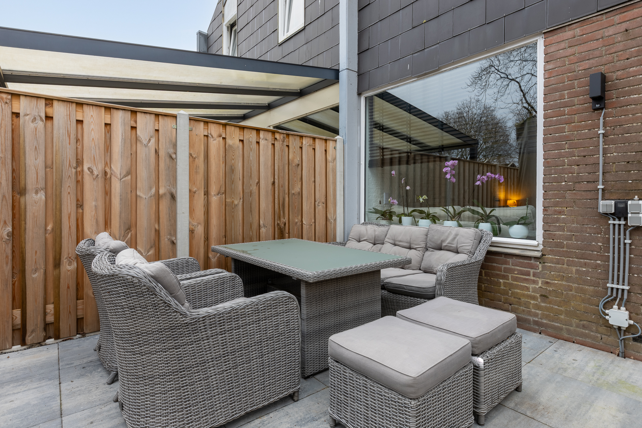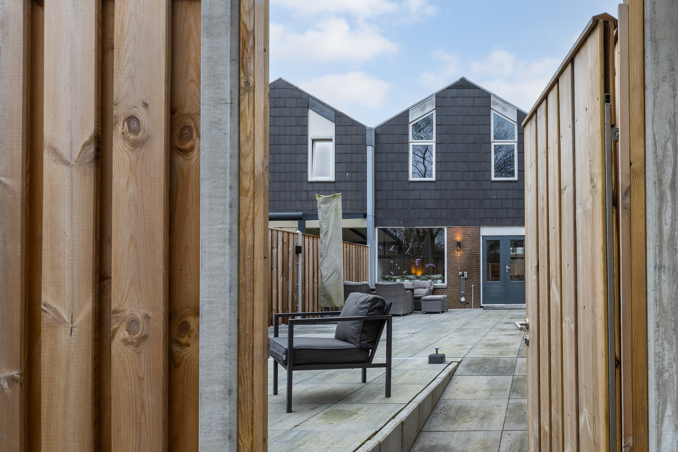 Onderhoudsvriendelijke achtertuin, betegeld met sierbestrating en direct grenzend aan een groenvoorziening met water. Een rustige plek waar u kunt genieten van voldoende privacy! Aan de voorzijde van de woning bevindt zich nog een stenen berging met elektra.