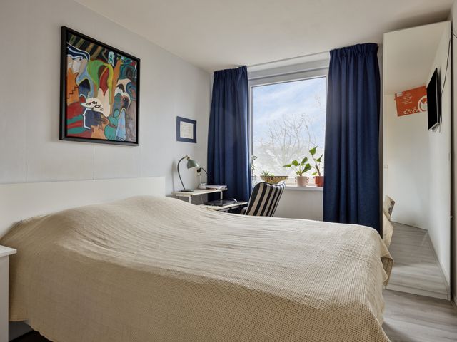 Slaapkamer I, gelegen aan de voorzijde, is voorzien van een laminaatvloer en kunststof kozijnen met HR++ beglazing.