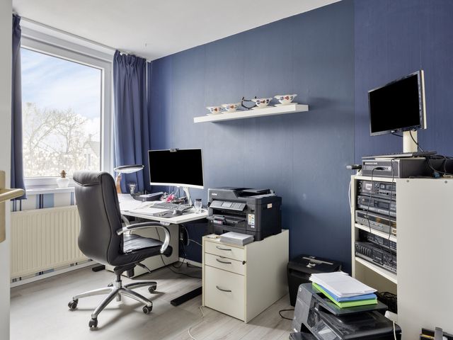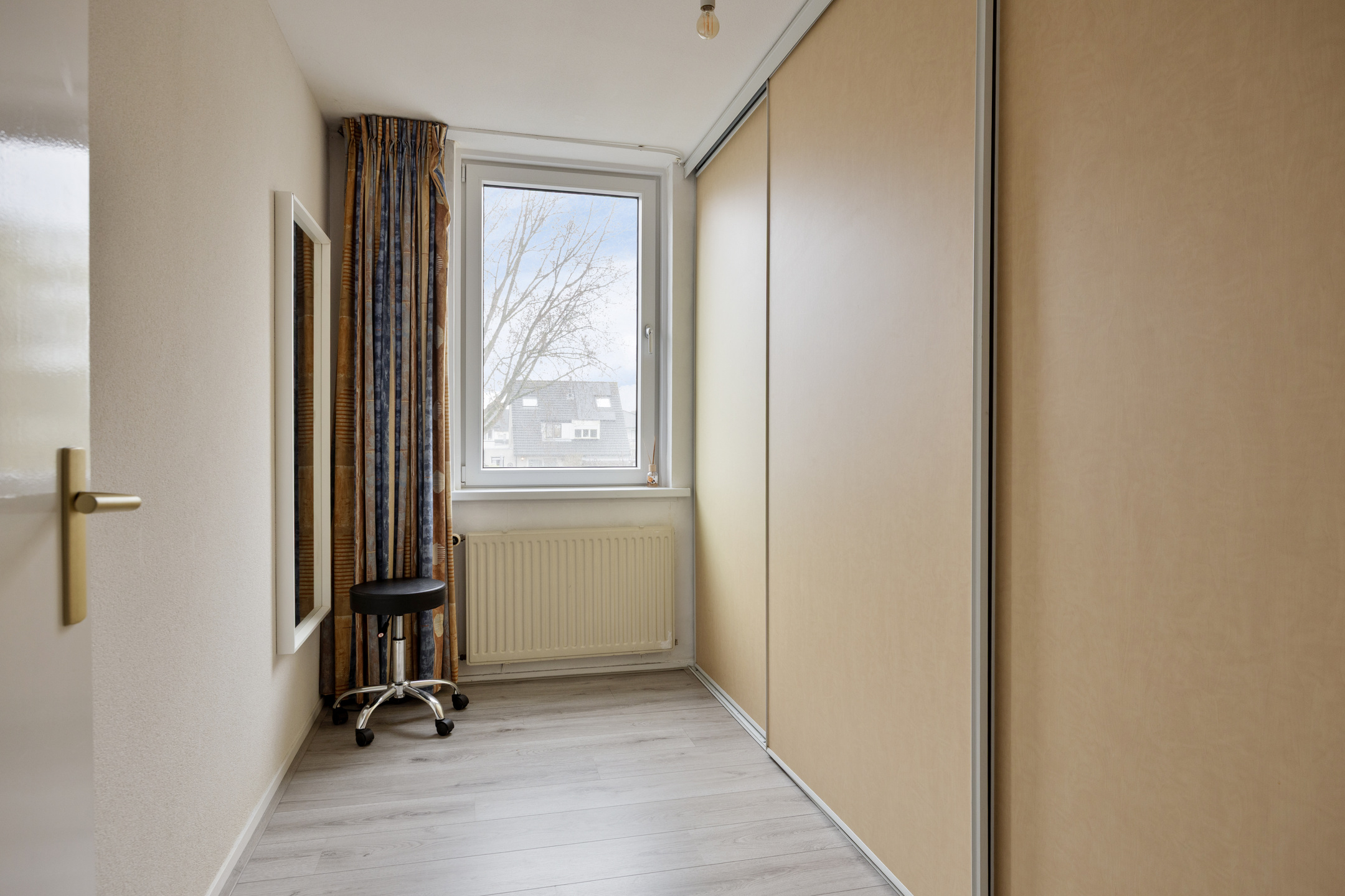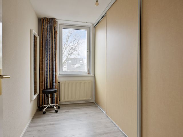 Slaapkamer III, eveneens gelegen aan de achterzijde, is voorzien van een laminaatvloer en kunststof kozijnen met HR++ beglazing.