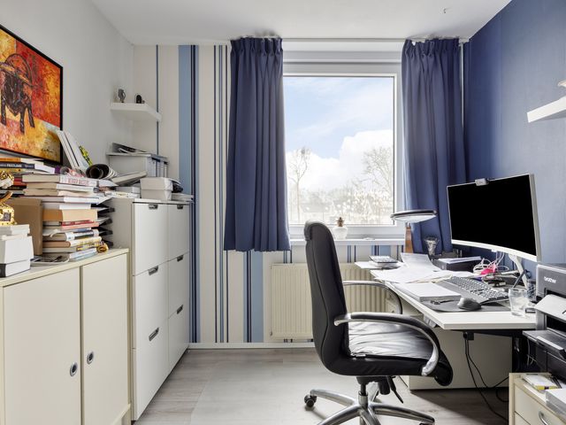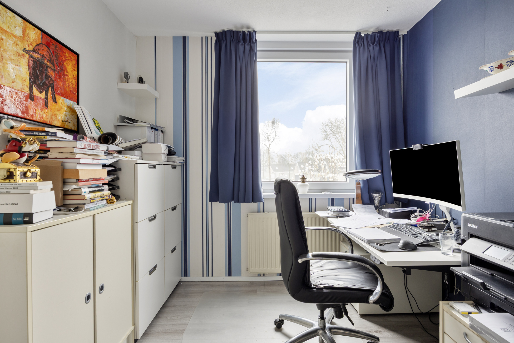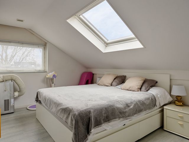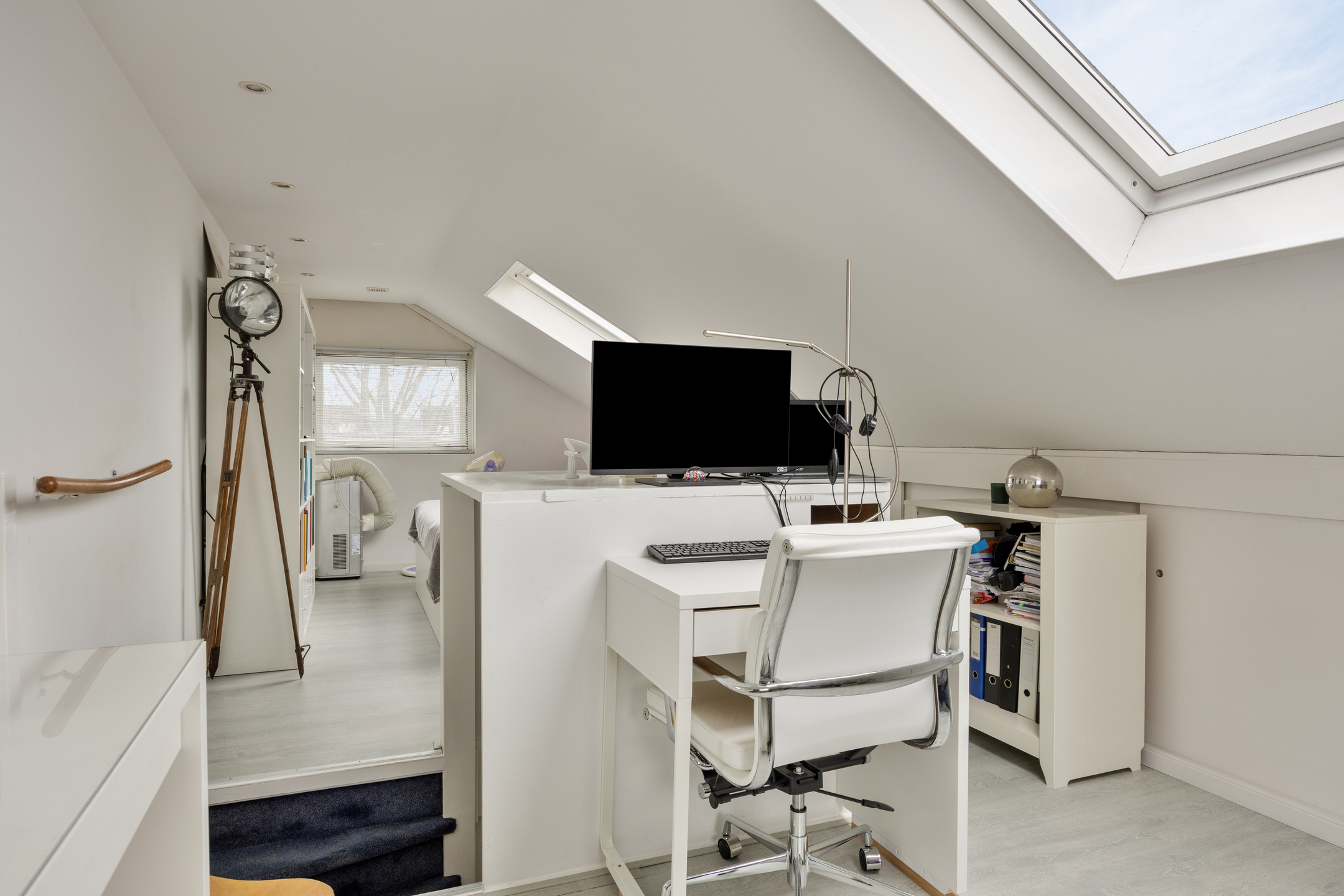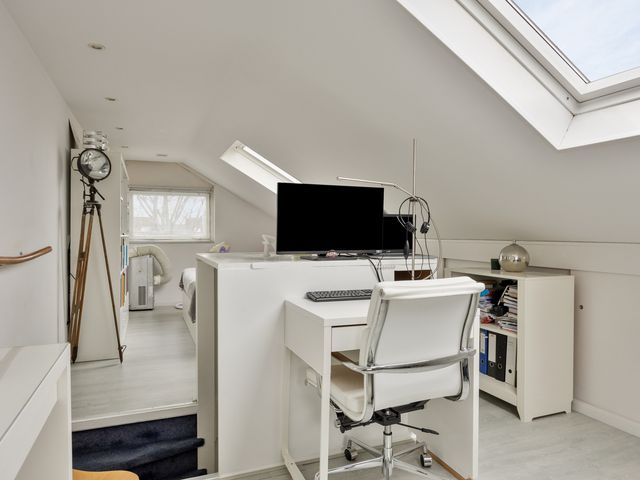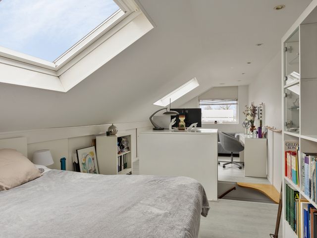 Op de tweede verdieping bevindt zich de vierde slaapkamer. Deze kamer is voorzien van houten kozijnen met dubbele beglazing. Het dakraam is uitgevoerd in kunststof met dubbele beglazing.