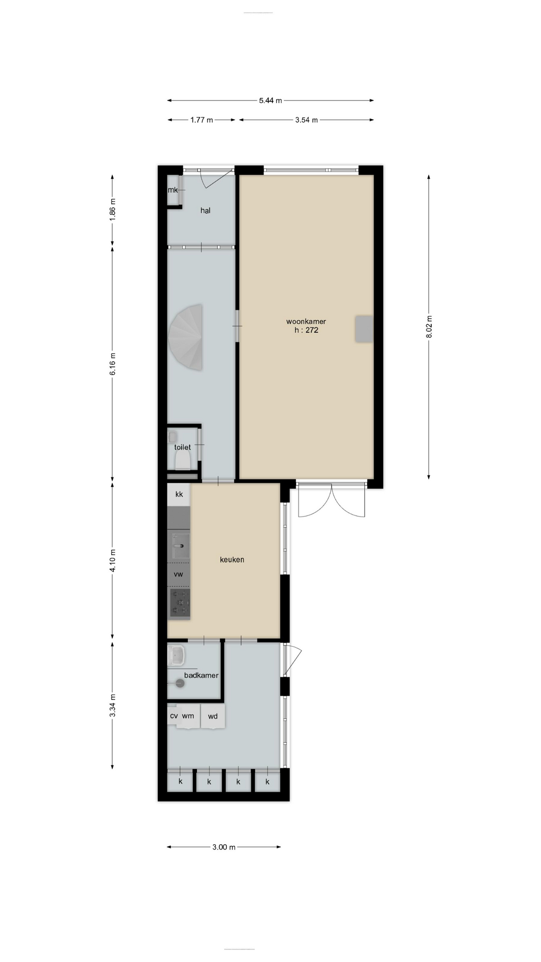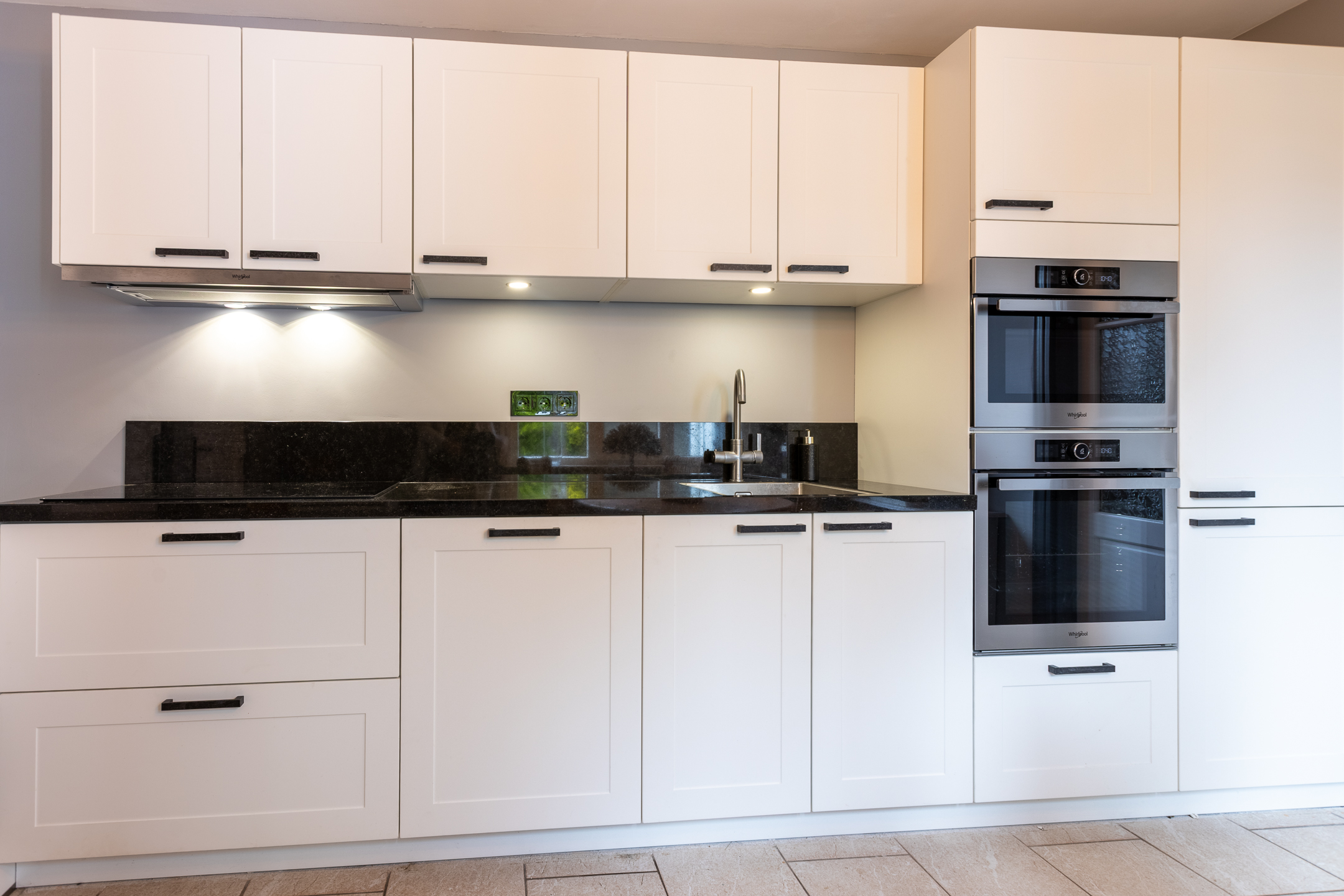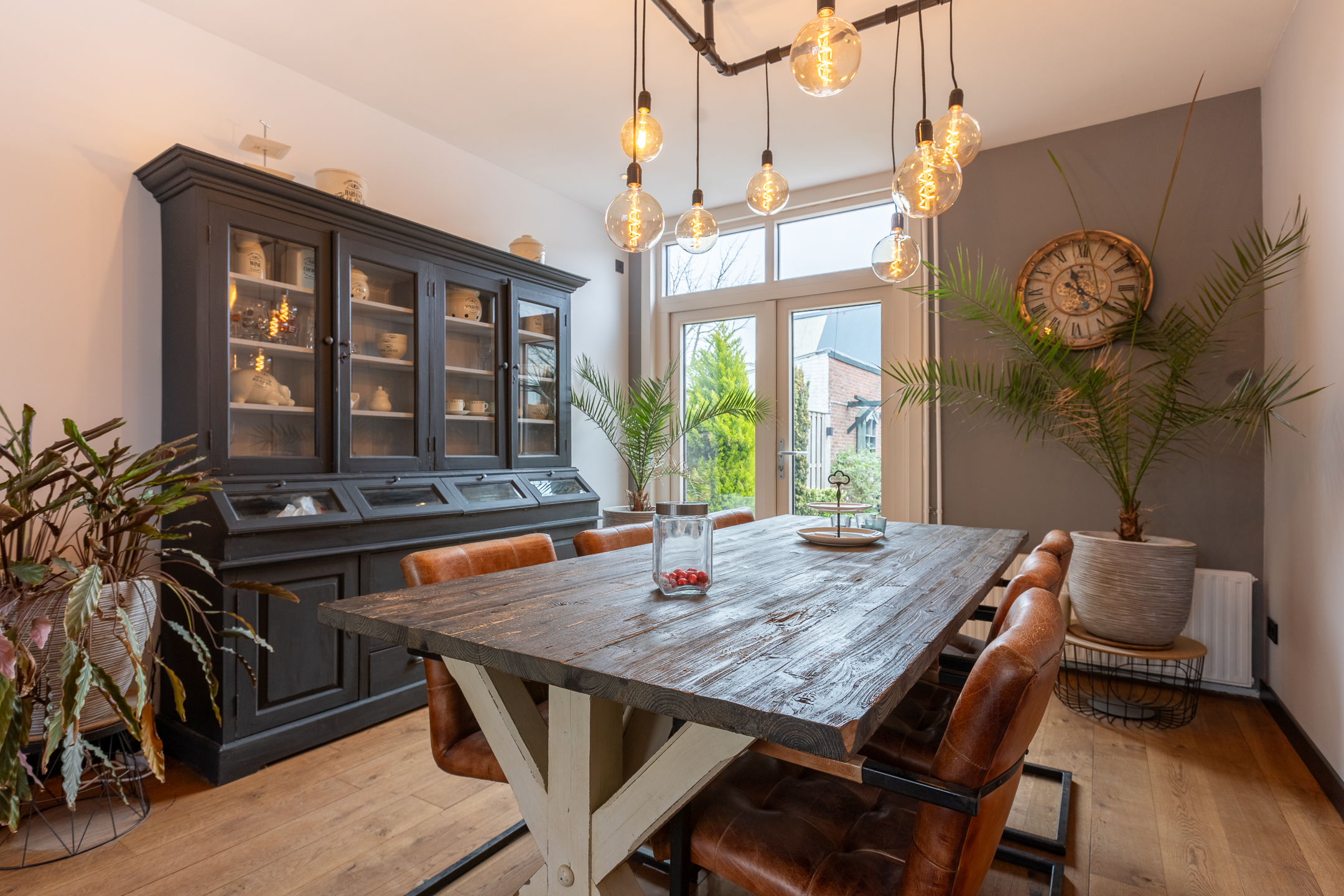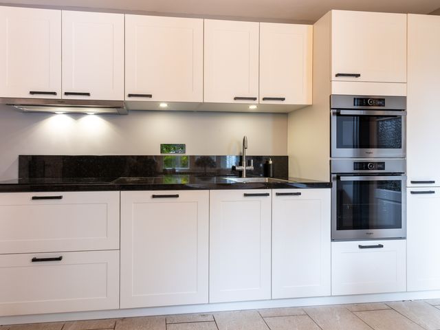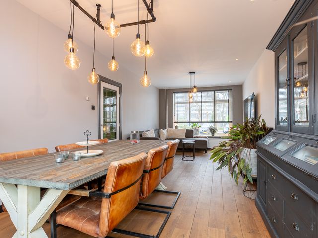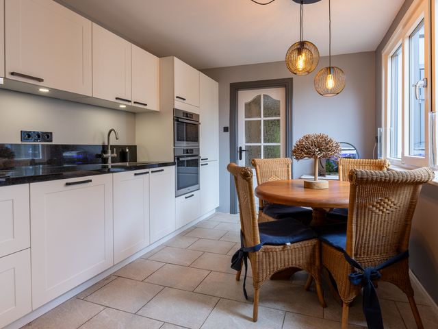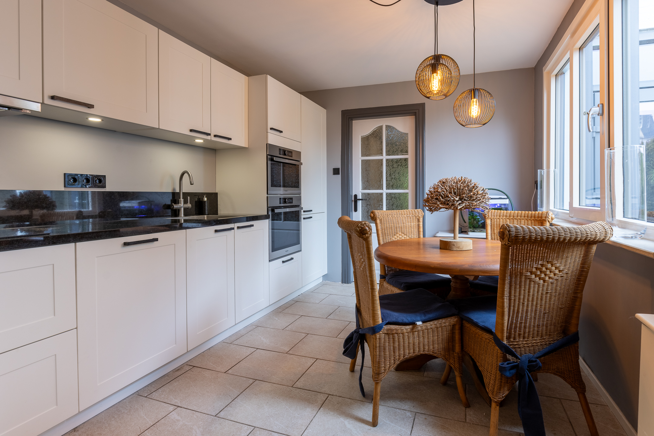 De moderne woonkeuken is in 2024 vernieuwd en uitgevoerd met een inductiekookplaat, spoelbak met kokend water functie, vaatwasser, koelkast, oven en een combimagnetron. Vanuit de keuken is er toegang tot de badkamer en de bijkeuken.