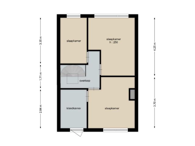 Overloop met toegang tot 3 slaapkamers, allen voorzien van een laminaatvloer en stucwerk plafonds. Eén van de slaapkamers beschikt over een directe toegang tot de 2e badkamer waarbij alle voorbereidingen al zijn getroffen voor een douche, wastafel en een toilet.