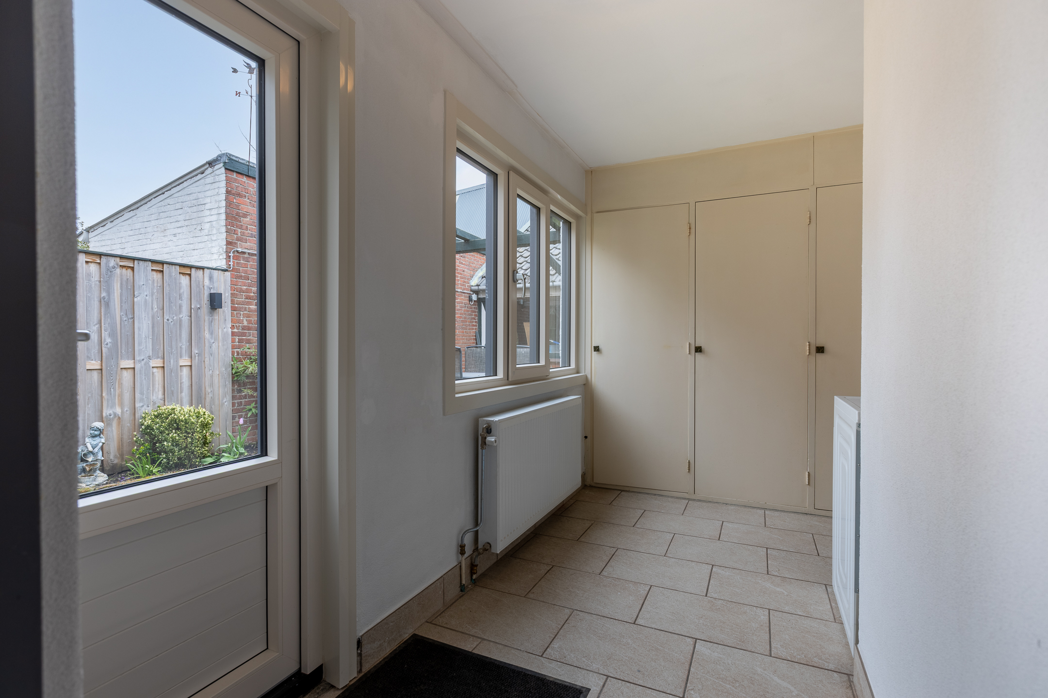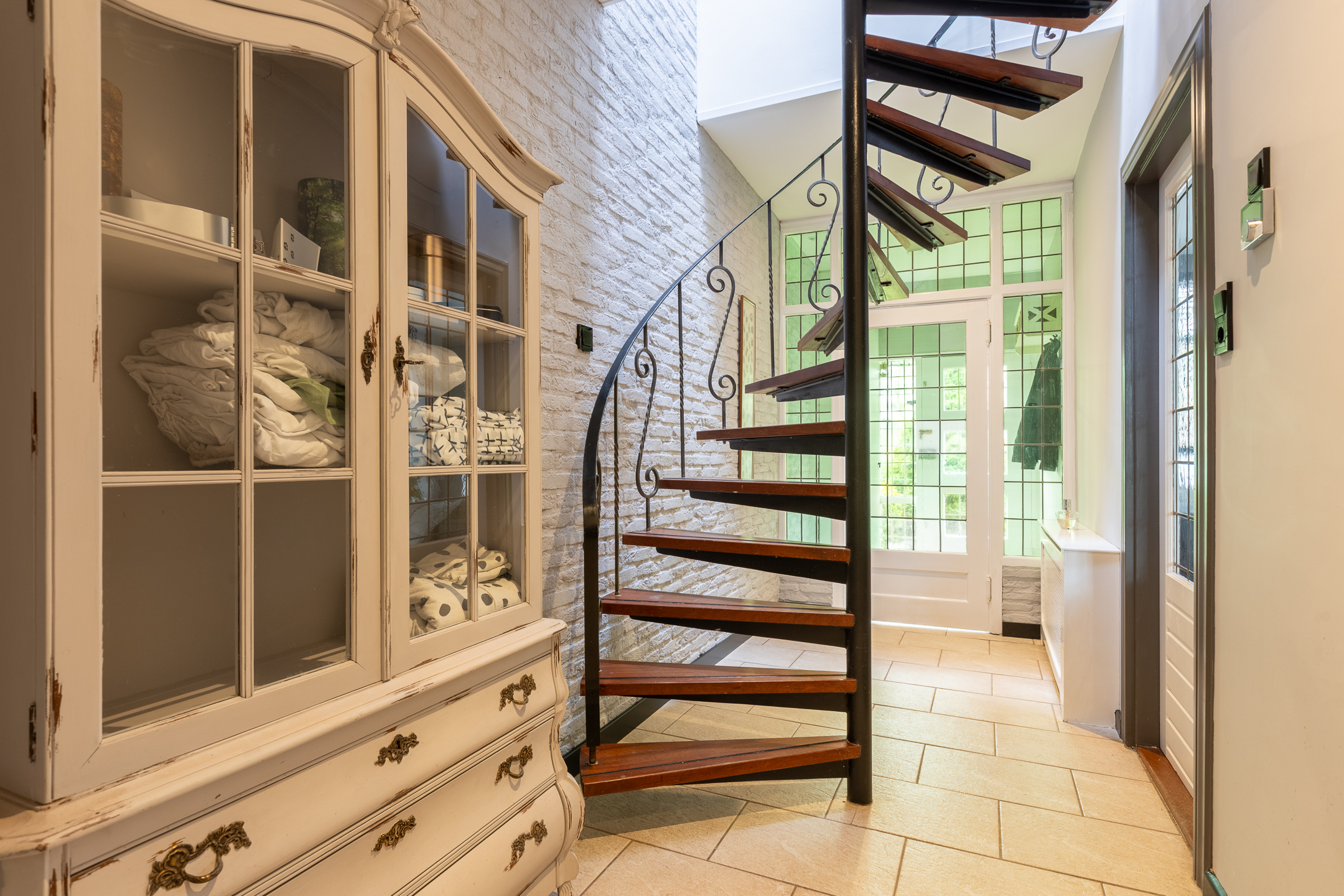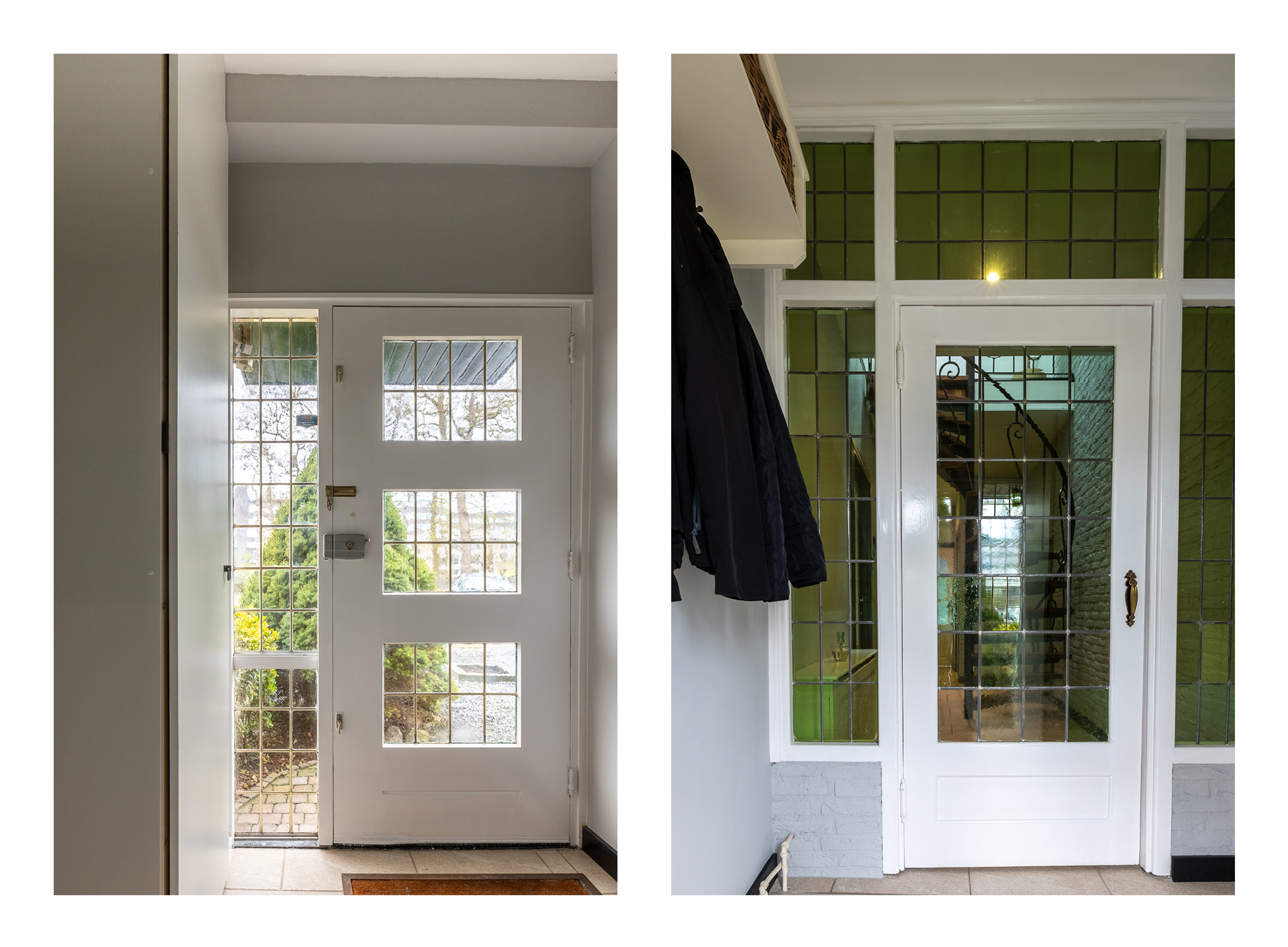 Entree met meterkast en toegang tot de hal. De hal is voorzien van een tegelvloer, trapopgang en een moderne toiletruimte. Vanuit de hal zijn zowel de woonkamer als de keuken bereikbaar.