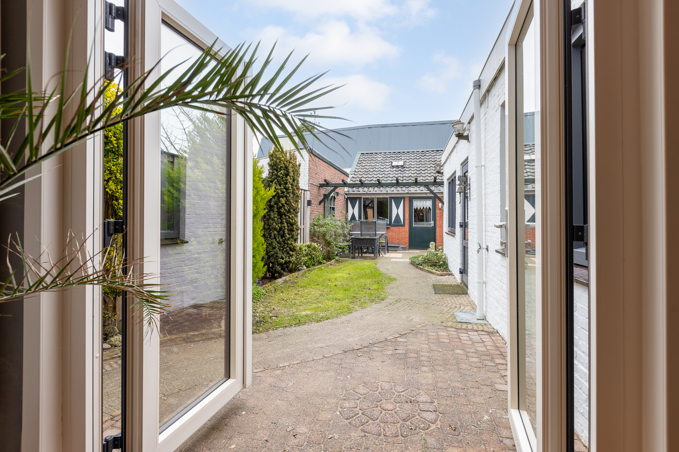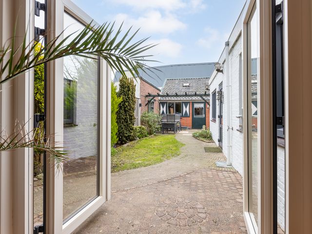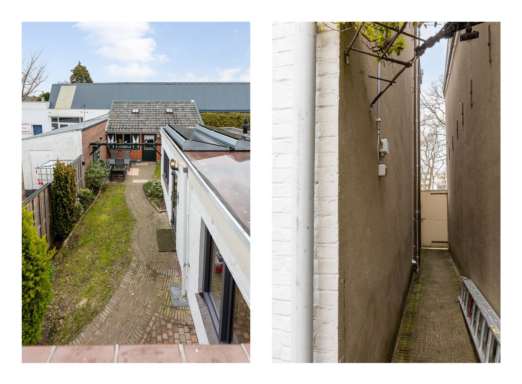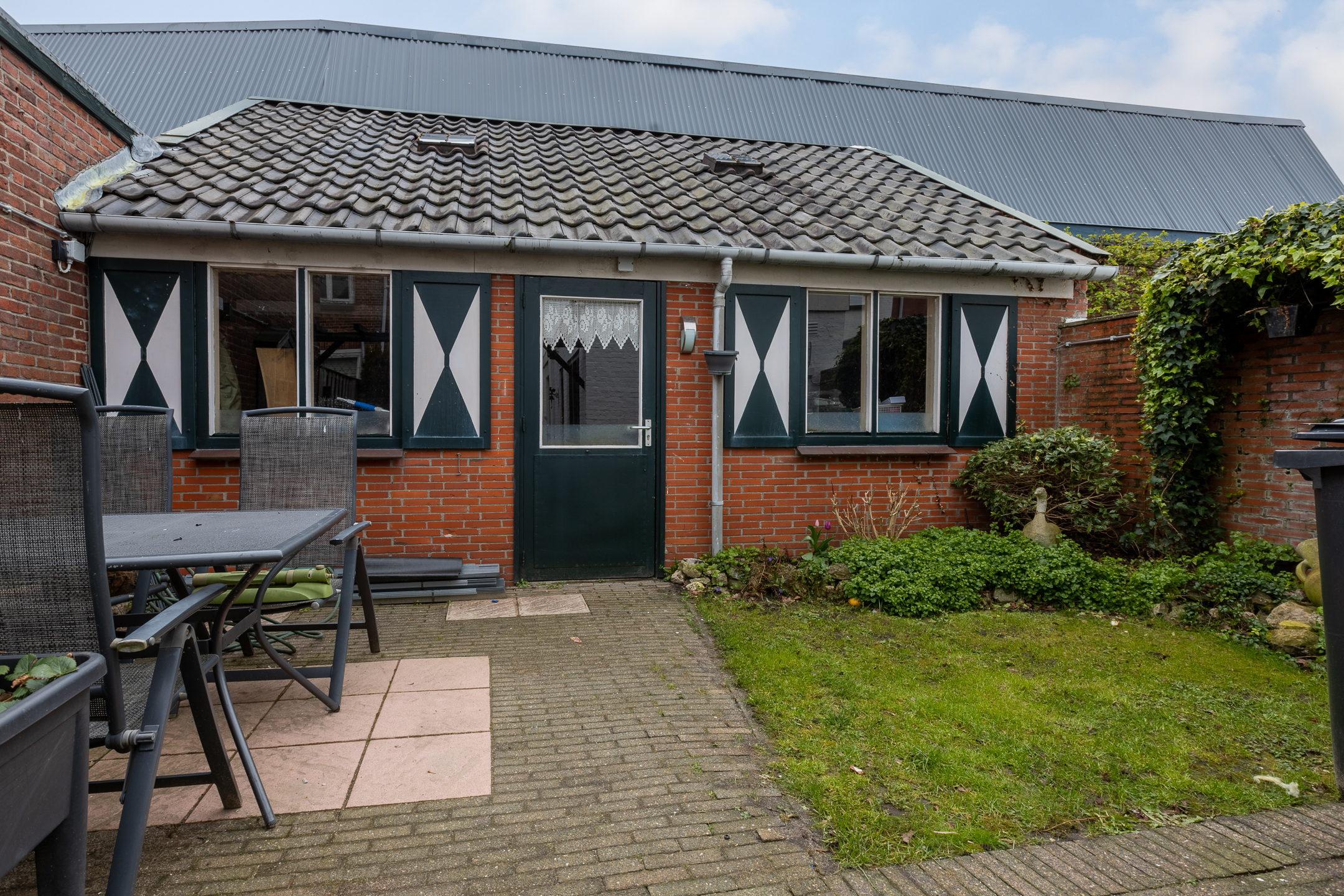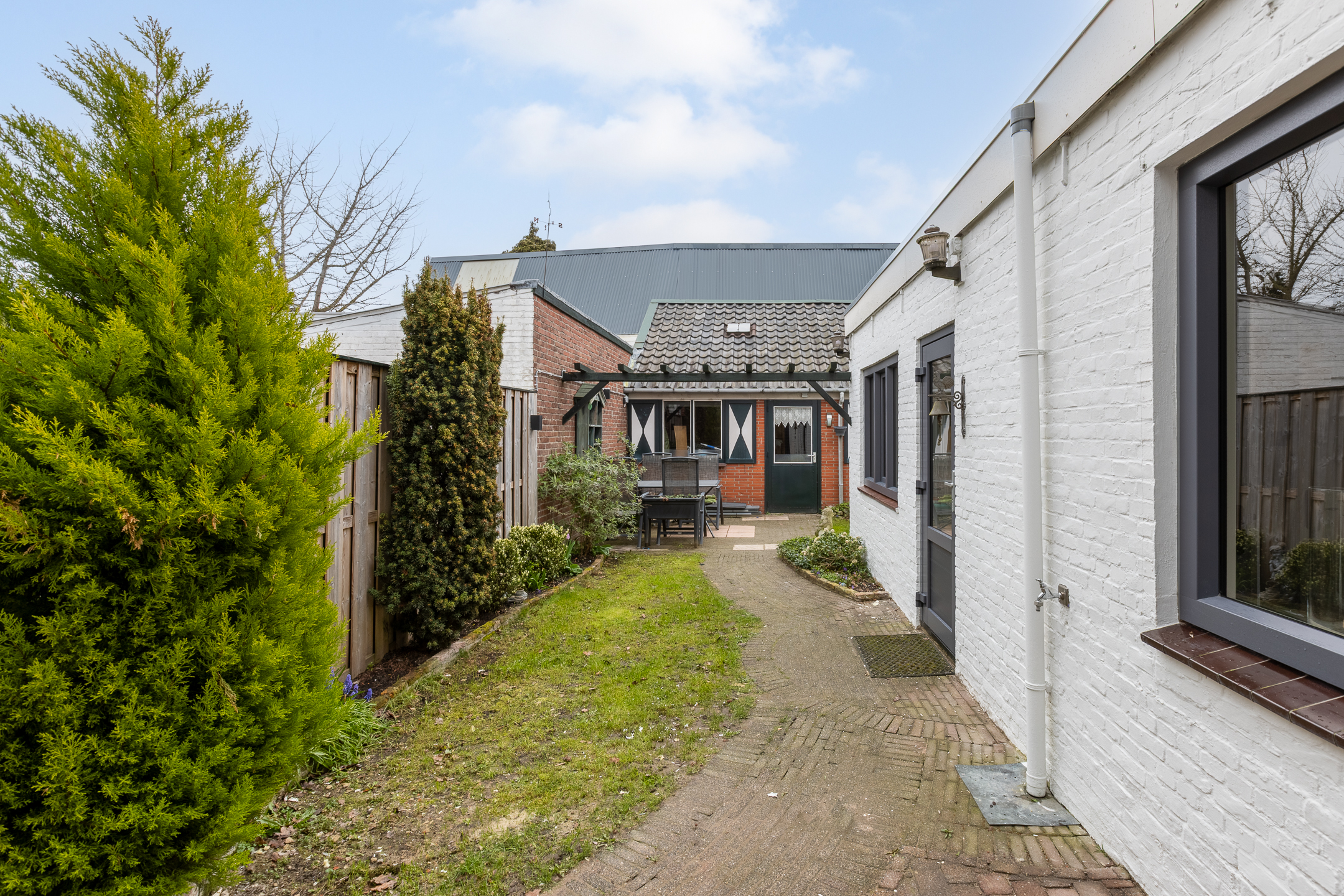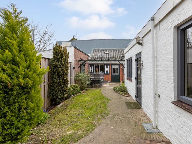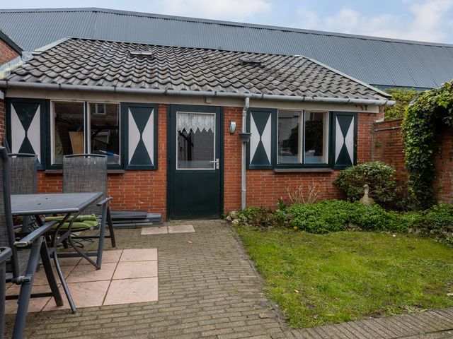 Achter op het perceel staat een vrijstaande stenen berging van circa 18 m², uitgerust met elektra en een extra berg vide, waardoor het een zeer ruime berging is.