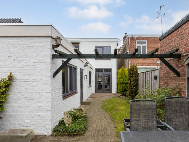 De tuin is gelegen aan de oostzijde van de woning en biedt een prettige uitstraling. Het terras is uitgevoerd in sierbestrating en wordt afgewisseld met borders en een gazon. De tuin is bereikbaar via een eigen achterom.