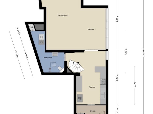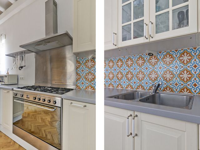 Via de entree met meterkast en tegelvloer betreedt u de woning en komt u in het woongedeelte. De open keuken staat in directe verbinding met de woonkamer en vormt samen een fijne, uitnodigende leefruimte. De keuken is voorzien van moderne inbouwapparatuur, waaronder een 5-pits gasfornuis, afzuigkap, oven en vaatwasmachine. In deze ruimte bevindt zich tevens de trapopgang naar de eerste verdieping.