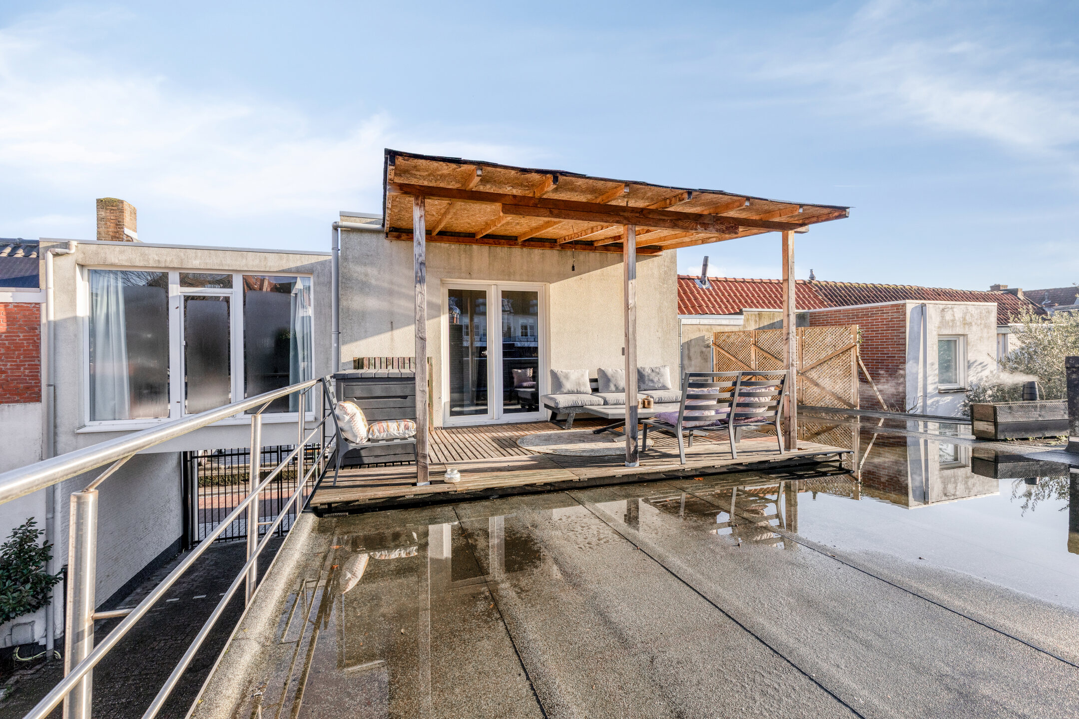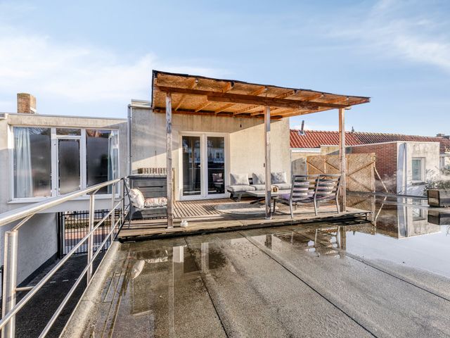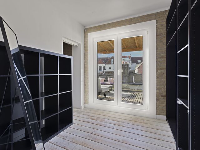 Het riante dakterras is afgewerkt met houten vlonders en gunstig gelegen op het zuidwesten. Hier kunt u volop genieten van de middag en avondzon, terwijl u uitkijkt over de stad met de Peperbus! Echt een unieke plek om tot rust te komen of gezellig te borrelen.