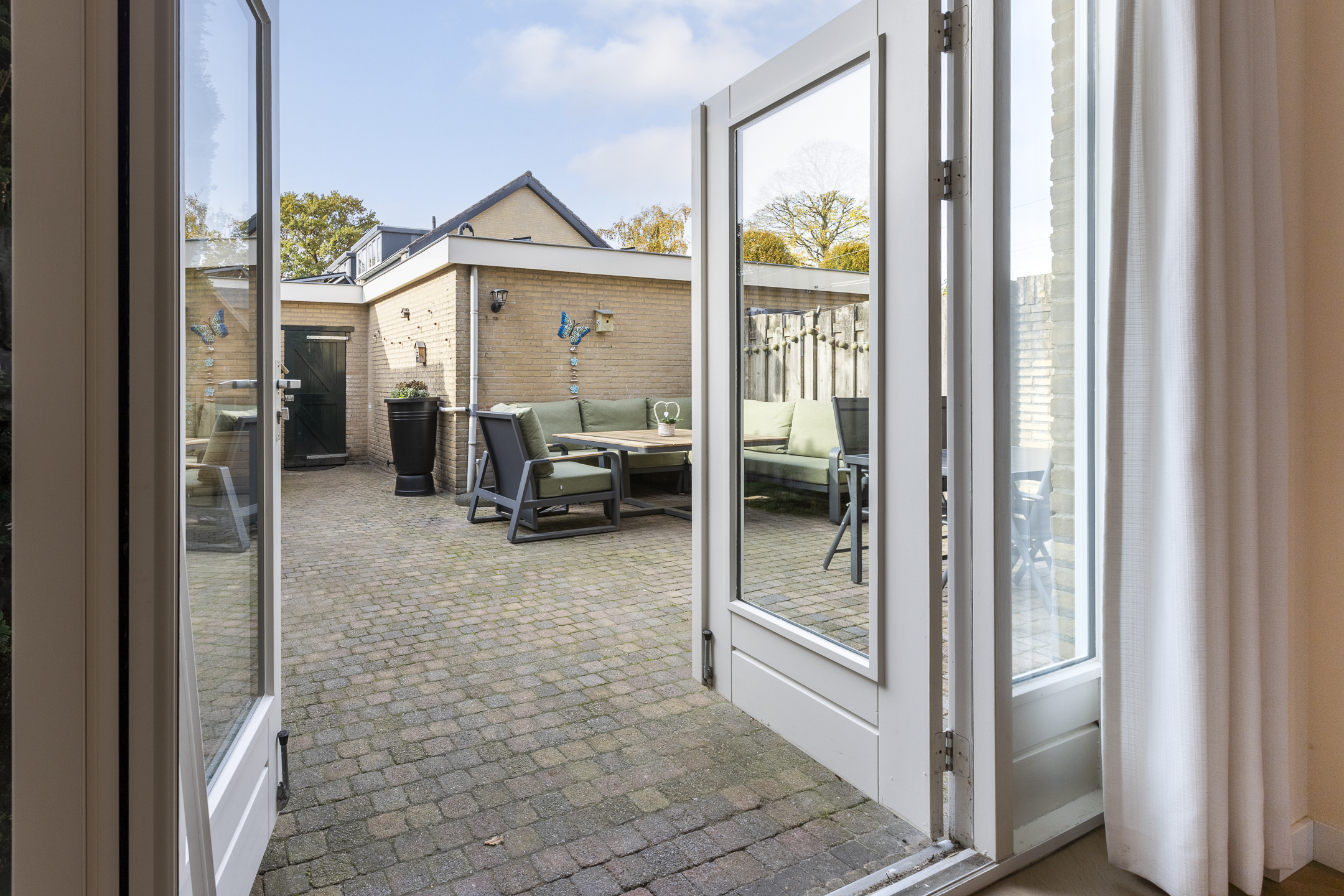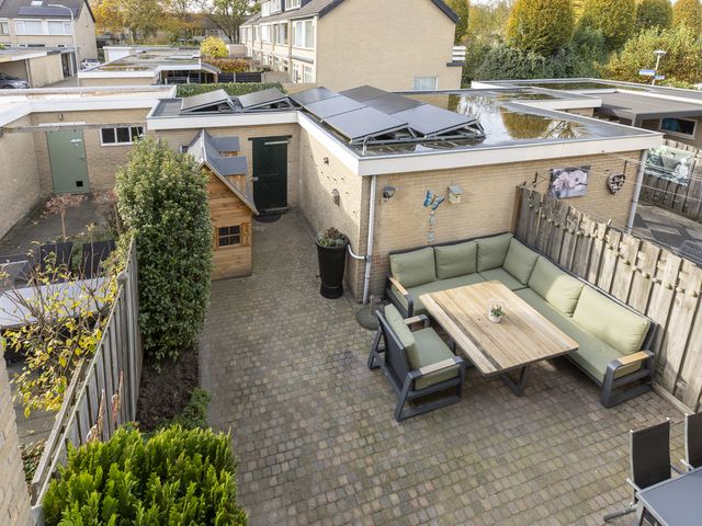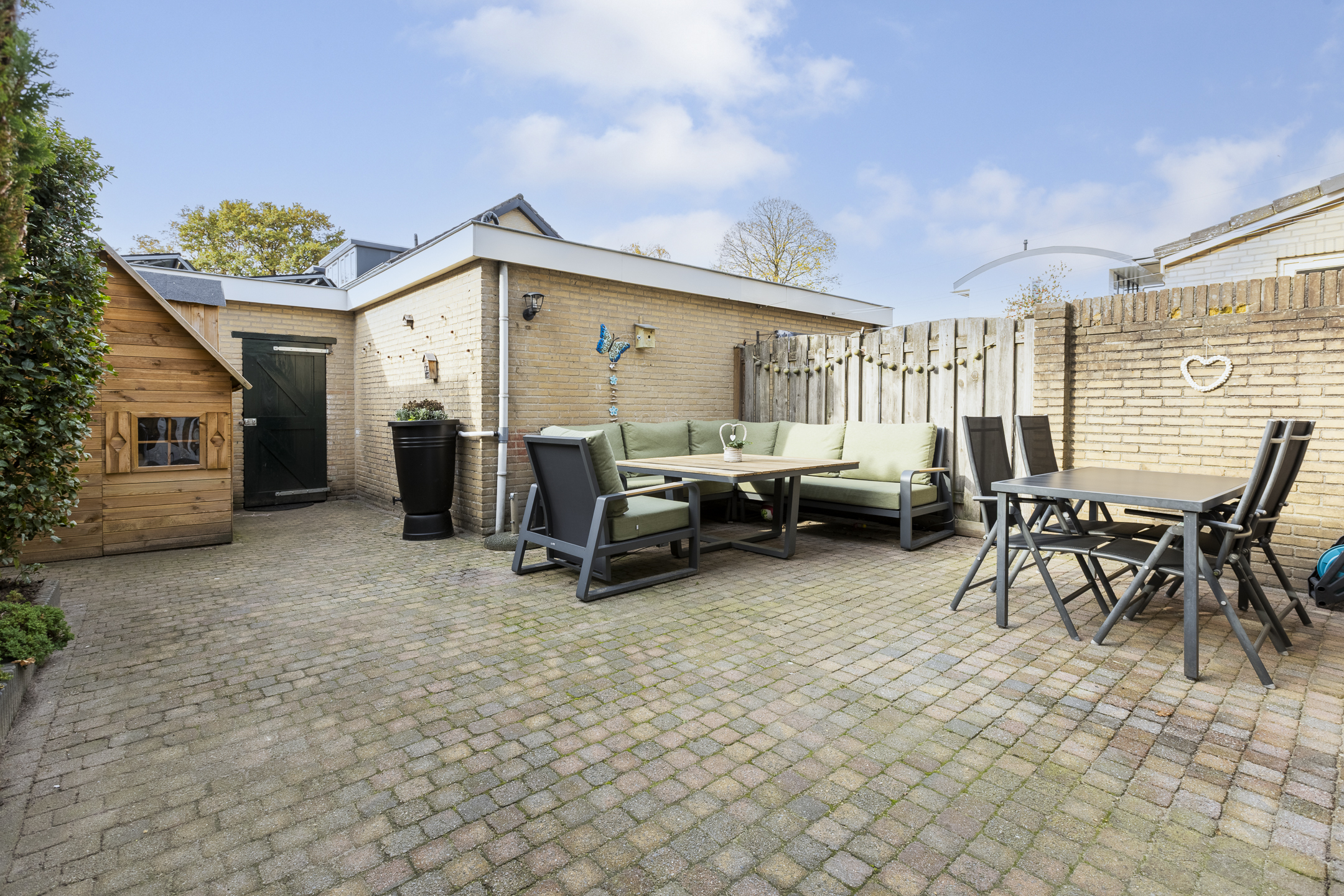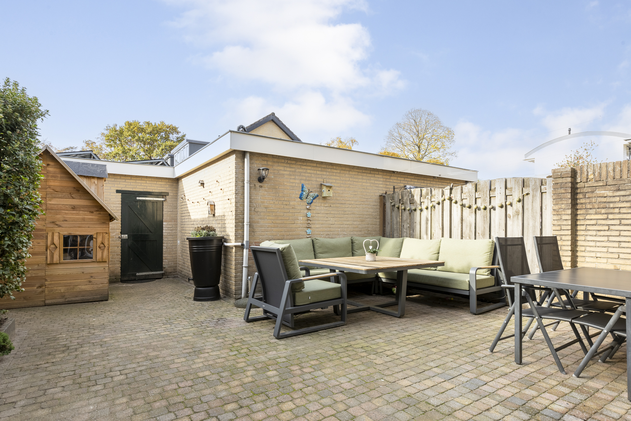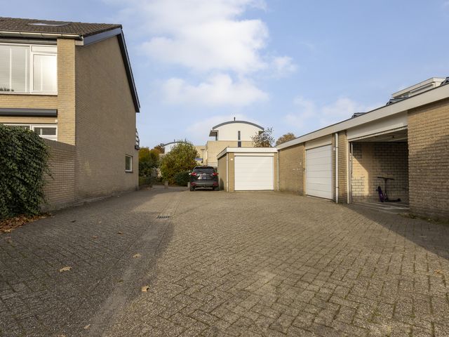 De onderhoudsvriendelijke tuin is volledig betegeld en biedt volop ruimte om te ontspannen of een loungehoek te creëren. Dankzij de ligging is er altijd een zonnig plekje te vinden. De garage is bereikbaar via een kanteldeur en beschikt over een aparte loopdeur, berging en stortbak, waardoor het een praktische ruimte is voor zowel de auto als extra opslag.