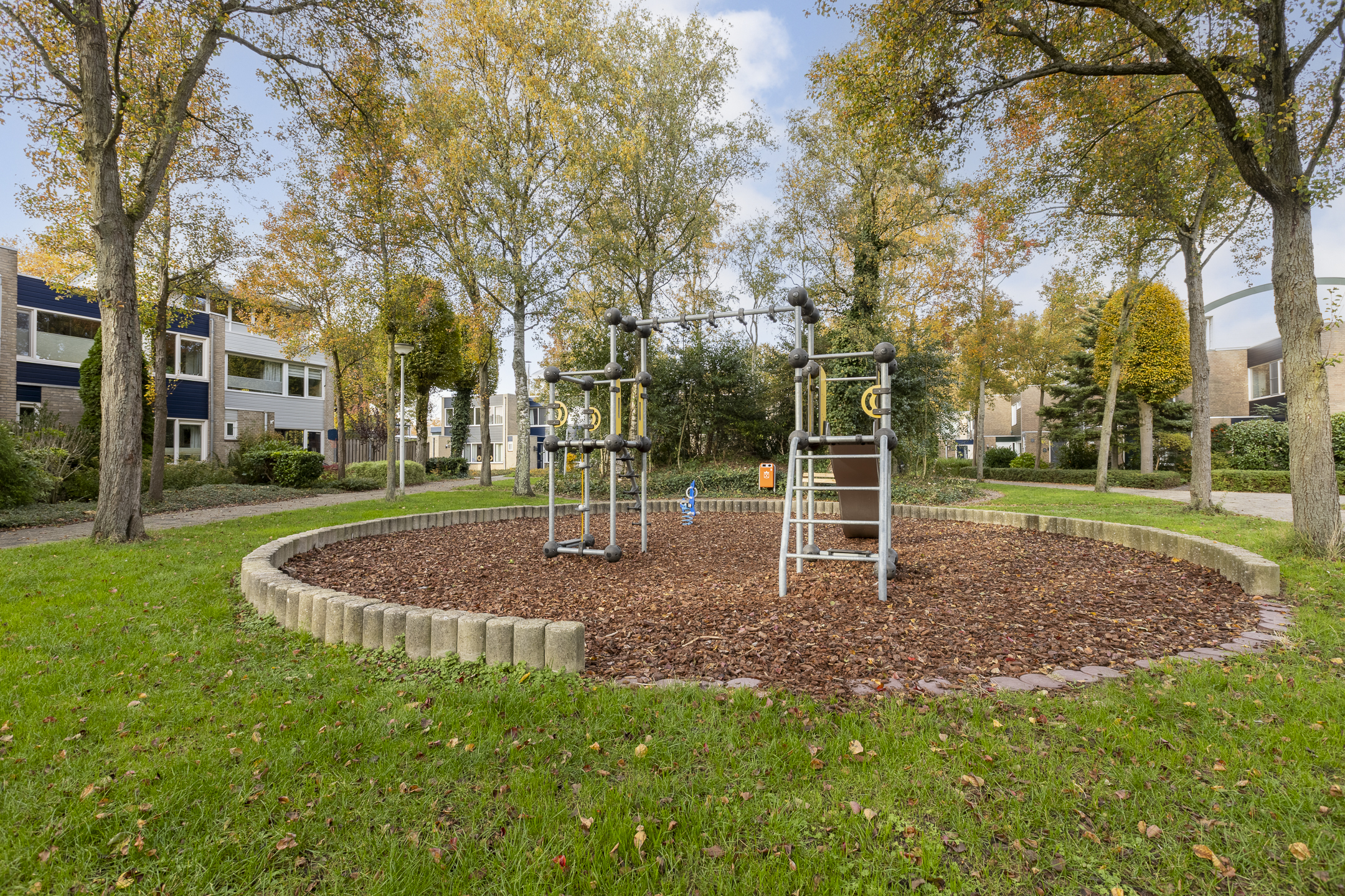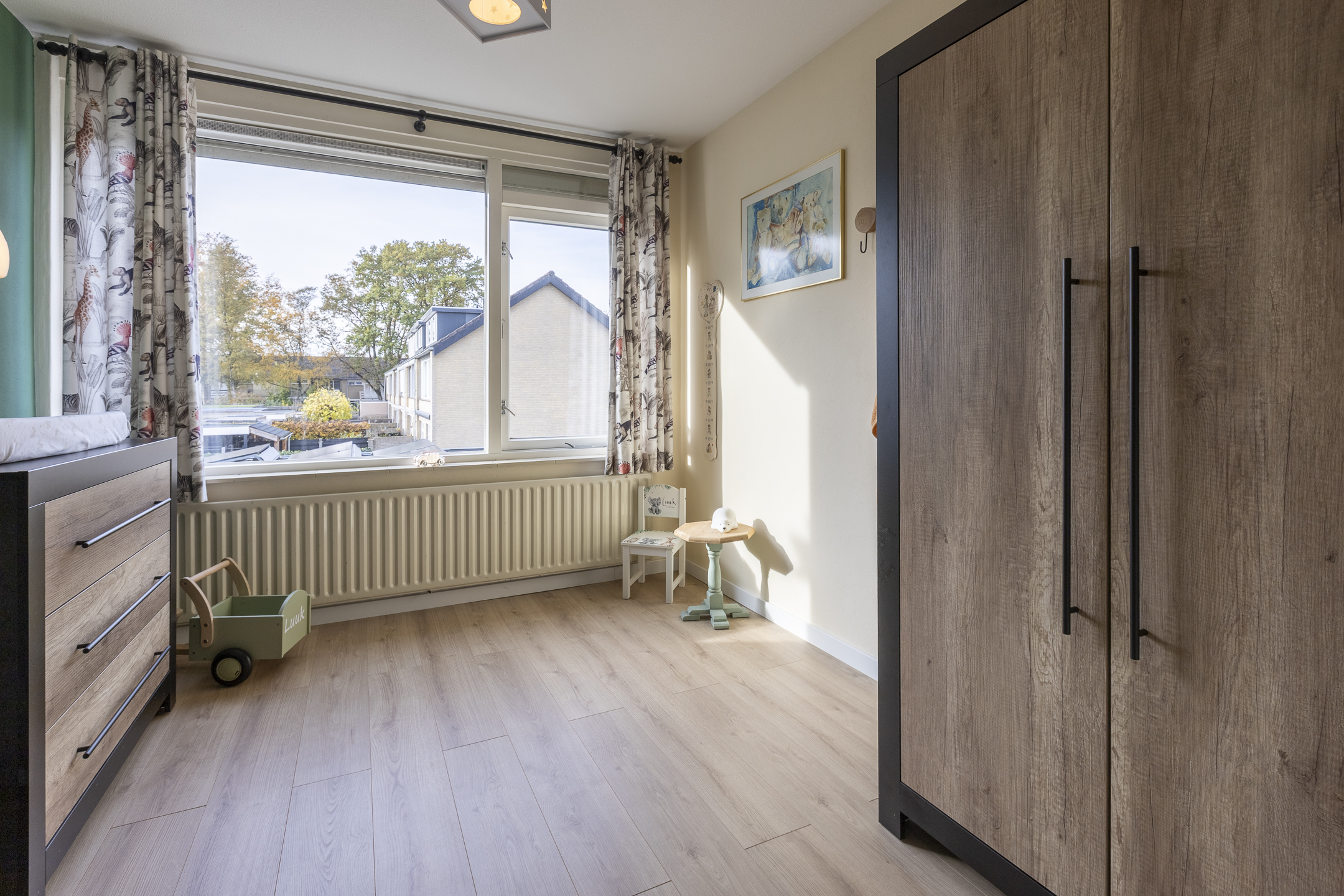 De woning beschikt over een tuingerichte woonkamer met openslaande deuren, een moderne open keuken en vier slaapkamers verdeeld over de eerste en tweede verdieping. De tuin is onderhoudsvriendelijk aangelegd en de garage biedt praktische bergruimte. Dankzij de recente renovaties, waaronder een nieuwe keuken, vloerverwarming en modern isolatieglas, is de woning instapklaar.