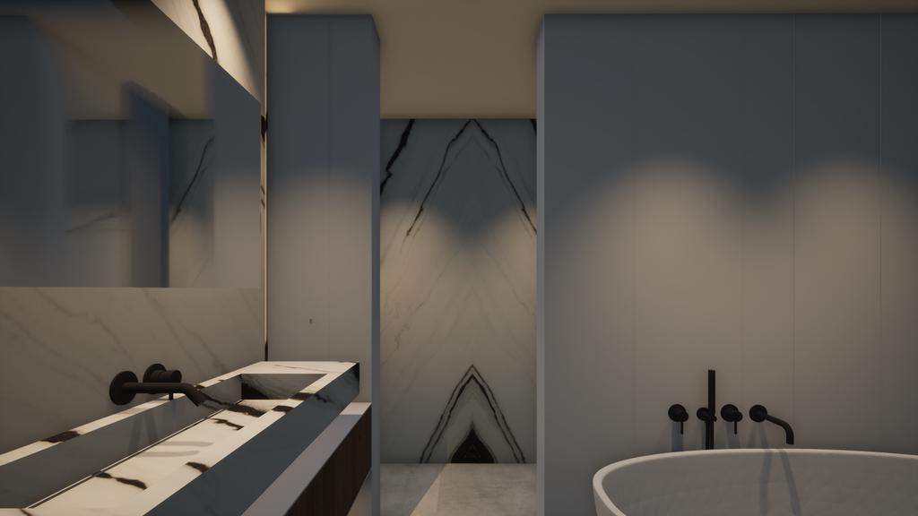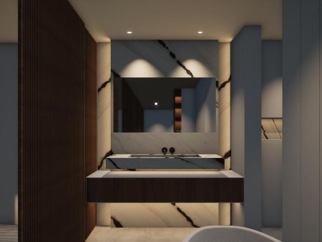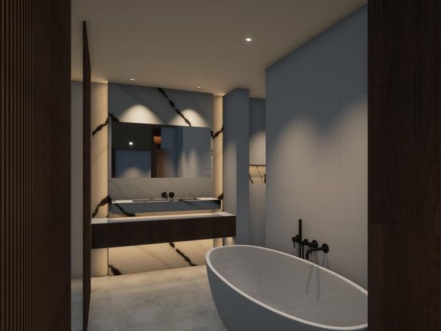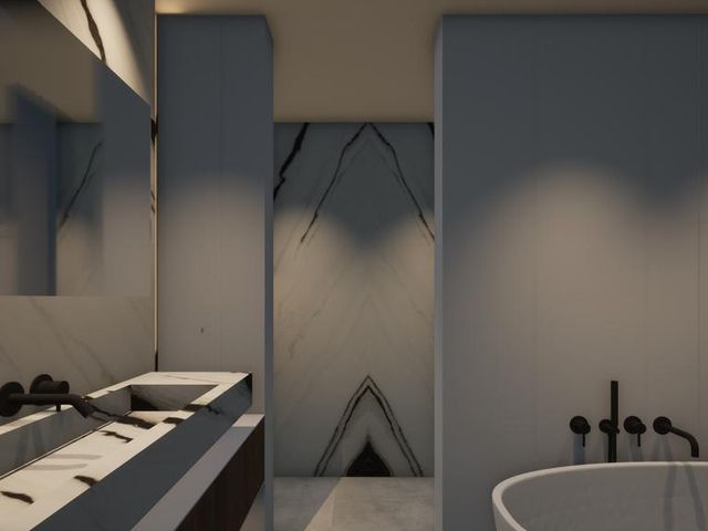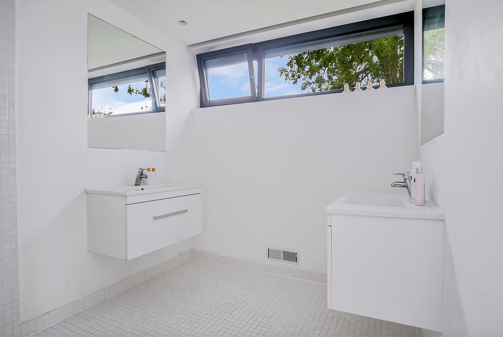 - De badkamer met inloopdouche en dubbele wastafel.