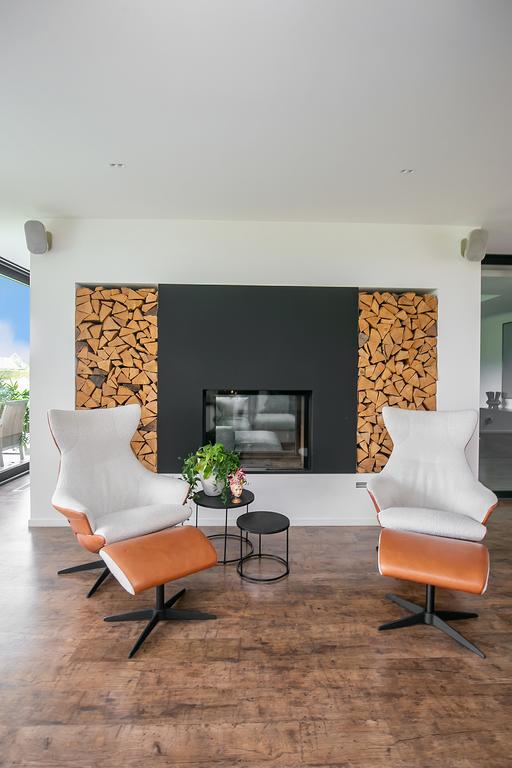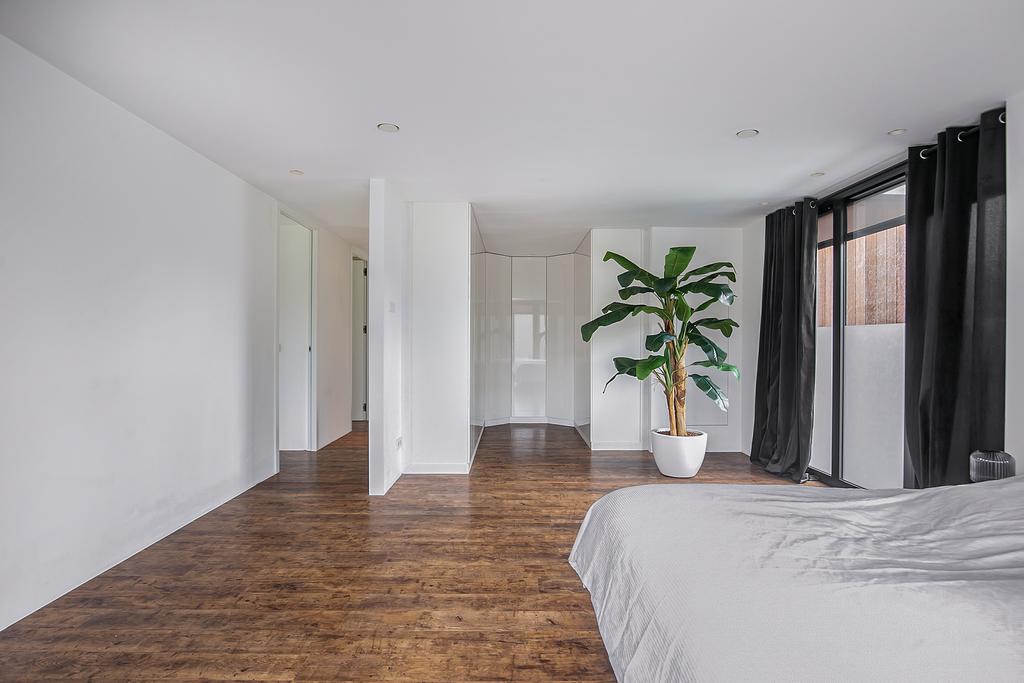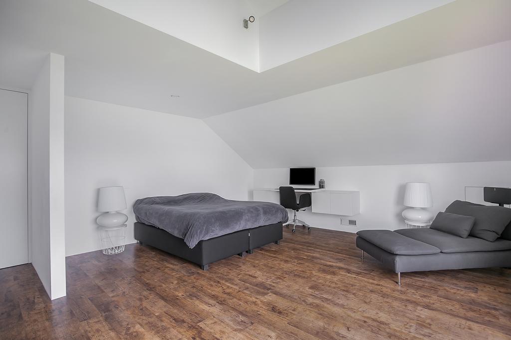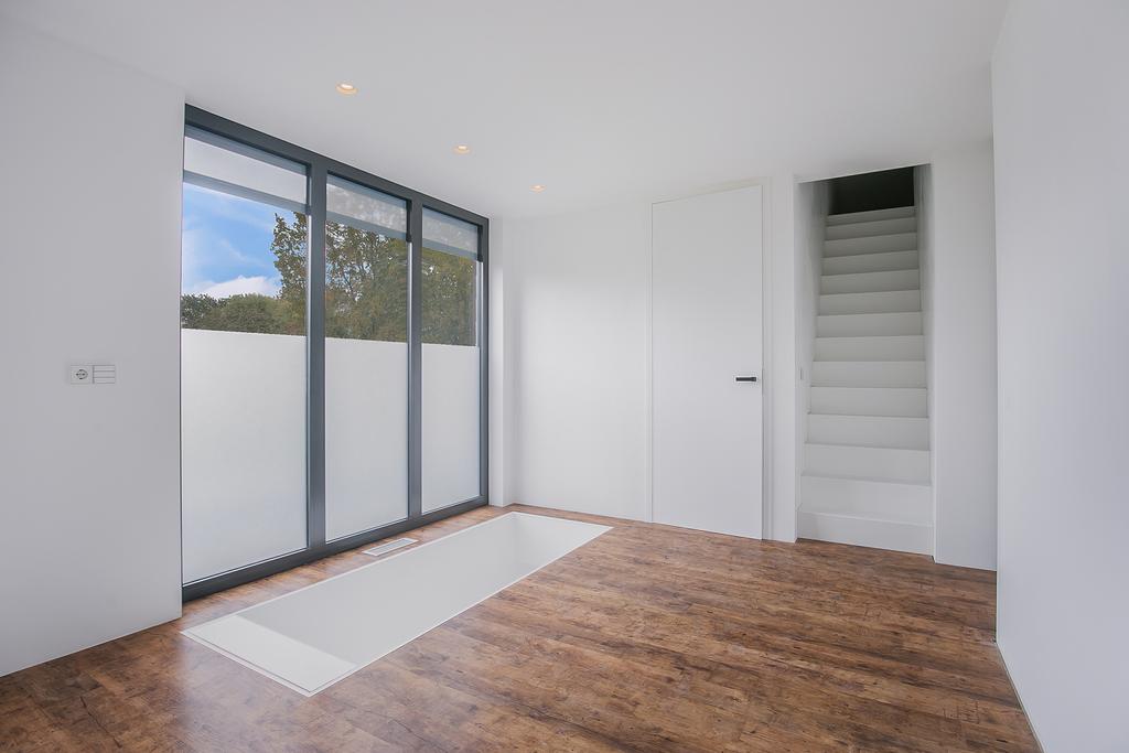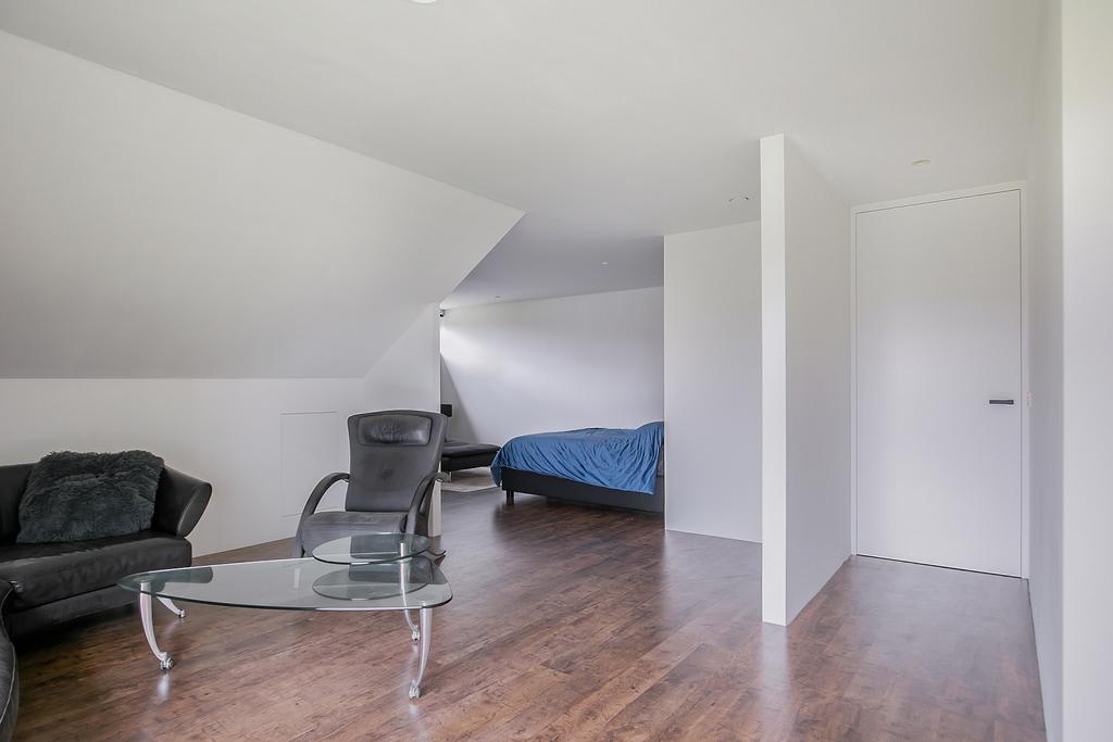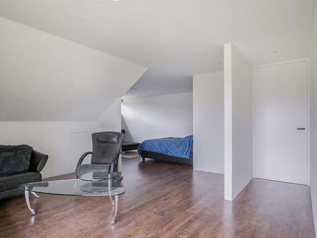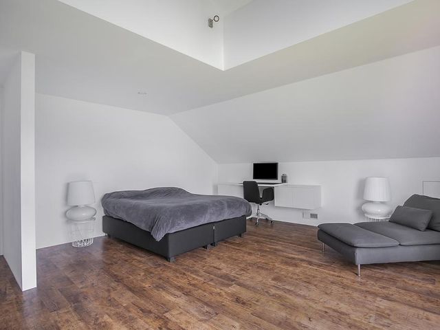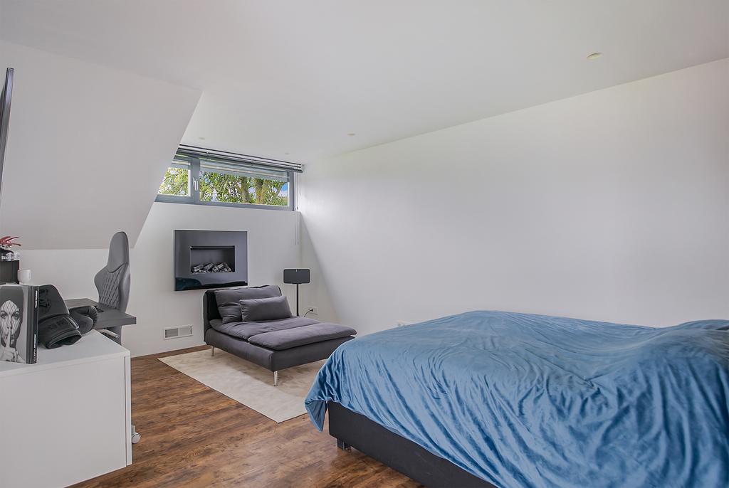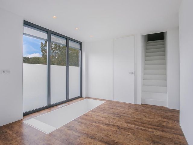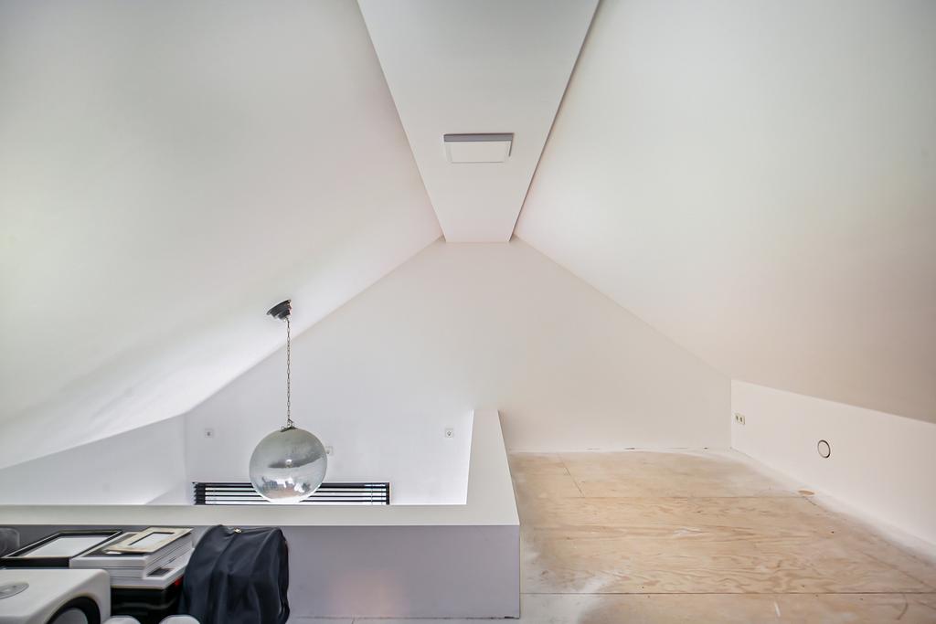 Middels een strak vormgegeven trap bereiken we de 1e verdieping. Hier bevindt zich: