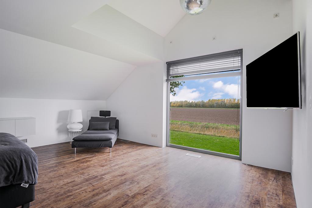 - 3 riante slaapkamers met vaste kasten, waarvan 2 gelegen aan de achterzijde en dus wederom een prachtig uitzicht over de landerijen.