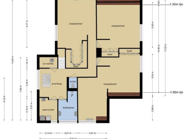 Middels vaste trap te bereiken zolderruimte met volop bergruimte.