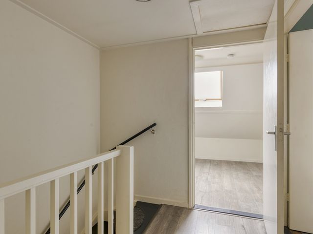 De overloop biedt toegang tot drie slaapkamers, de badkamer en de trapopgang naar de tweede verdieping.