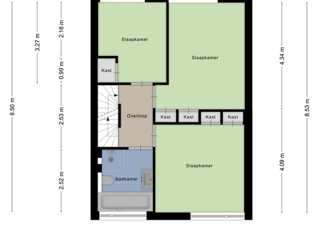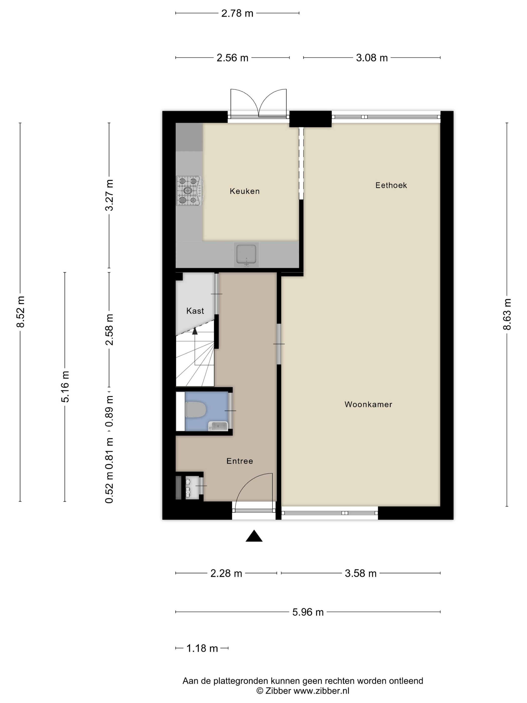 Indelingstekeningen en maatvoeringen zijn slechts indicatief, kunnen afwijken van de werkelijke situatie en zijn uitsluitend bedoeld om een indruk te geven van de indeling. De Meetinstructie is gebaseerd op de NEN2580. De Meetinstructie is bedoeld om een meer eenduidige manier van meten toe te passen voor het geven van een indicatie van de gebruiksoppervlakte. De Meetinstructie sluit verschillen in meetuitkomsten niet volledig uit, door bijvoorbeeld interpretatieverschillen,