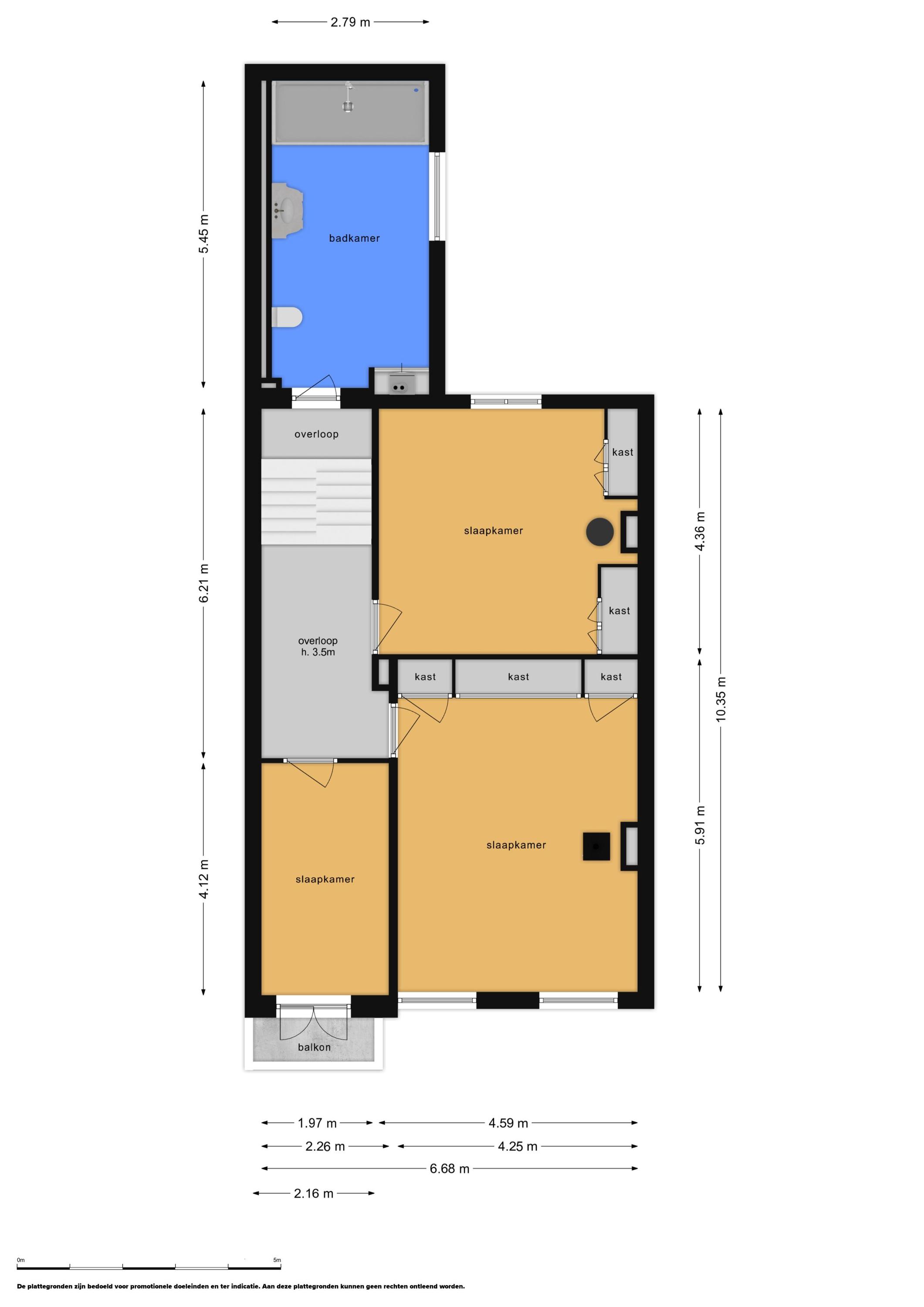 Tussenverdieping met badkamer en eerste verdieping met drie (slaap)kamers