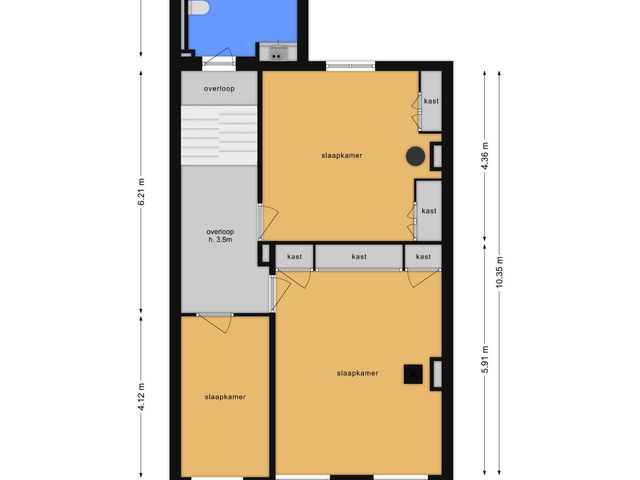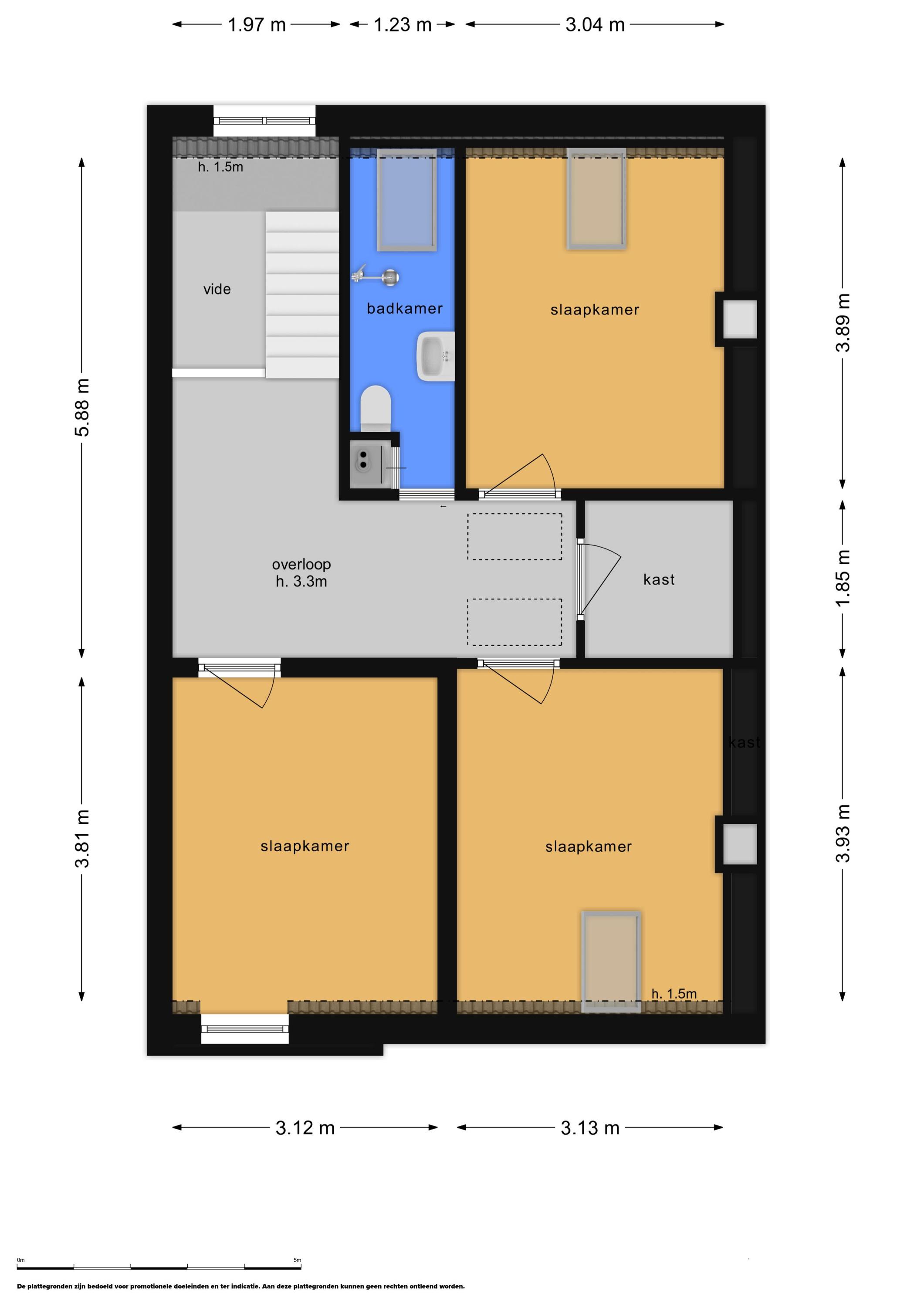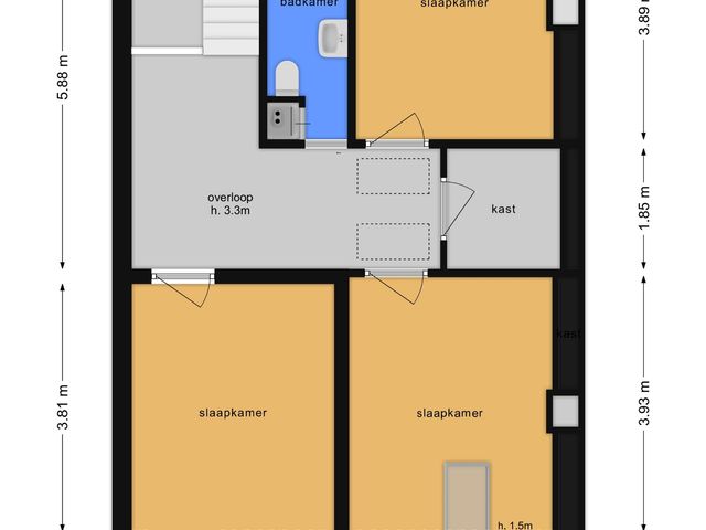 Tweede verdieping met drie slaapkamers en tweede badkamer