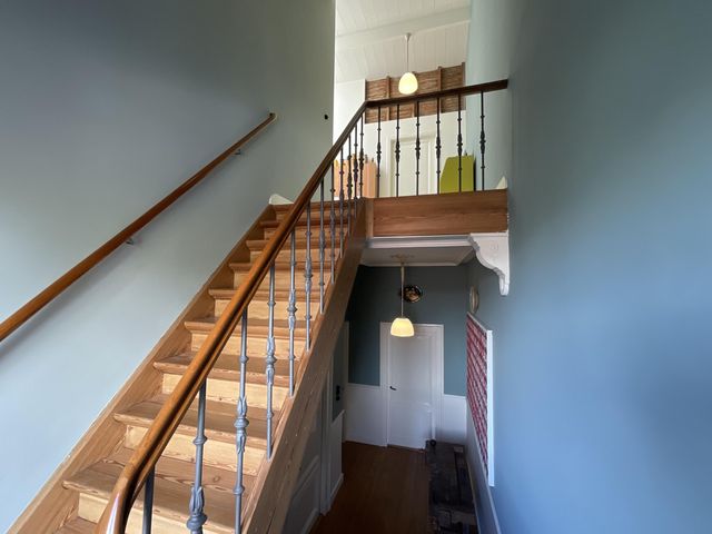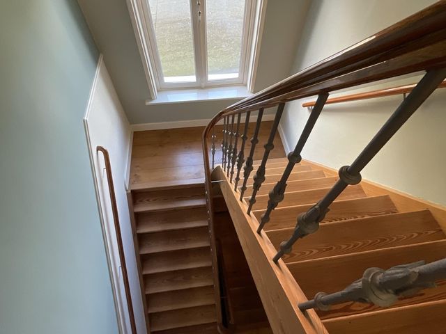 - De begane grond is voorzien van een visgraat parketvloer en een vloerafwerking met Noors leistenen (originele vloeren);