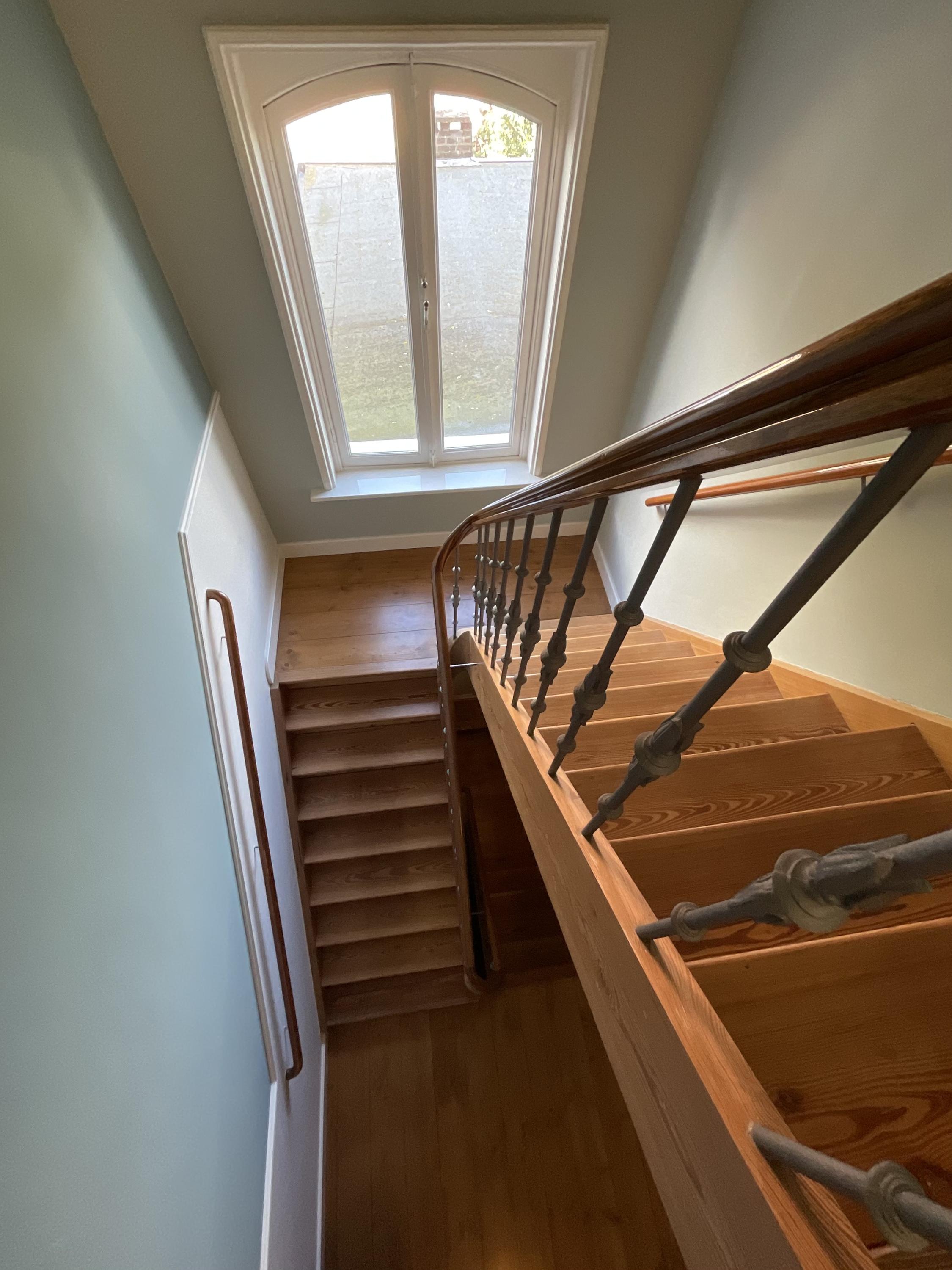 Aangekomen op de tweede verdieping komt het daglicht ons tegemoet. Twee dakramen op de overloop zorgen voor een prettige hoeveelheid extra daglicht. De plafonds op deze verdieping hebben ook hun karakteristieke hoogte.